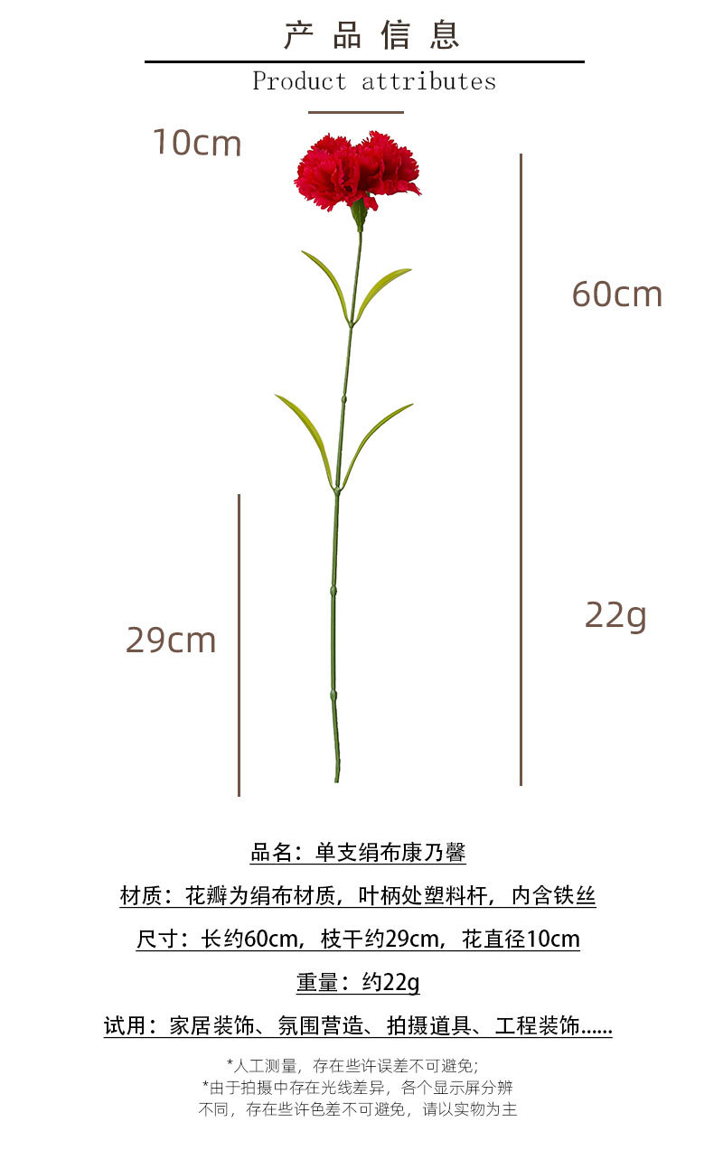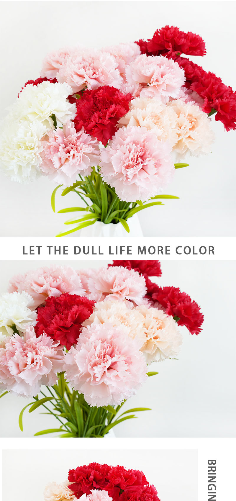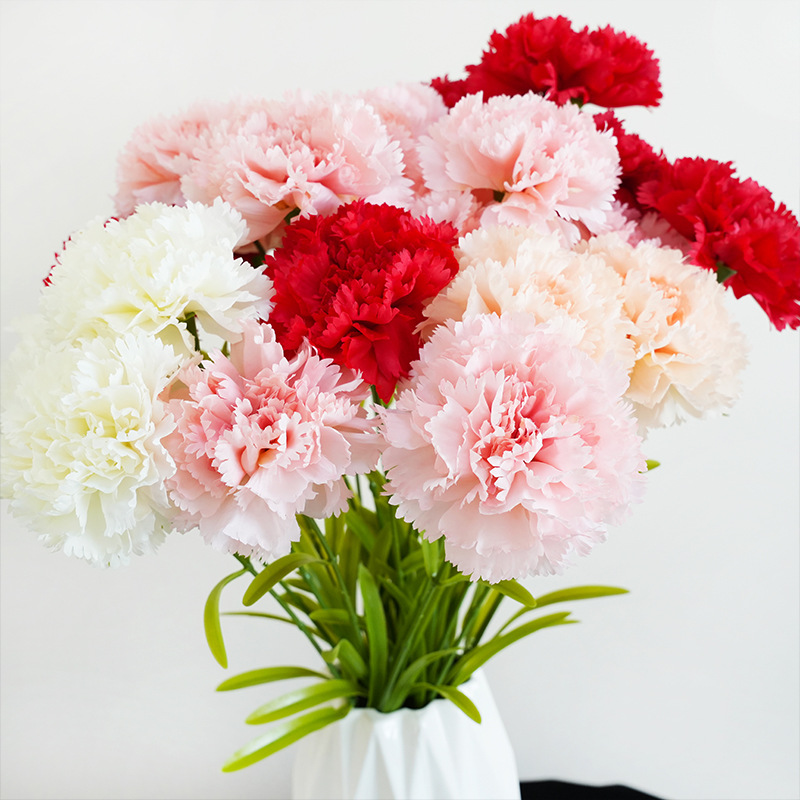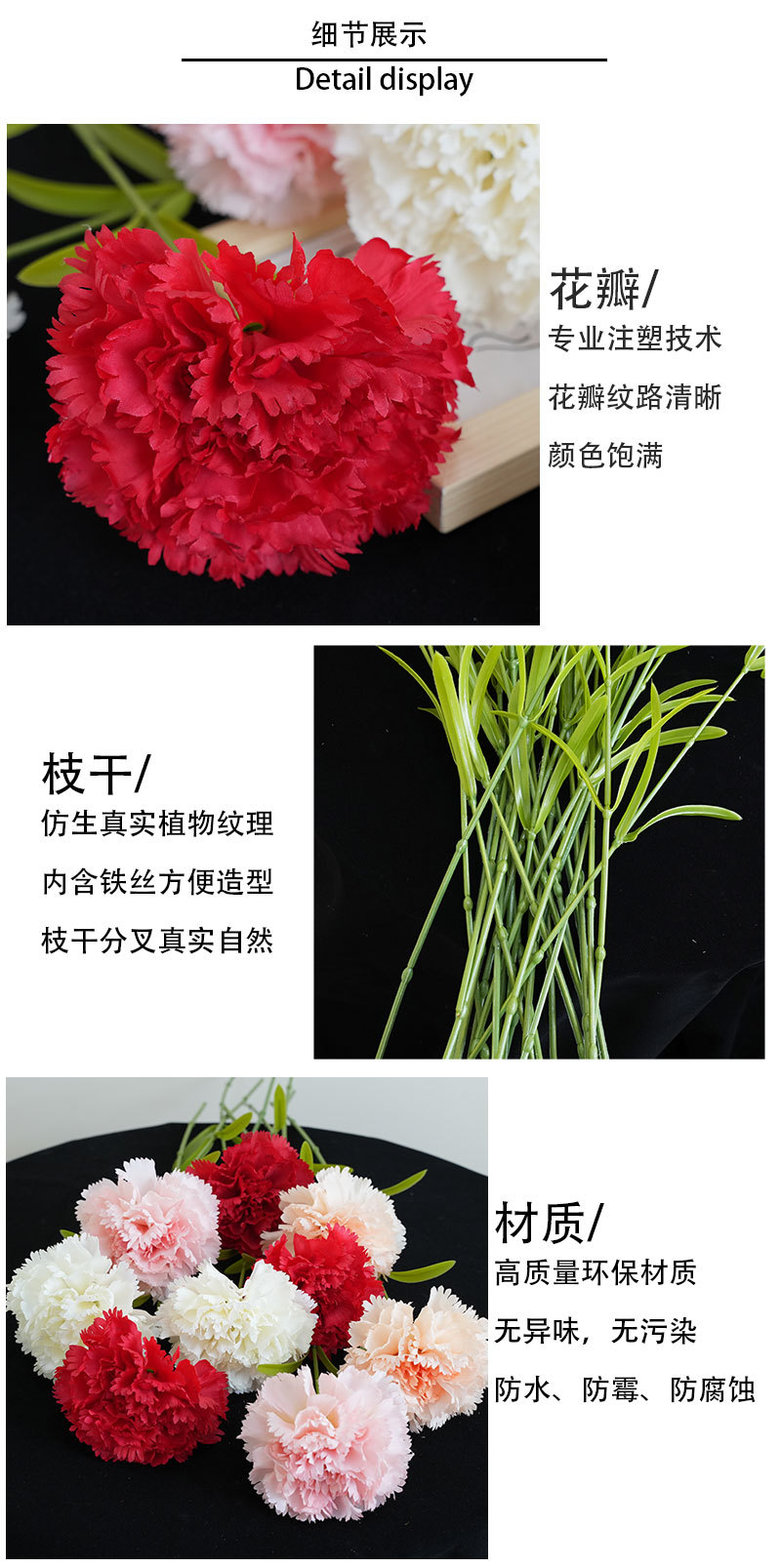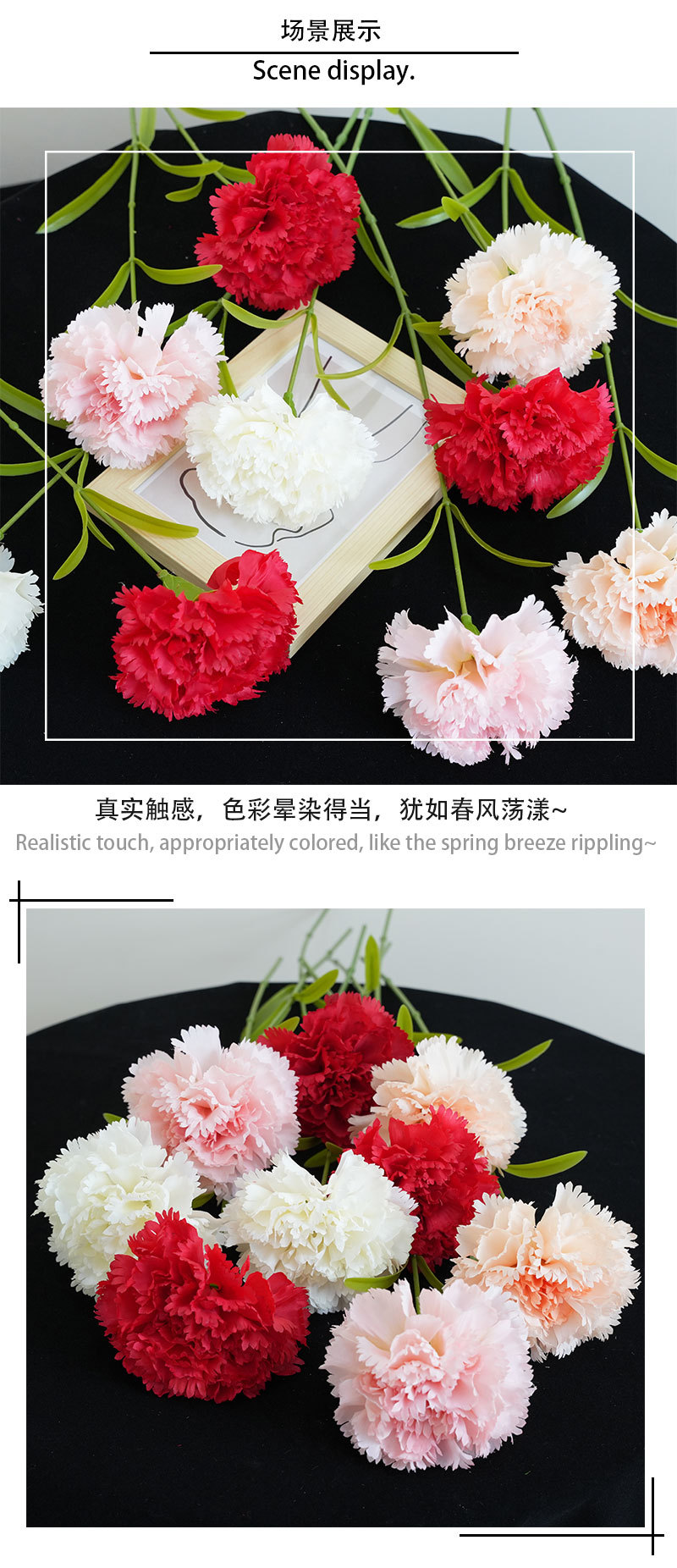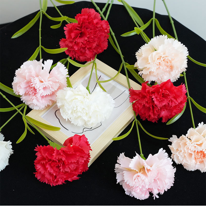 공장 직접 시뮬레이션 단일 카네이션 어머니의 날 선물 시뮬레이션 꽃 고급 실크 꽃 홈 장식 꽃 국경