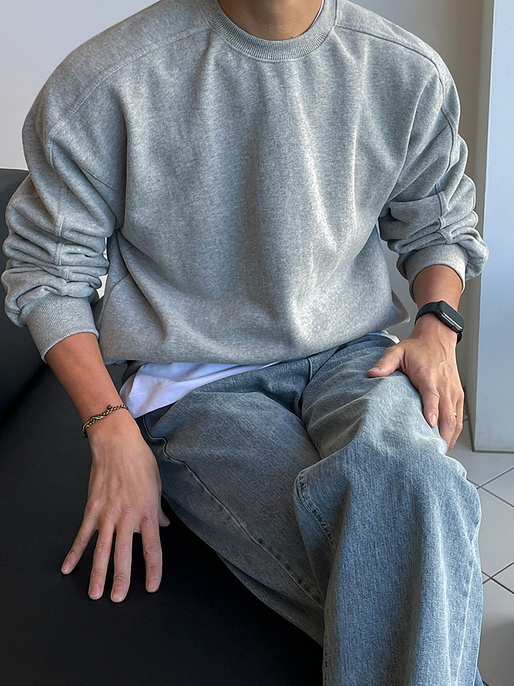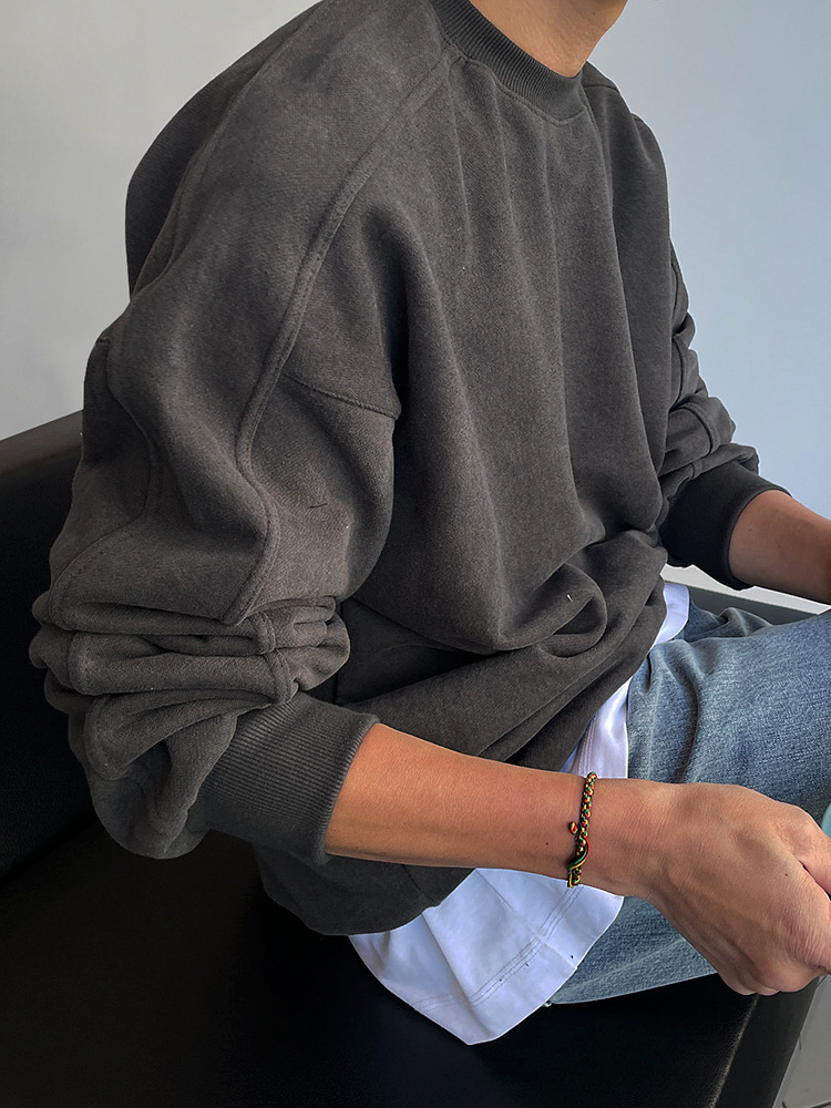 MYQ 간단한 복고풍 둥근 목 스웨터 남성 봄 느슨한 기본 한국 스타일의 트렌디 한 풀오버 코트