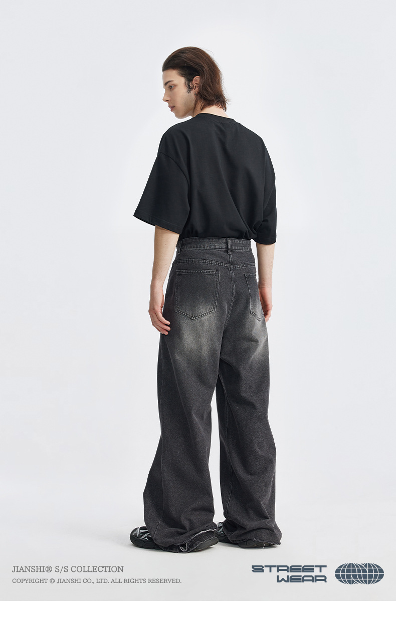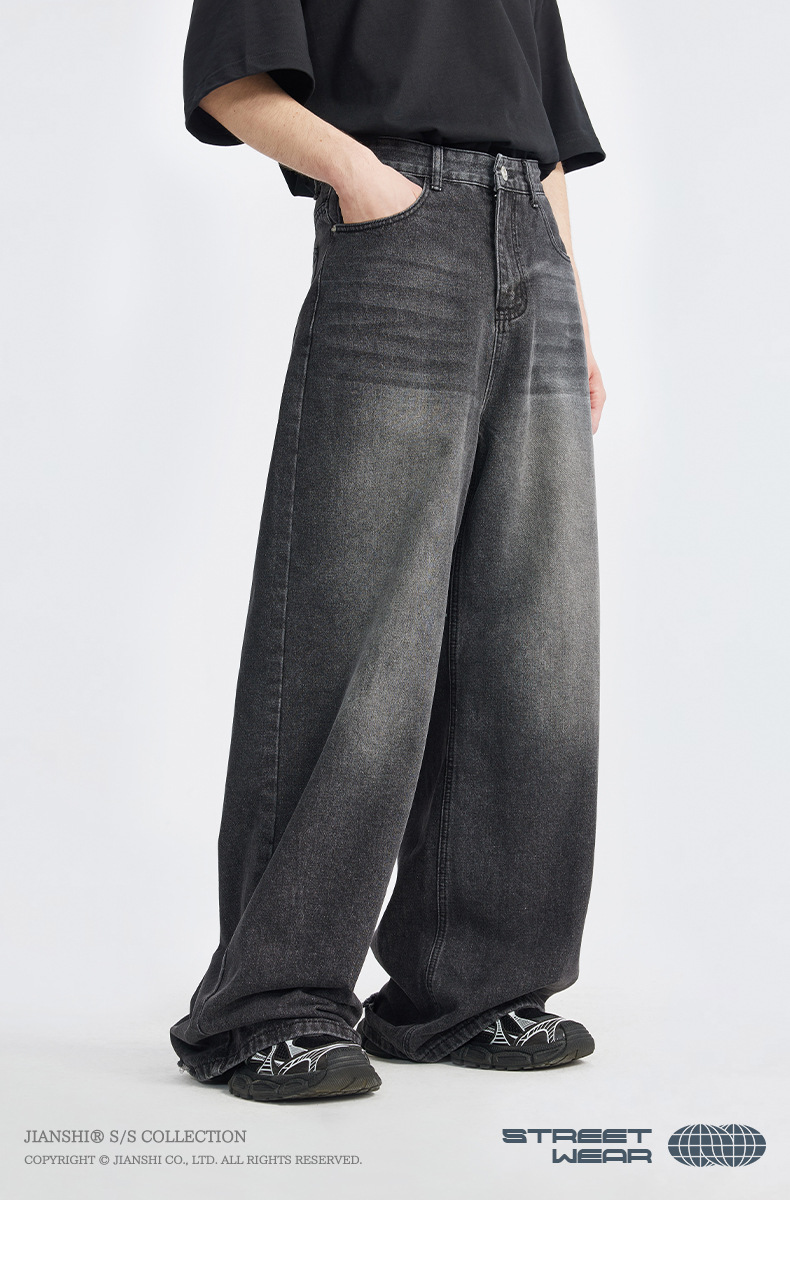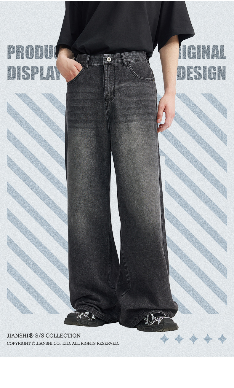통찰력 데님 | 새로운 한국 스타일 느슨한 스트레이트 청바지 남성용 미국 복고풍 트렌디 한 남자의 간단한 스트레이트 팬츠