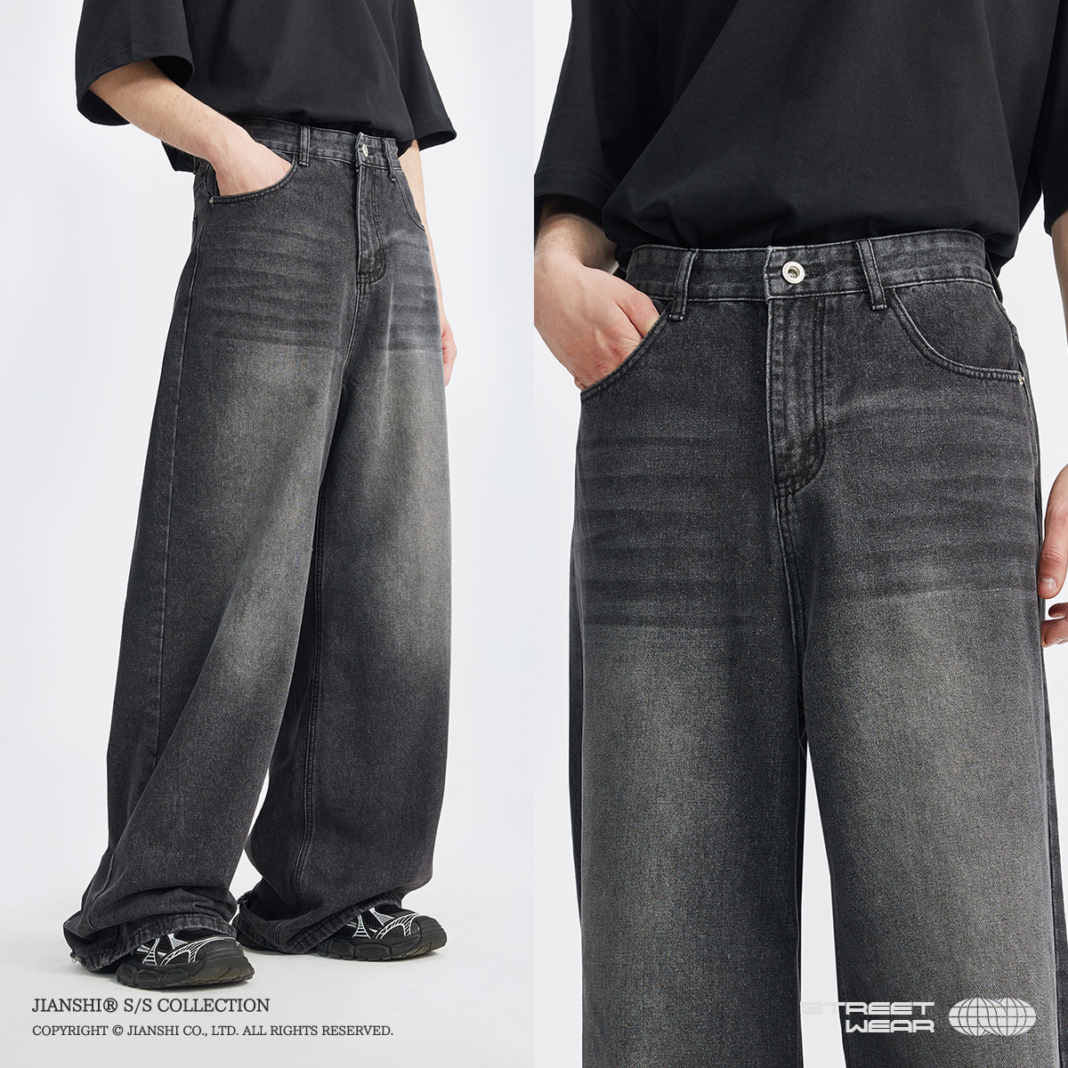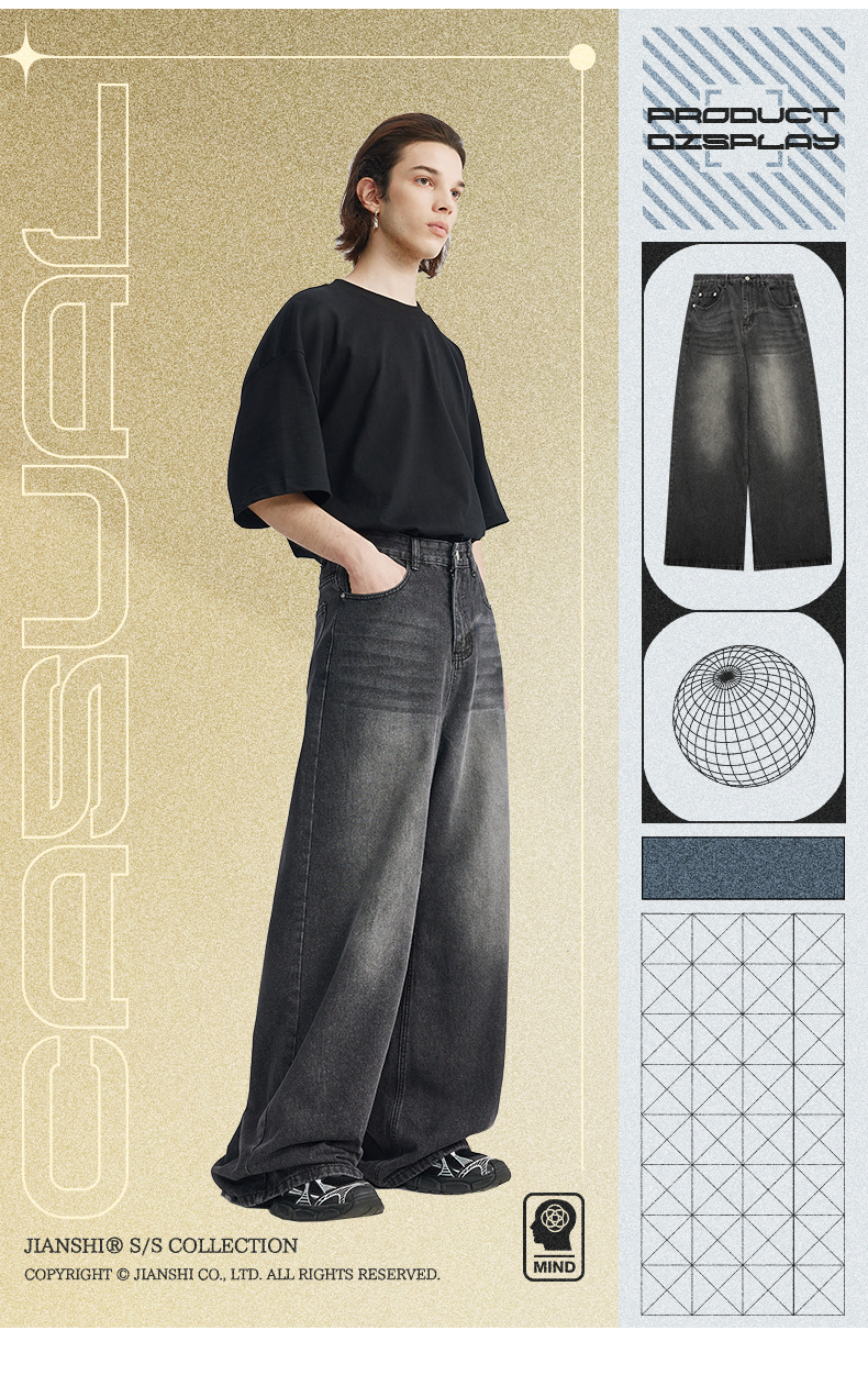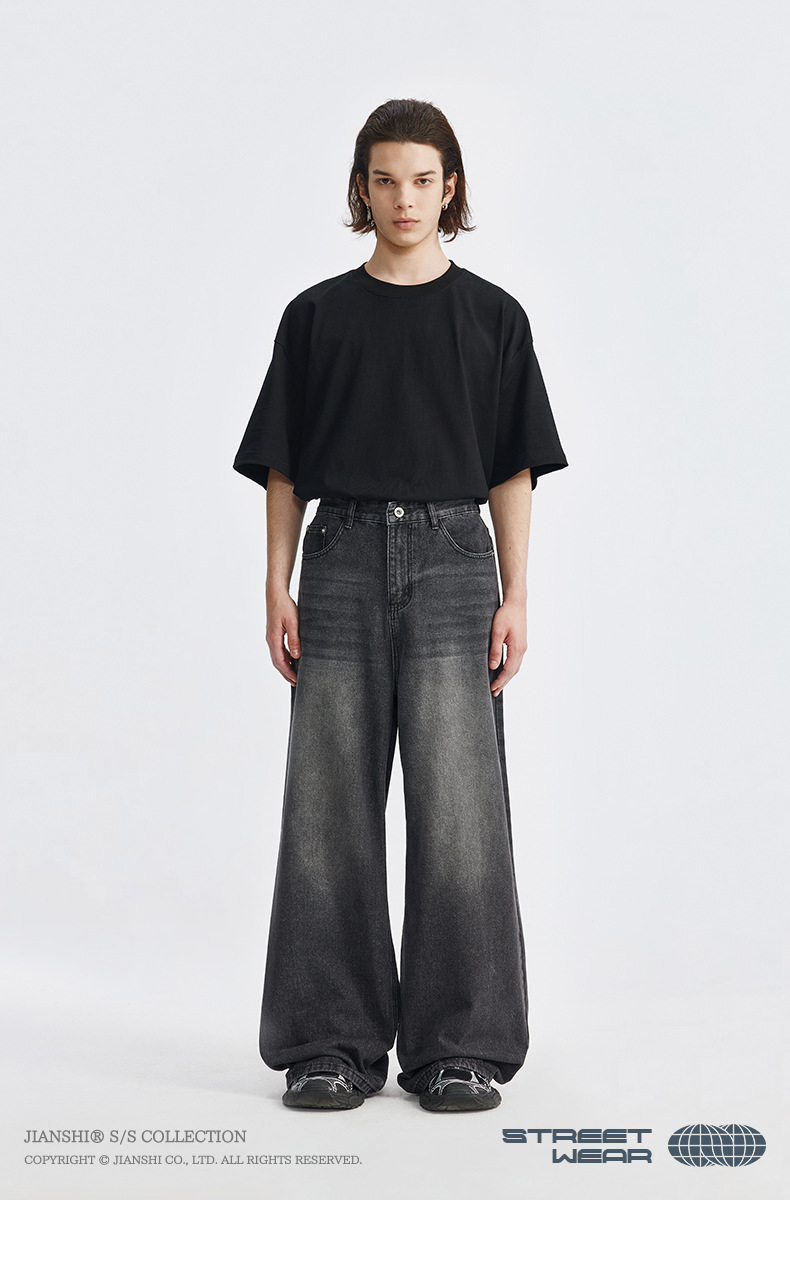 통찰력 데님 | 새로운 한국 스타일 느슨한 스트레이트 청바지 남성용 미국 복고풍 트렌디 한 남자의 간단한 스트레이트 팬츠