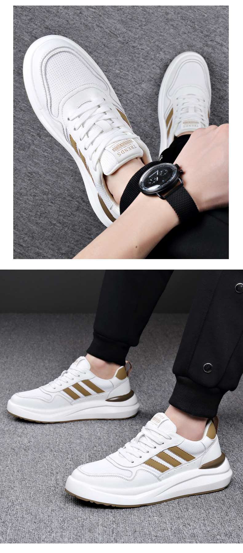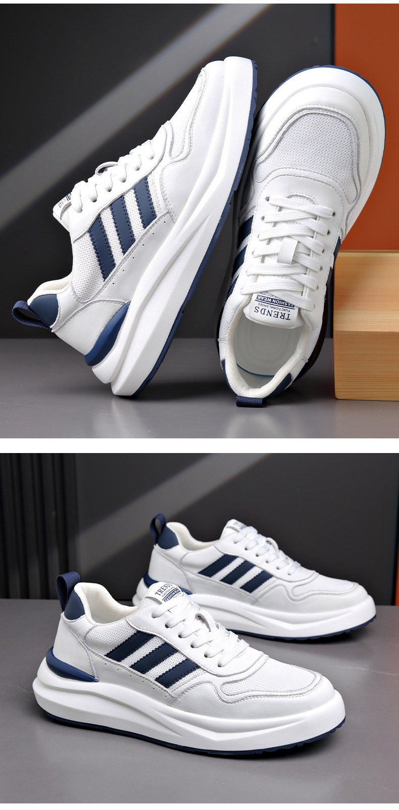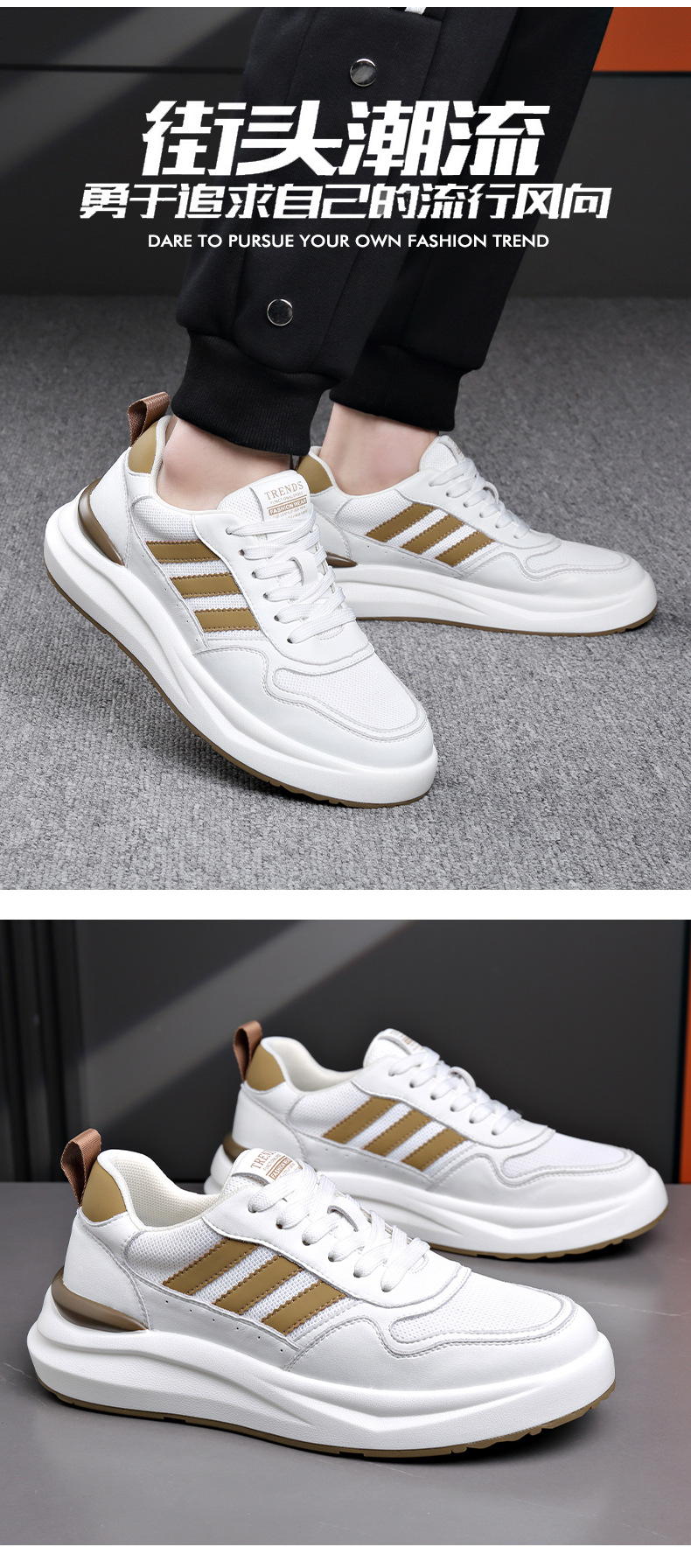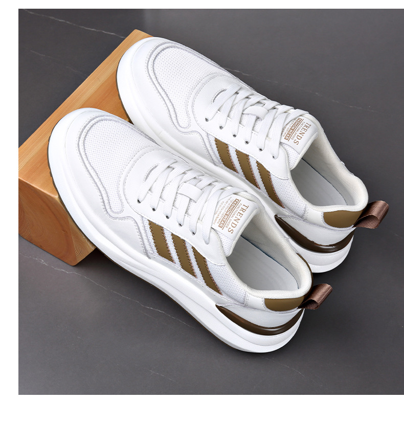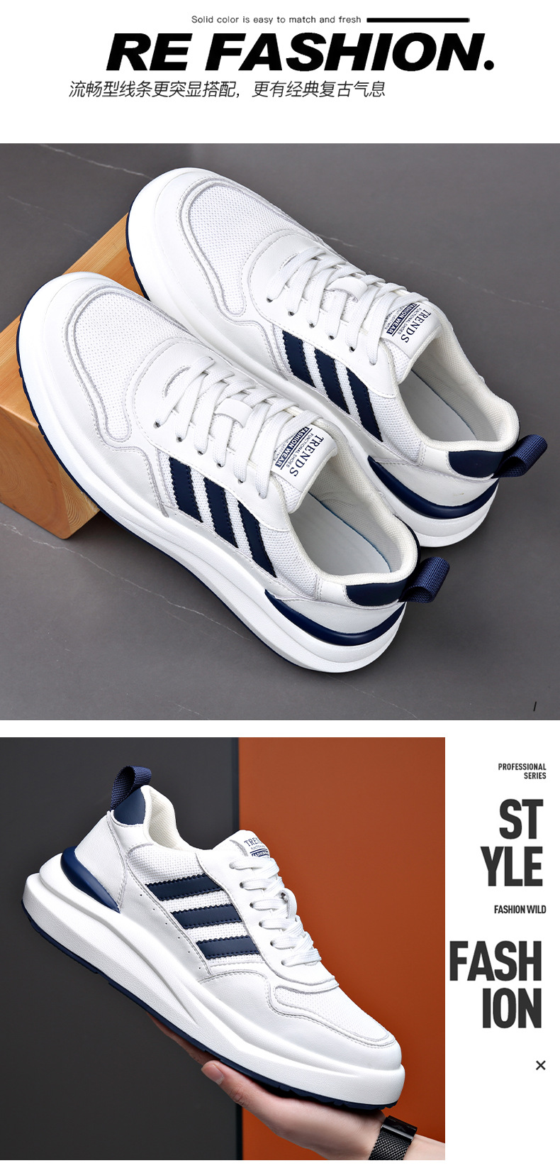 남성용 3줄 스트라이프 메쉬 스포츠 캐주얼 신발 2025 여름 신상 통기성 흰색 신발, 키 6cm 증가, 천연 가죽 남성 신발