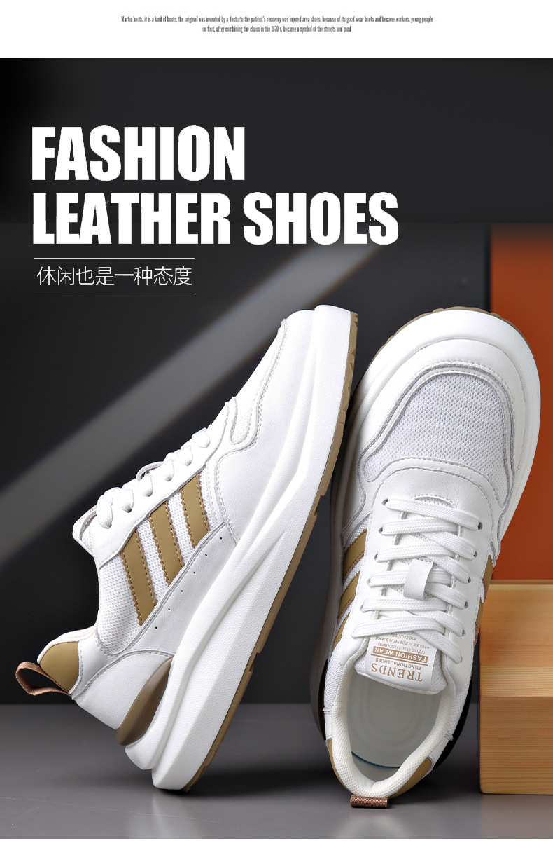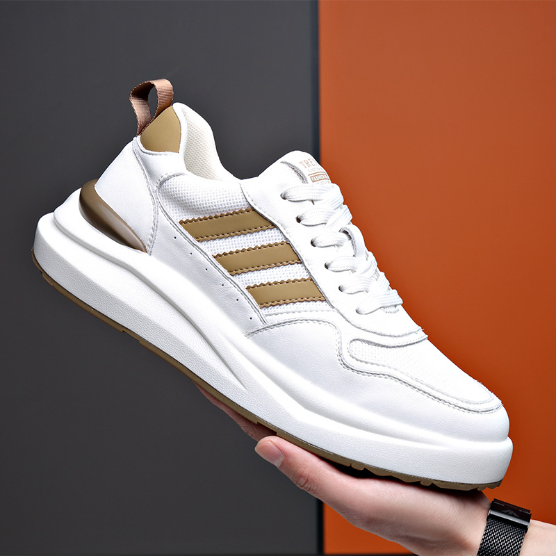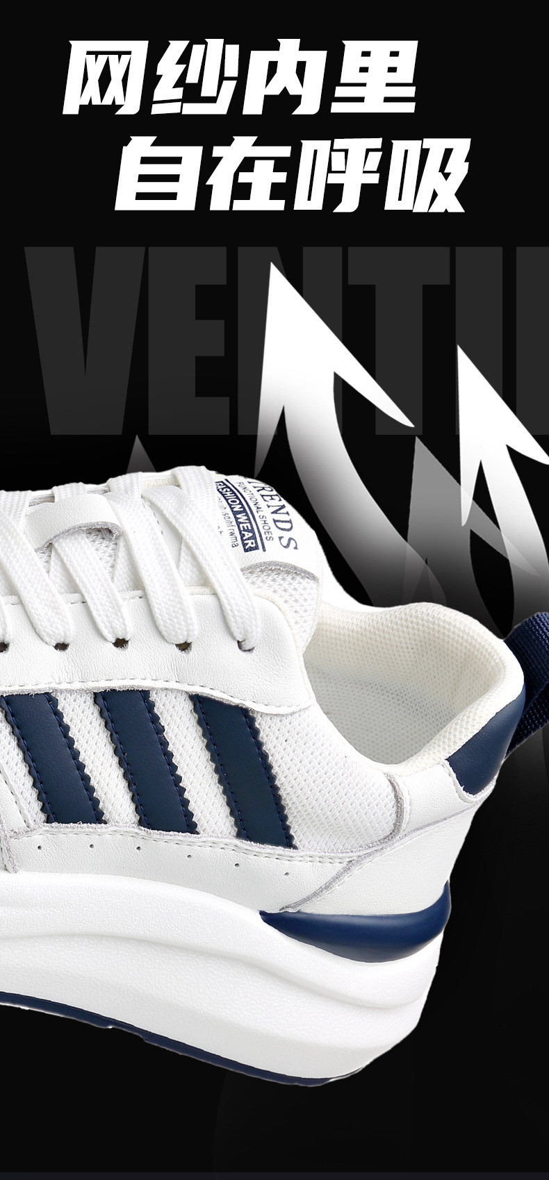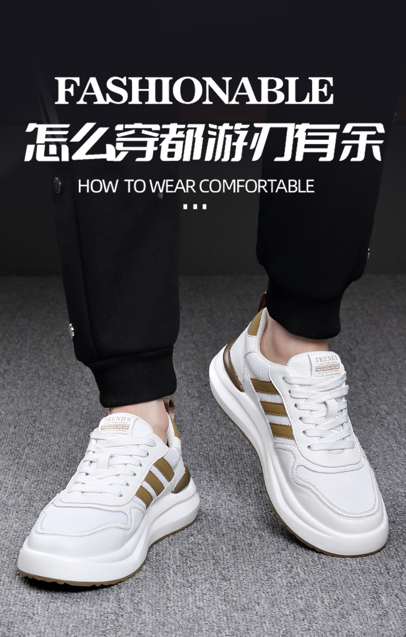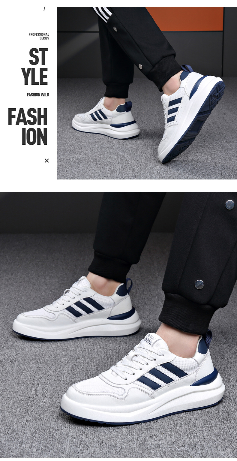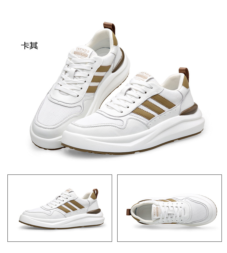 남성용 3줄 스트라이프 메쉬 스포츠 캐주얼 신발 2025 여름 신상 통기성 흰색 신발, 키 6cm 증가, 천연 가죽 남성 신발