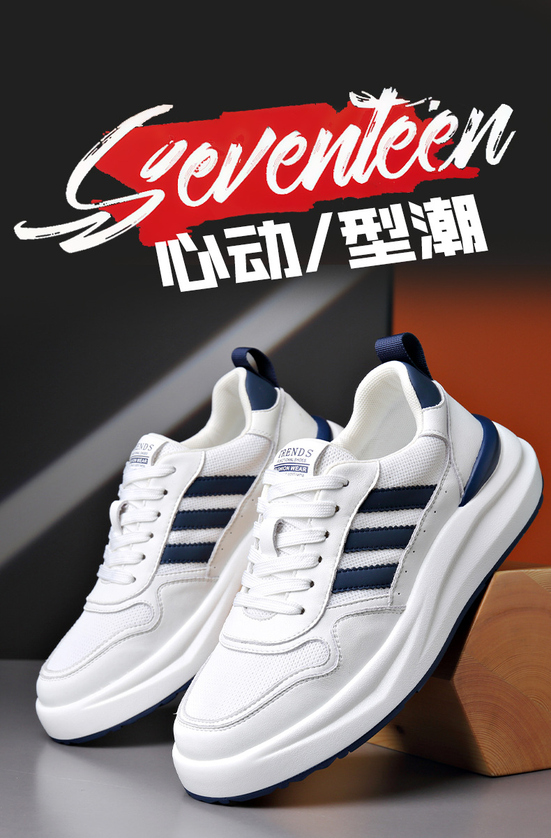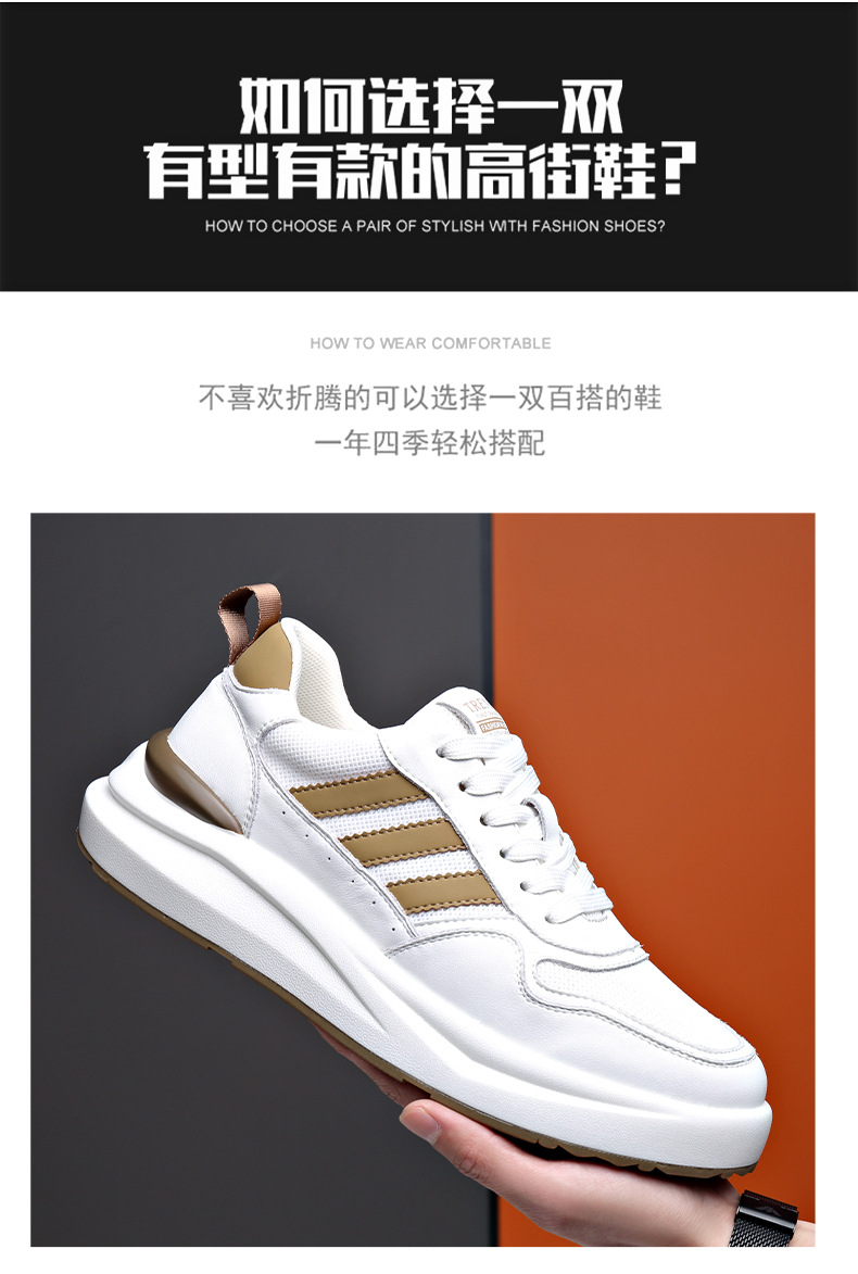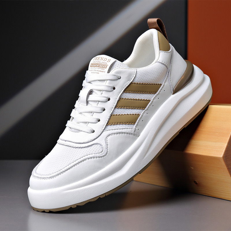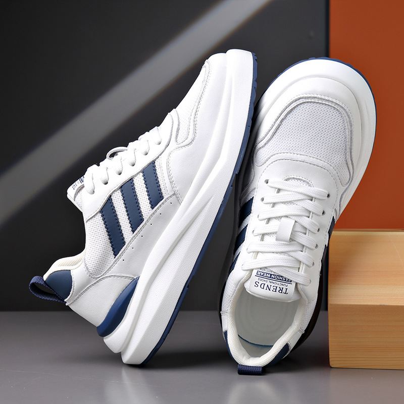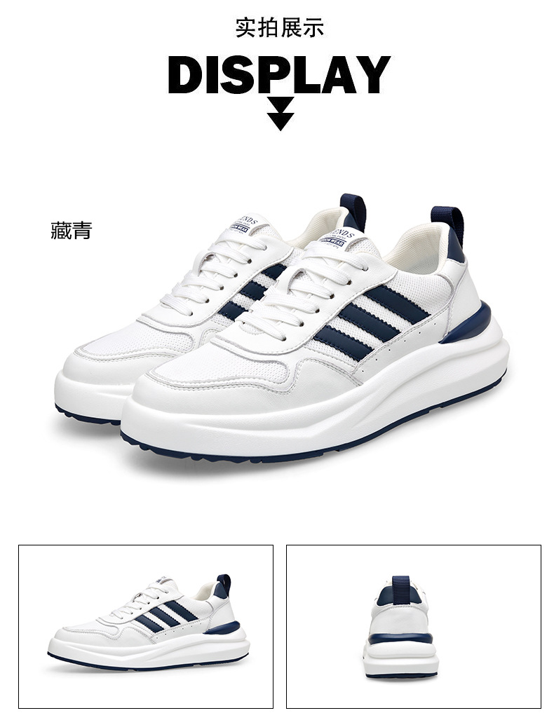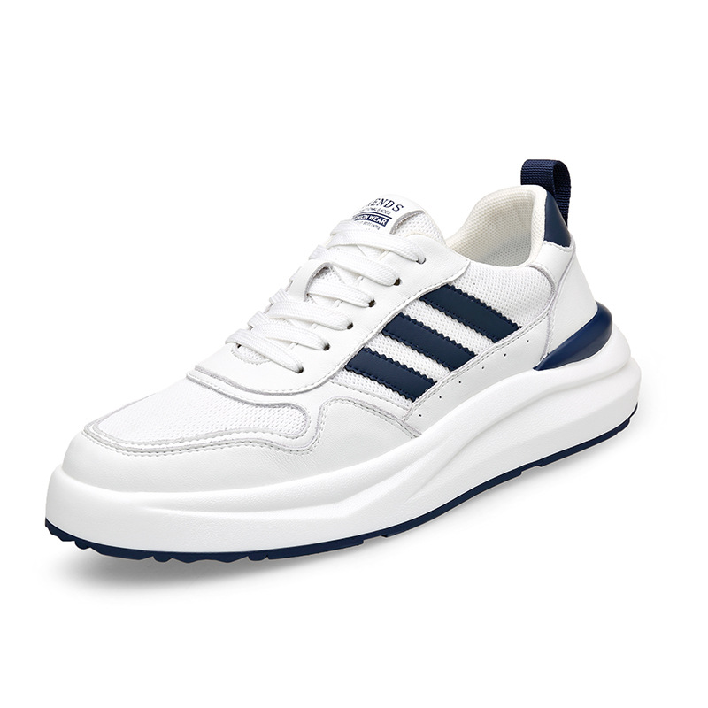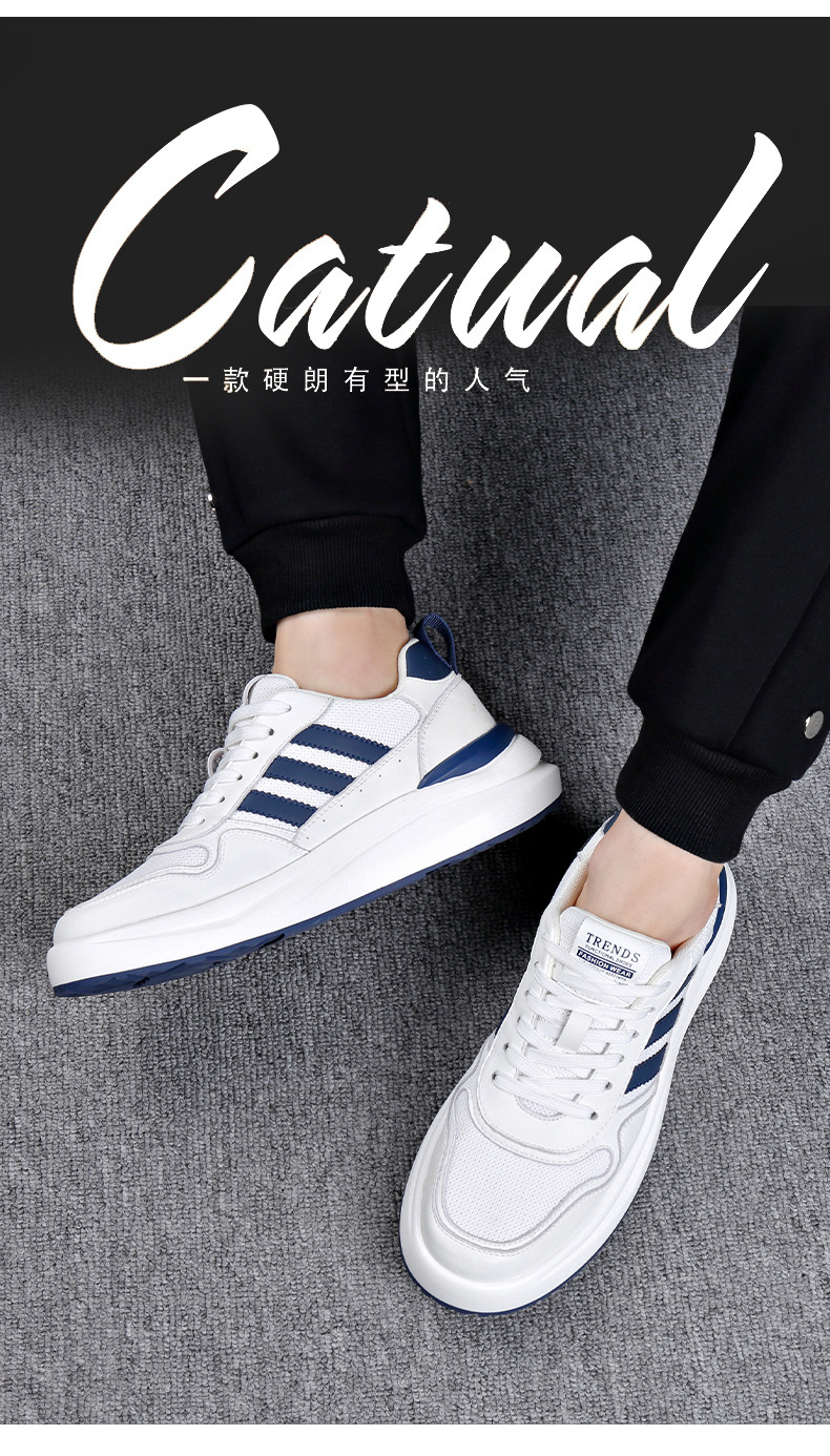 남성용 3줄 스트라이프 메쉬 스포츠 캐주얼 신발 2025 여름 신상 통기성 흰색 신발, 키 6cm 증가, 천연 가죽 남성 신발