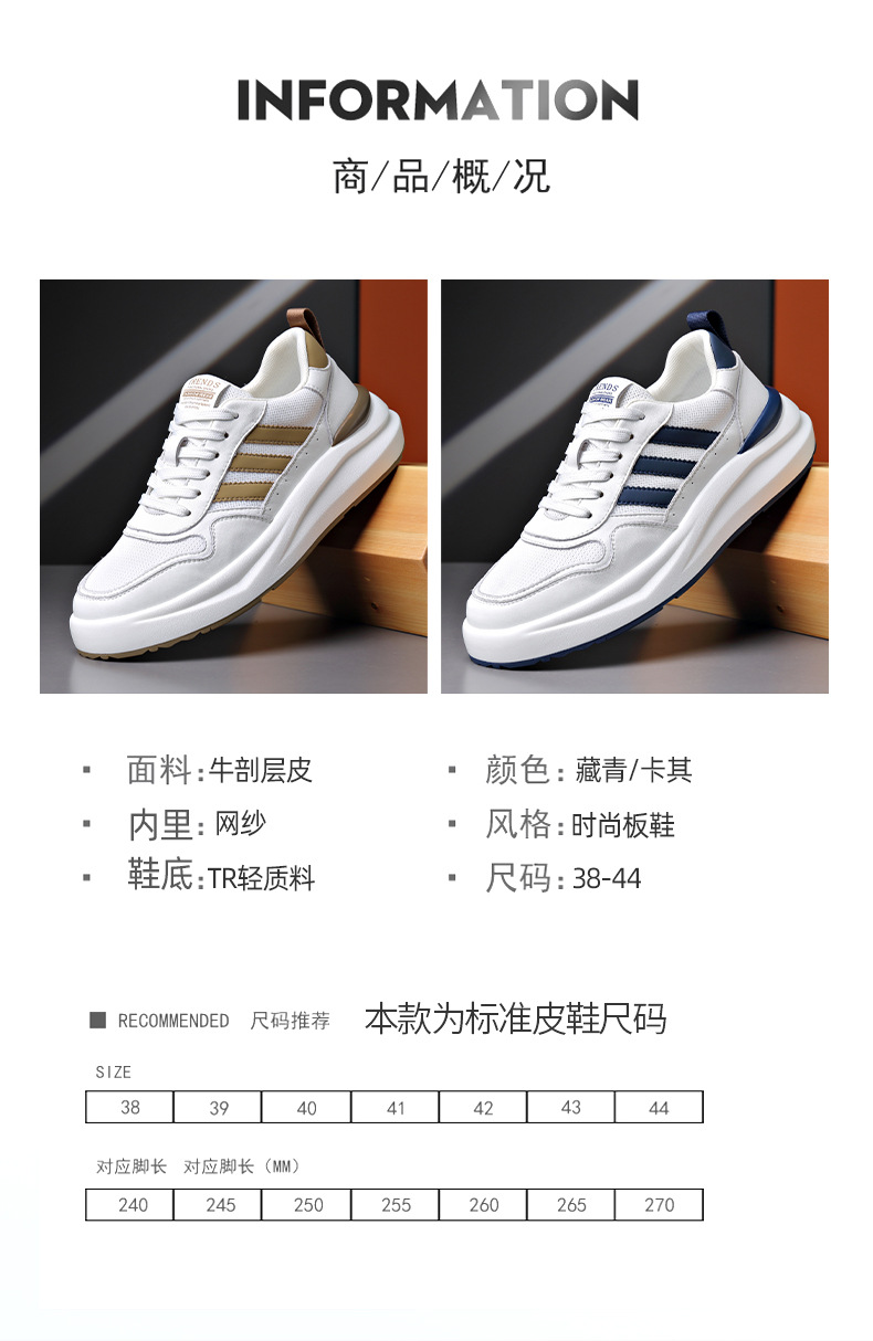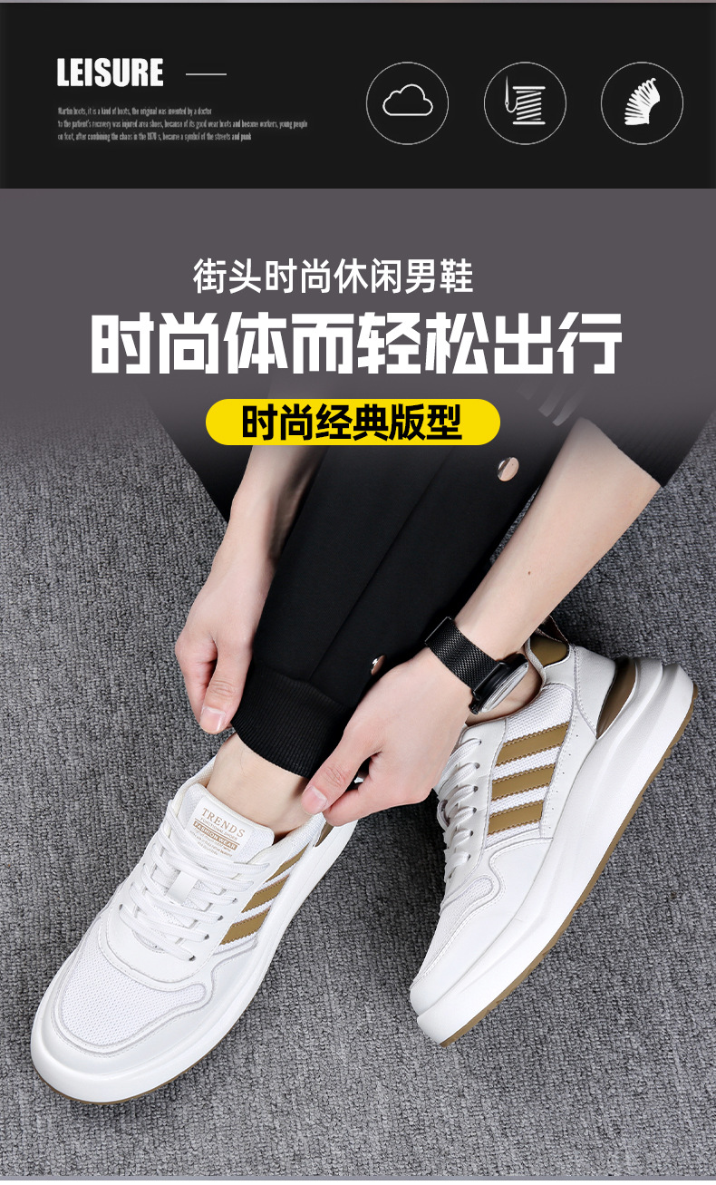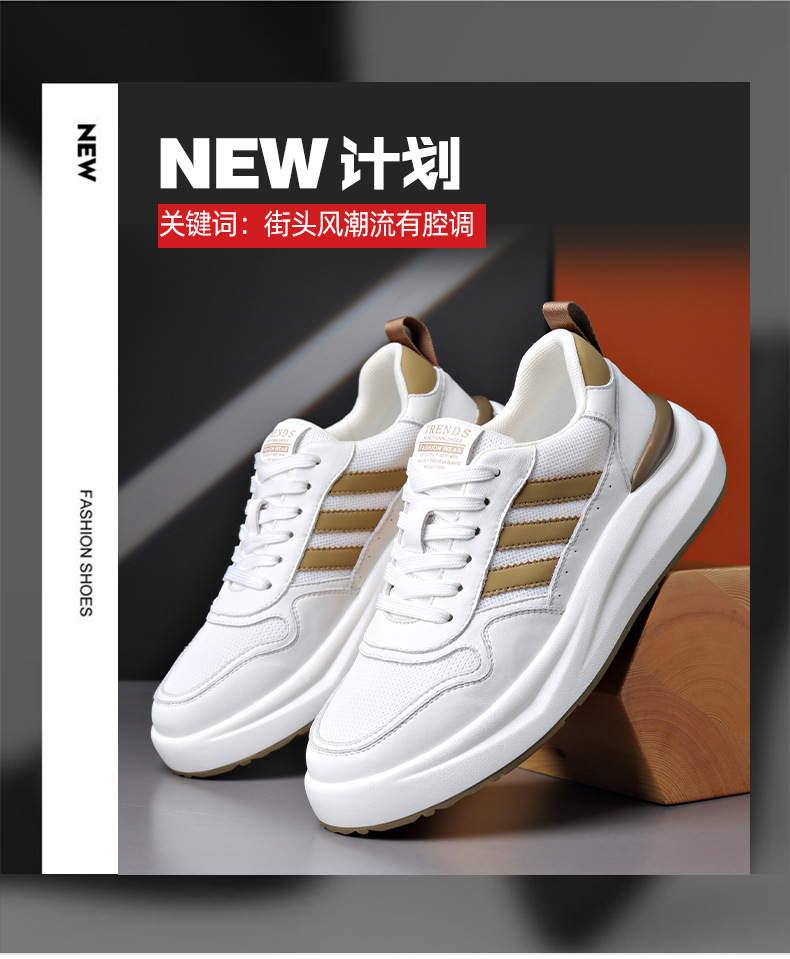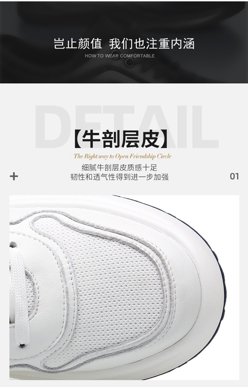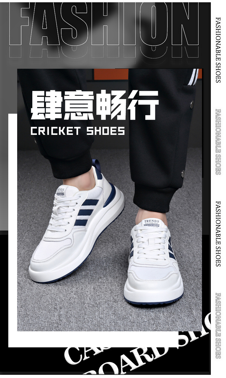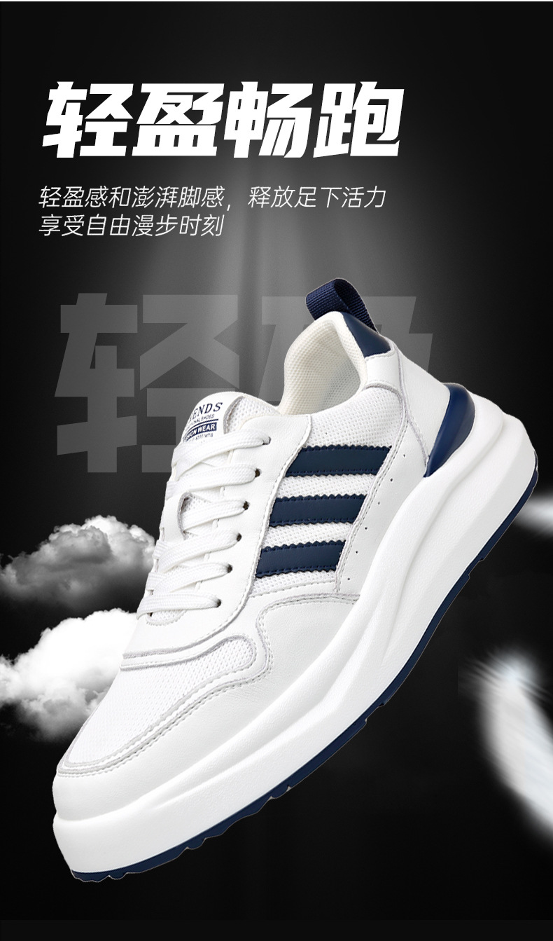 남성용 3줄 스트라이프 메쉬 스포츠 캐주얼 신발 2025 여름 신상 통기성 흰색 신발, 키 6cm 증가, 천연 가죽 남성 신발