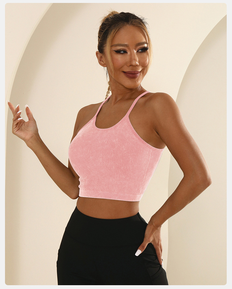 국경 간 룰루 스포츠 속옷 씻은 조끼 벗겨진 요가 브라 여자 여름 편안한 빠른 건조 올 매치