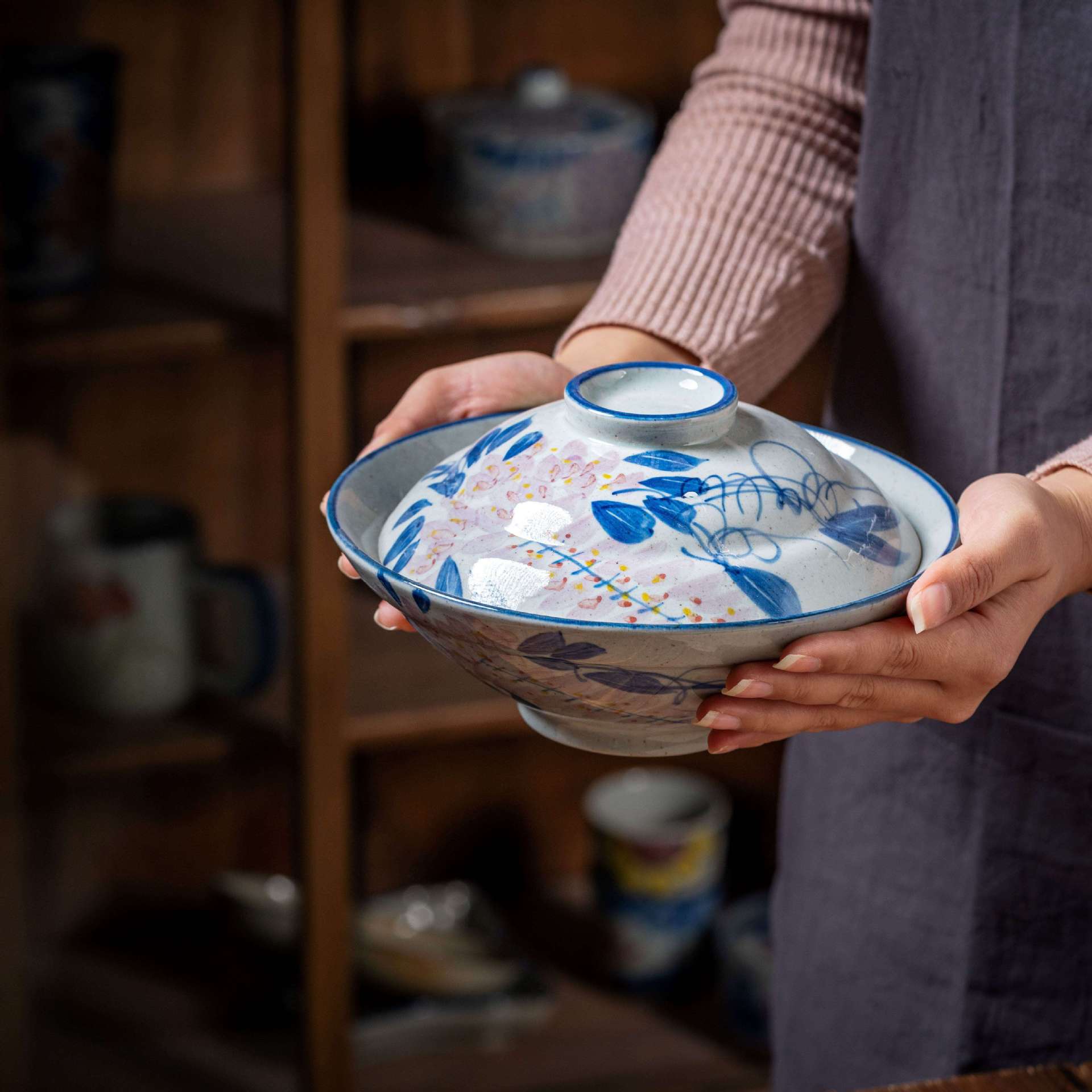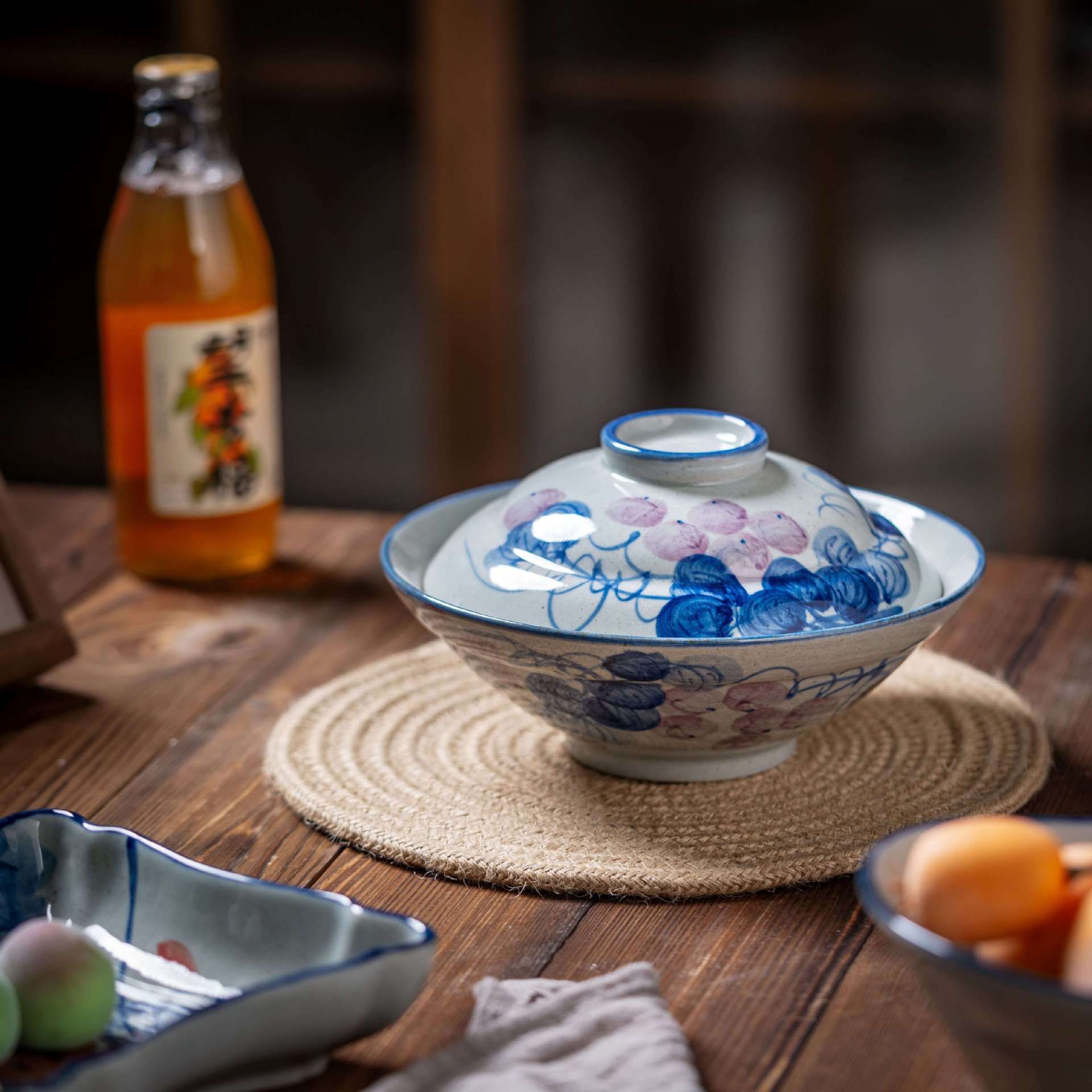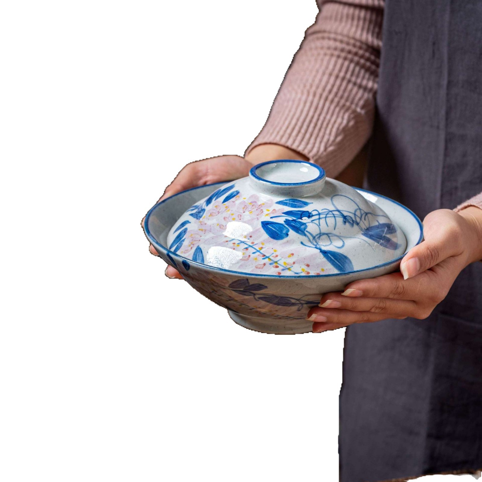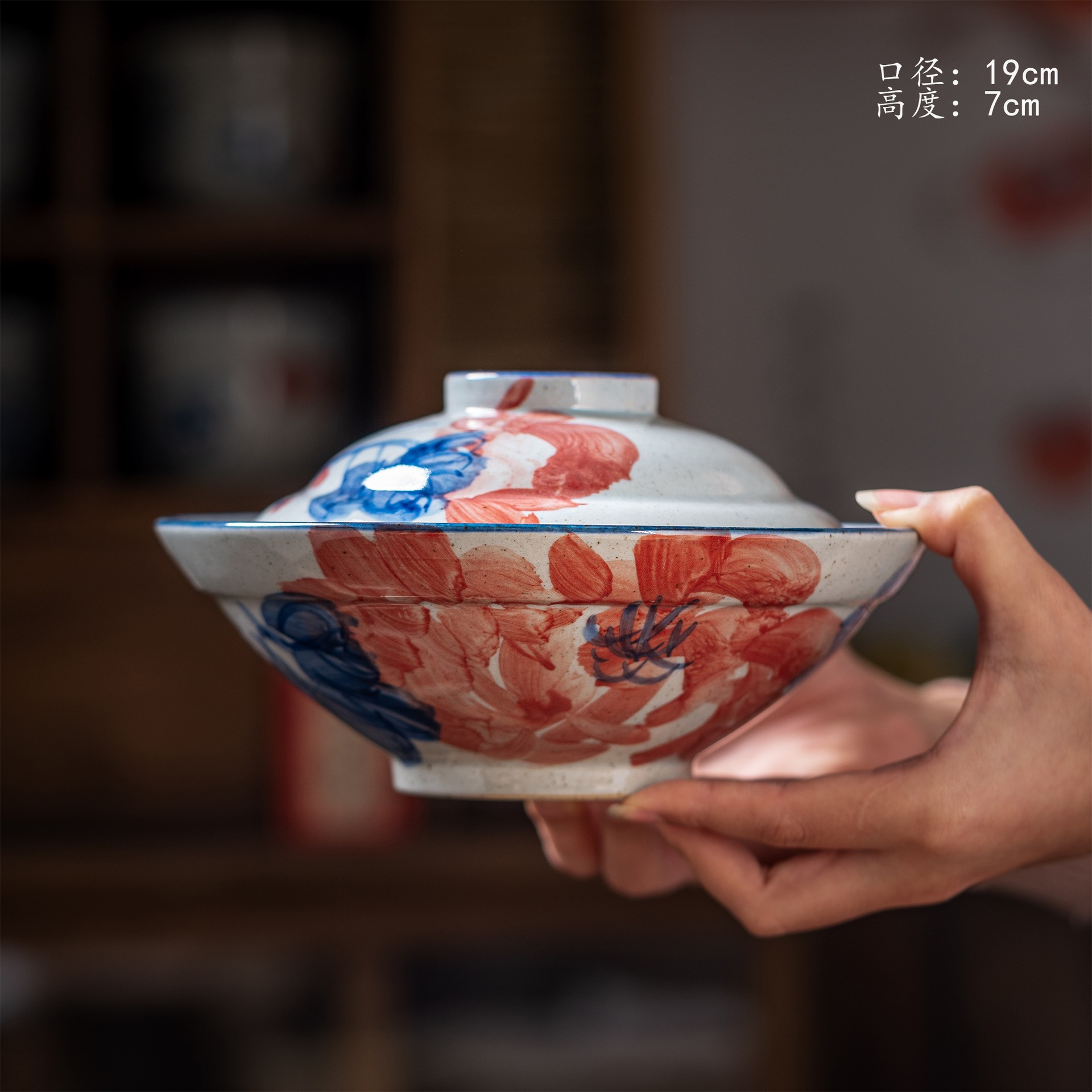 [박스형 찌개그릇] 경덕진 수제 뚜껑있는 그릇, 언더글레이즈 컬러 계란찜, 뚜껑이 있는 도자기 식기, 수제 도자기
