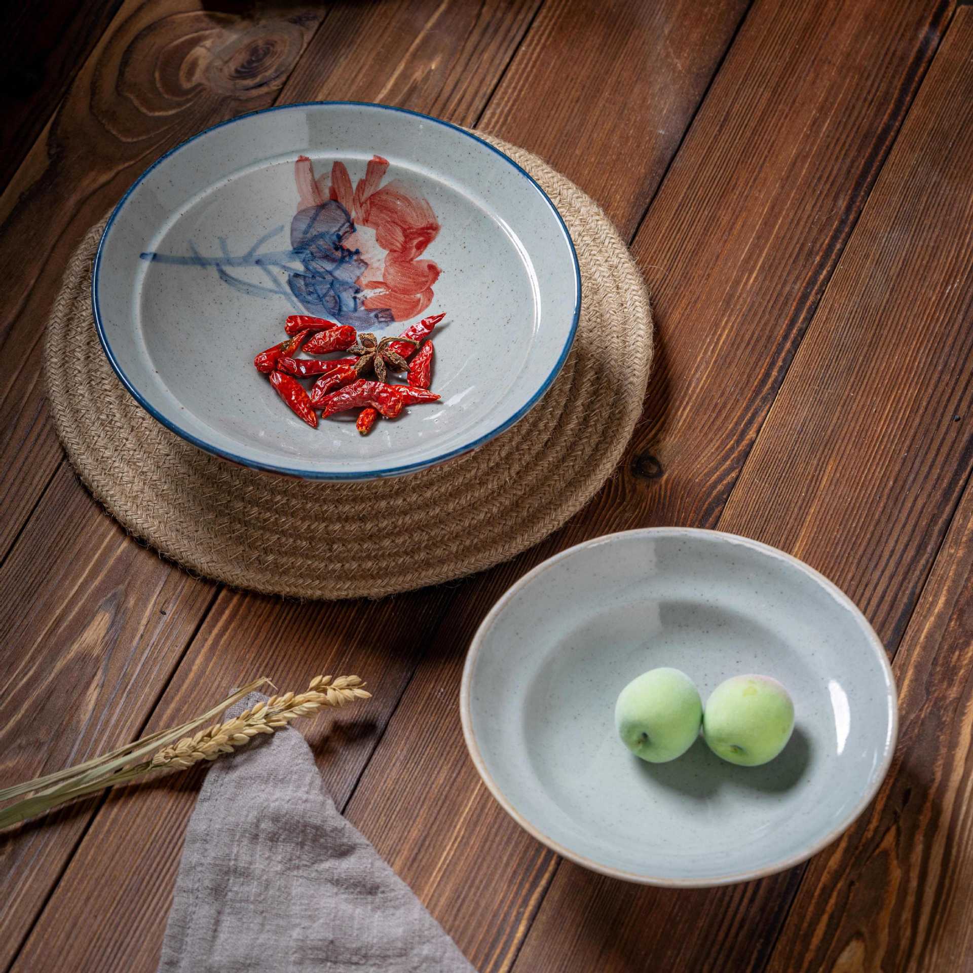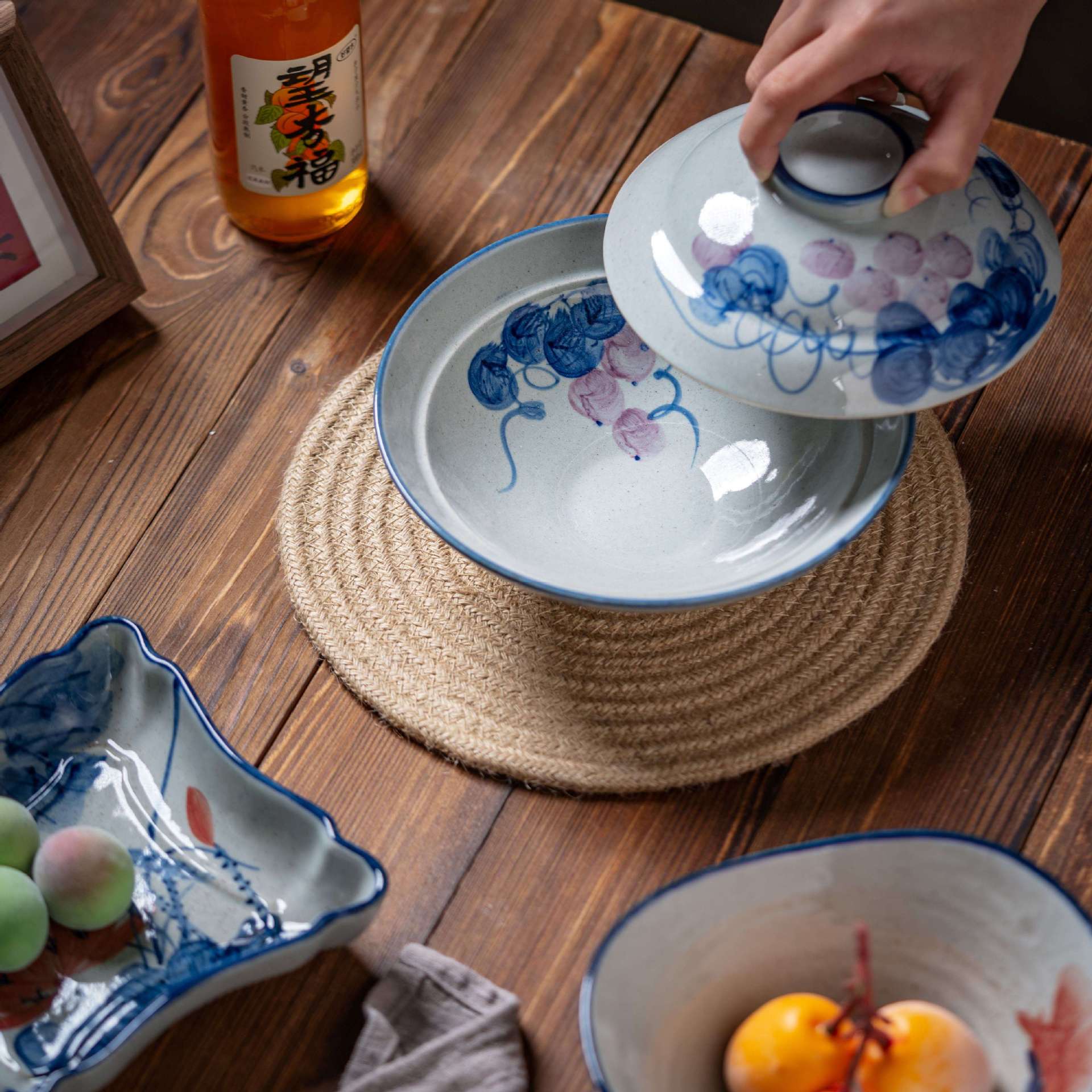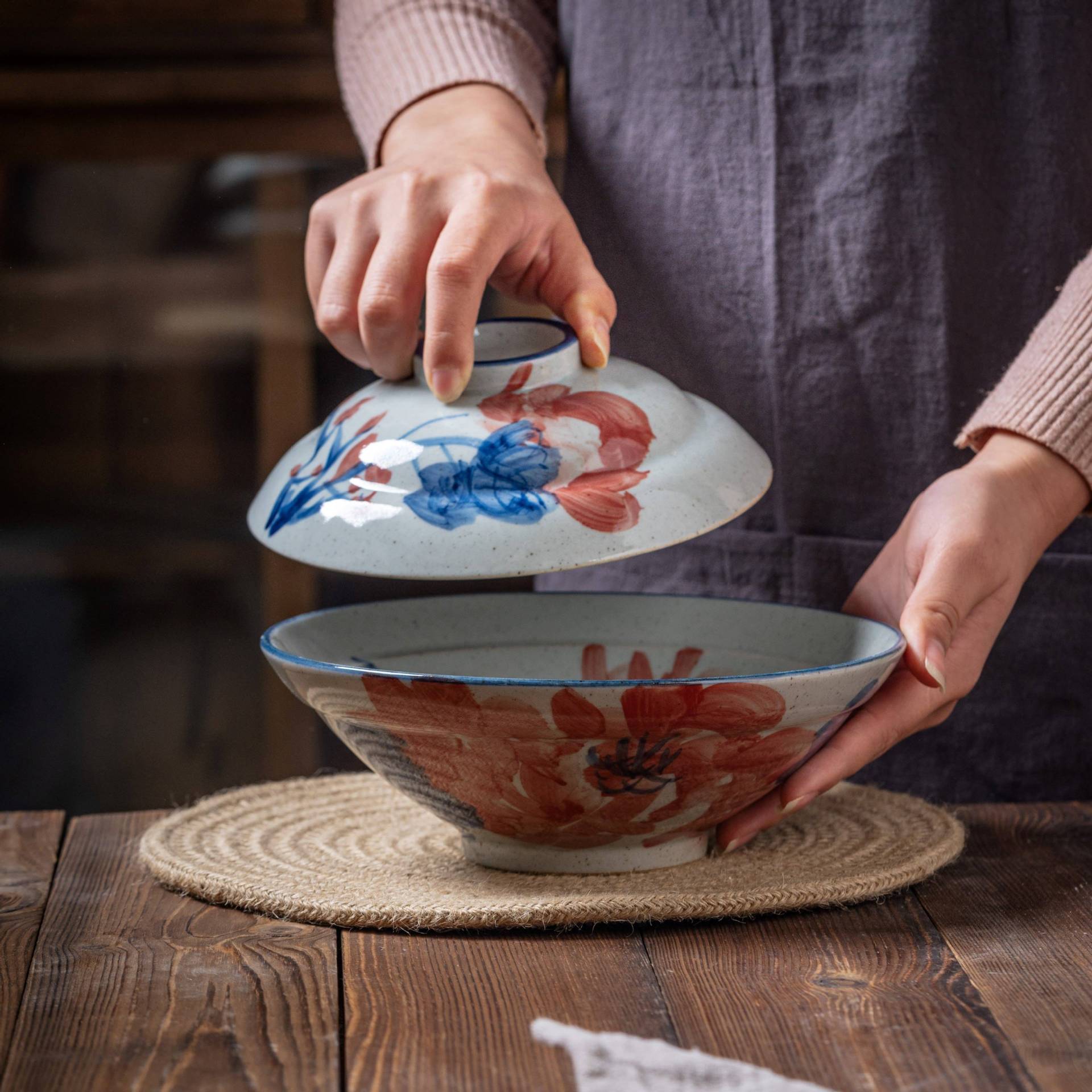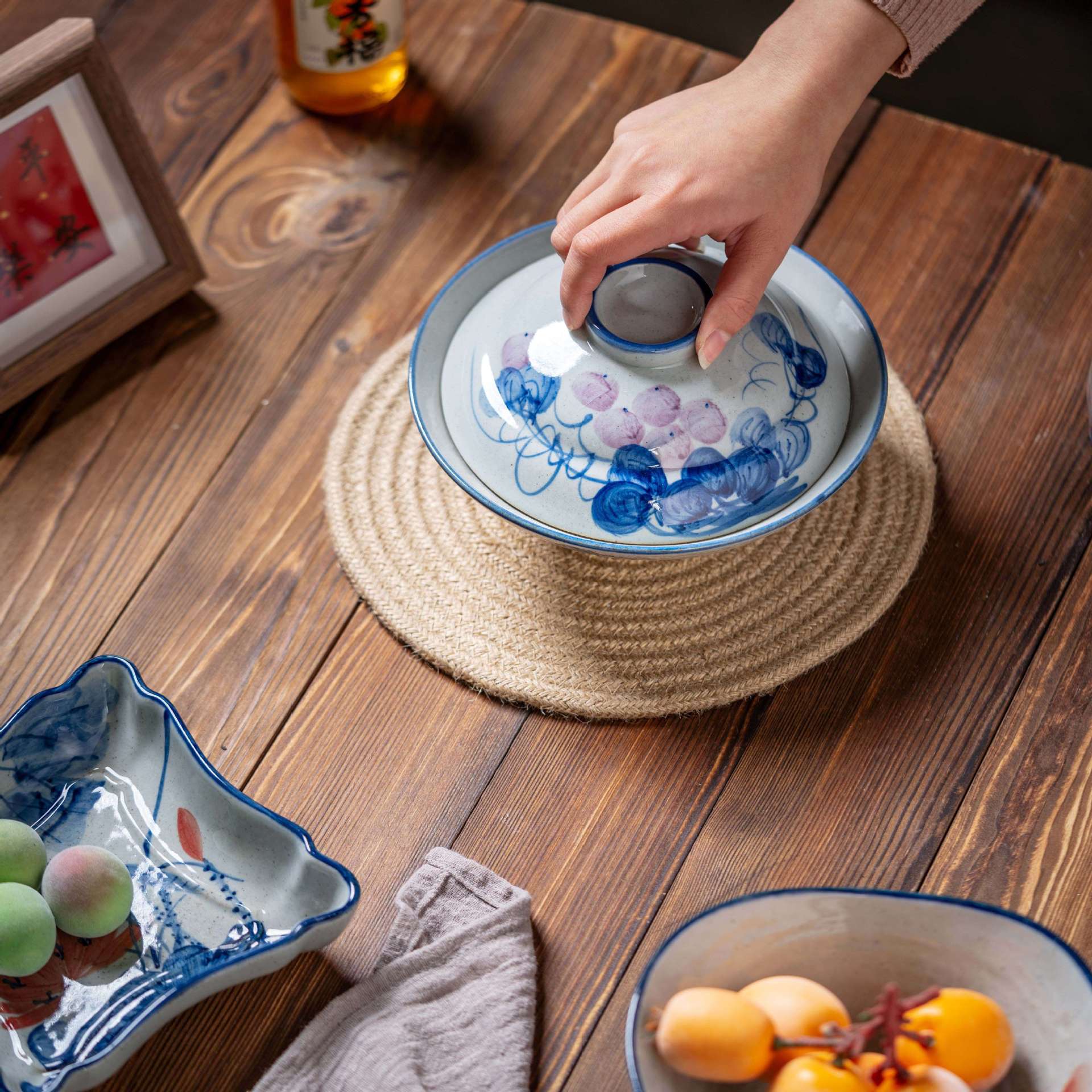 [박스형 찌개그릇] 경덕진 수제 뚜껑있는 그릇, 언더글레이즈 컬러 계란찜, 뚜껑이 있는 도자기 식기, 수제 도자기