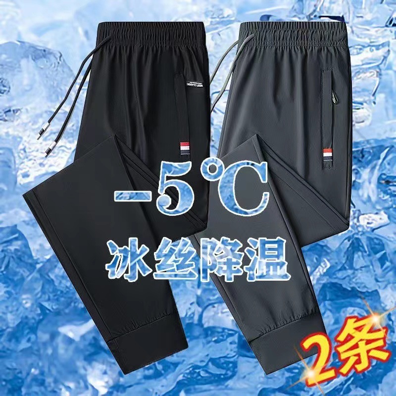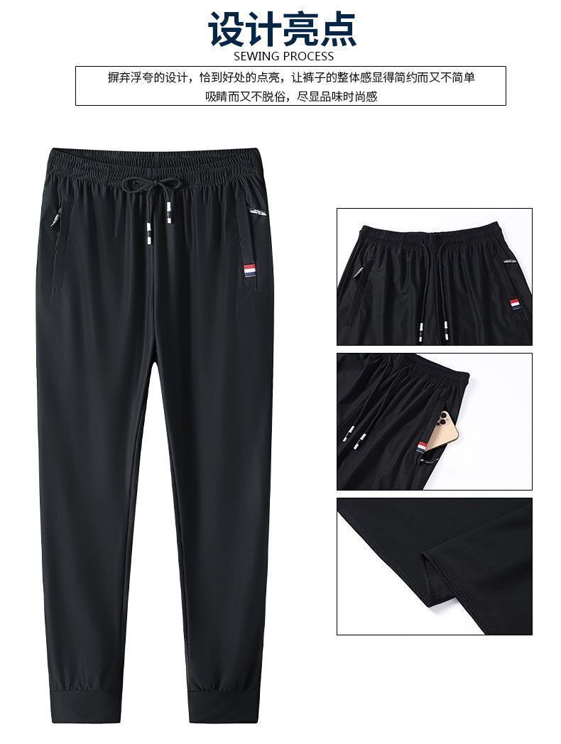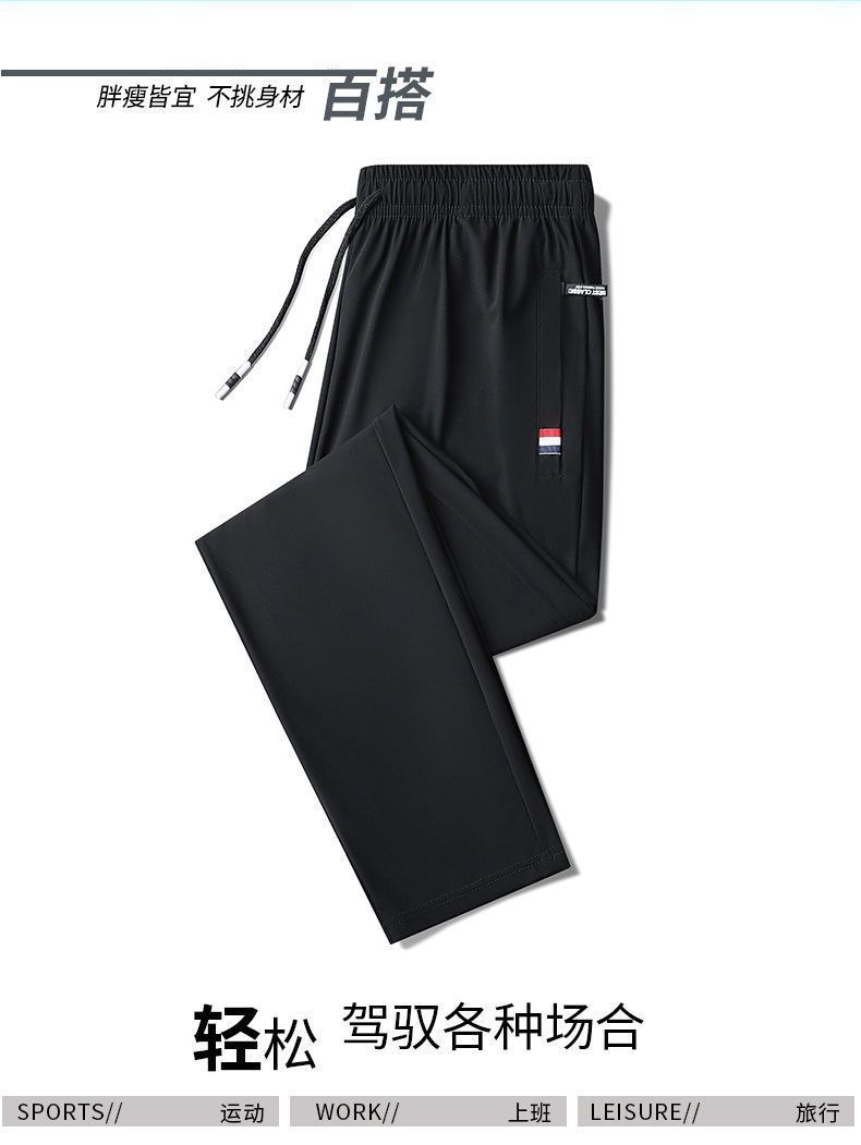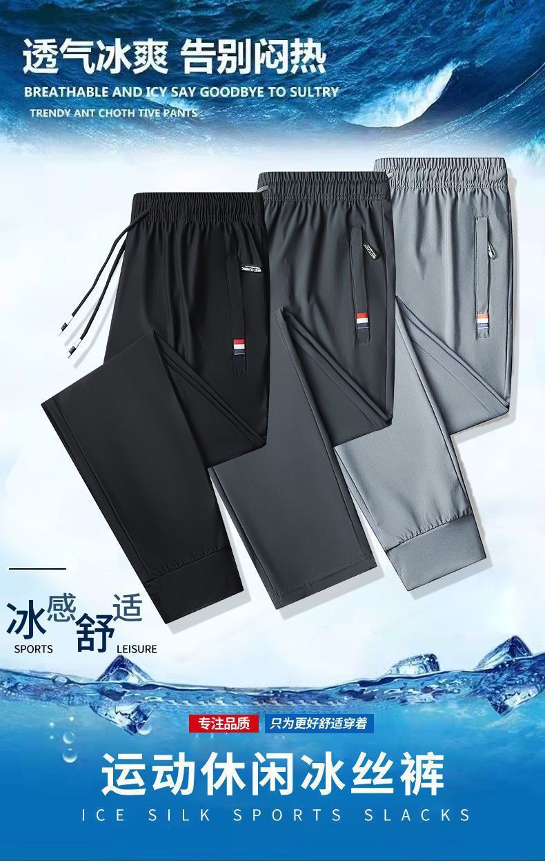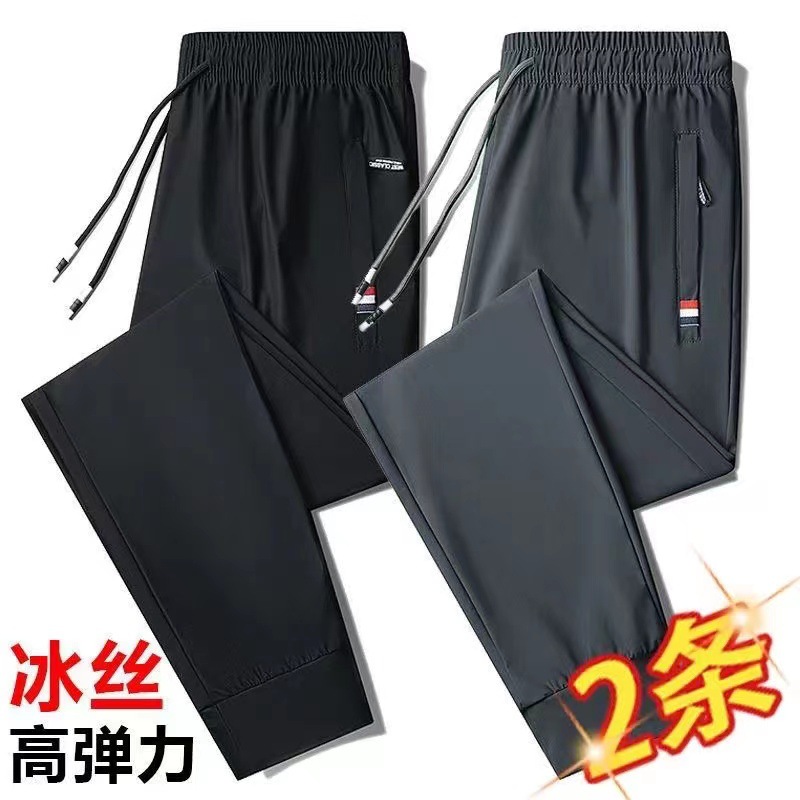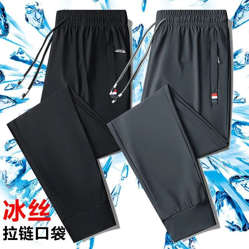 도매 아이스 실크 바지 남성 여름 통기성 플러스 사이즈 캐주얼 바지 느슨한 스트레치 스트레이트 스포츠 바지 초박형 바지