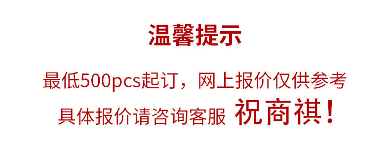 三、定做:常规做货时间为20-30天,来图来样均可以定制,时间根据数量与款式而定,客户打样确认好可以付30%的定金,订单安排生产,自下单第二天起不接受退货,换货,如有特殊情况,请及时与客服联系;