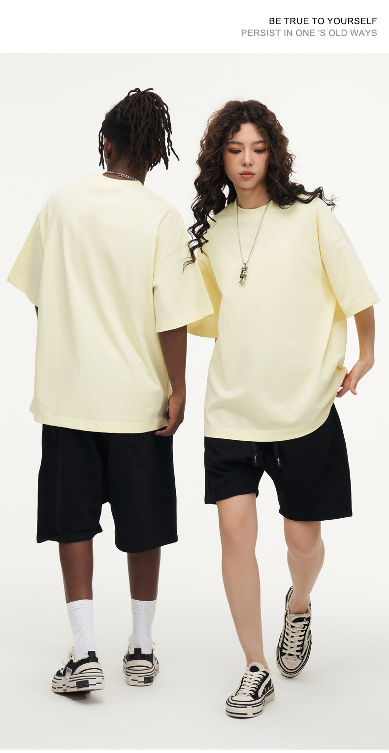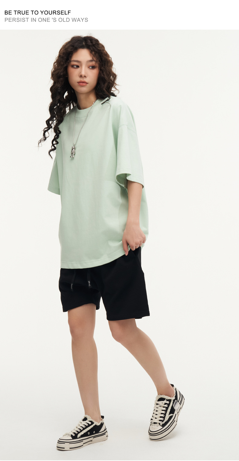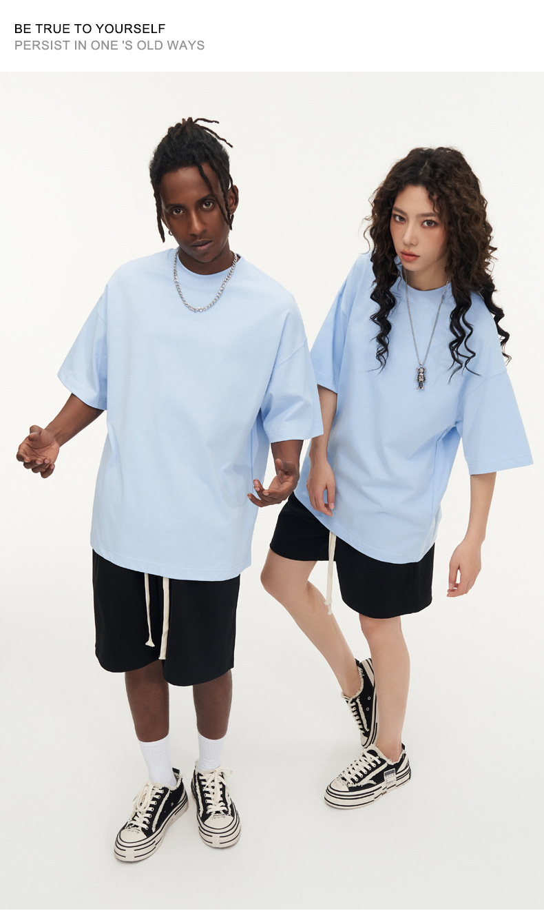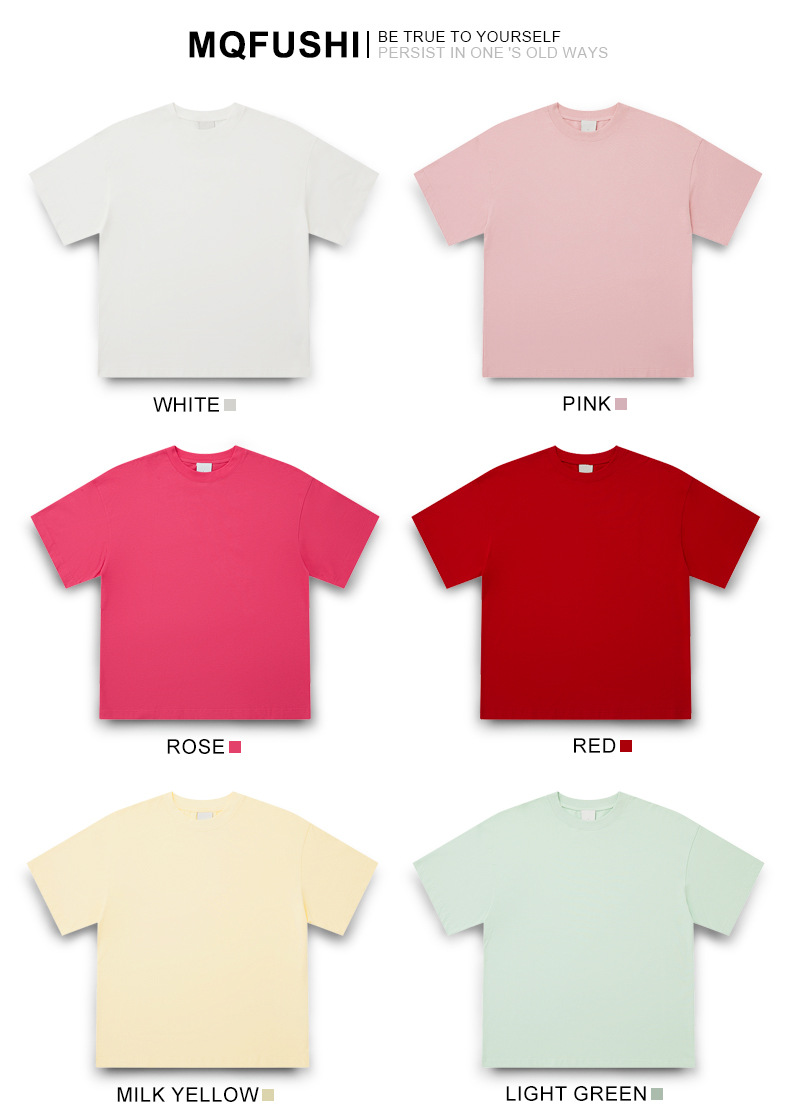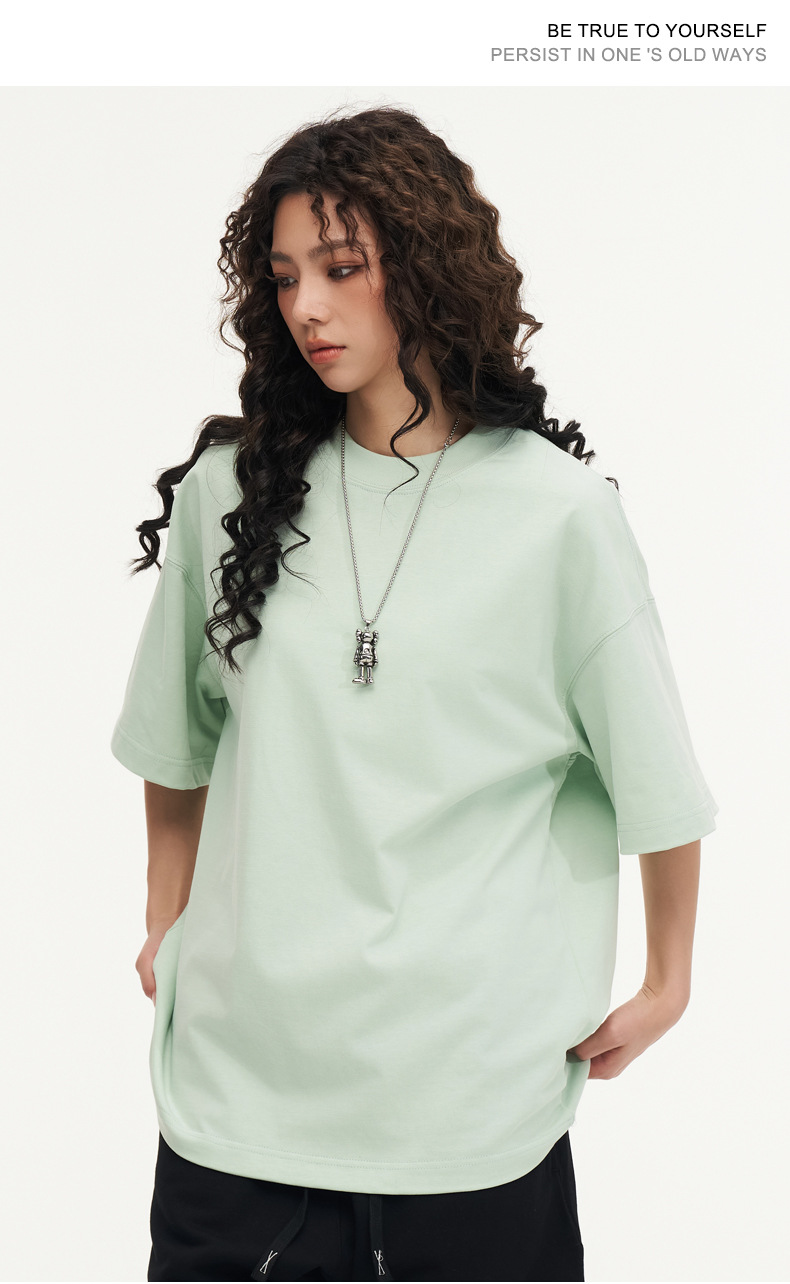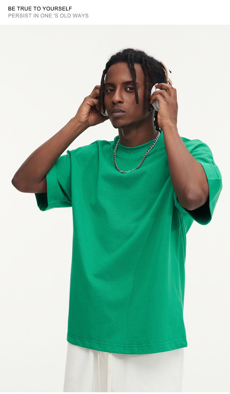 350g 무거운면 반팔 티셔츠 남성용 느슨한 단색베이스 셔츠 블랙 라운드 넥 티셔츠 화이트 탑 여성