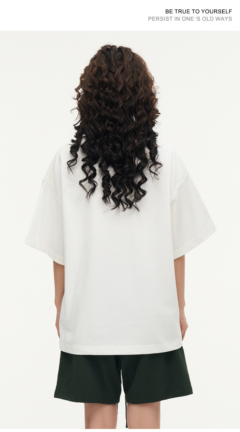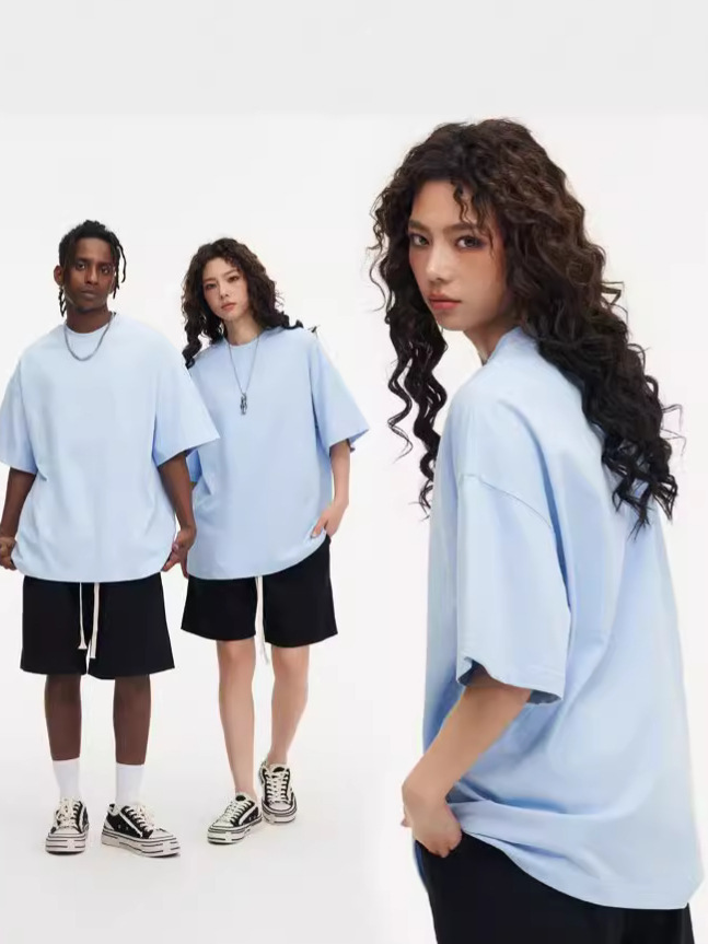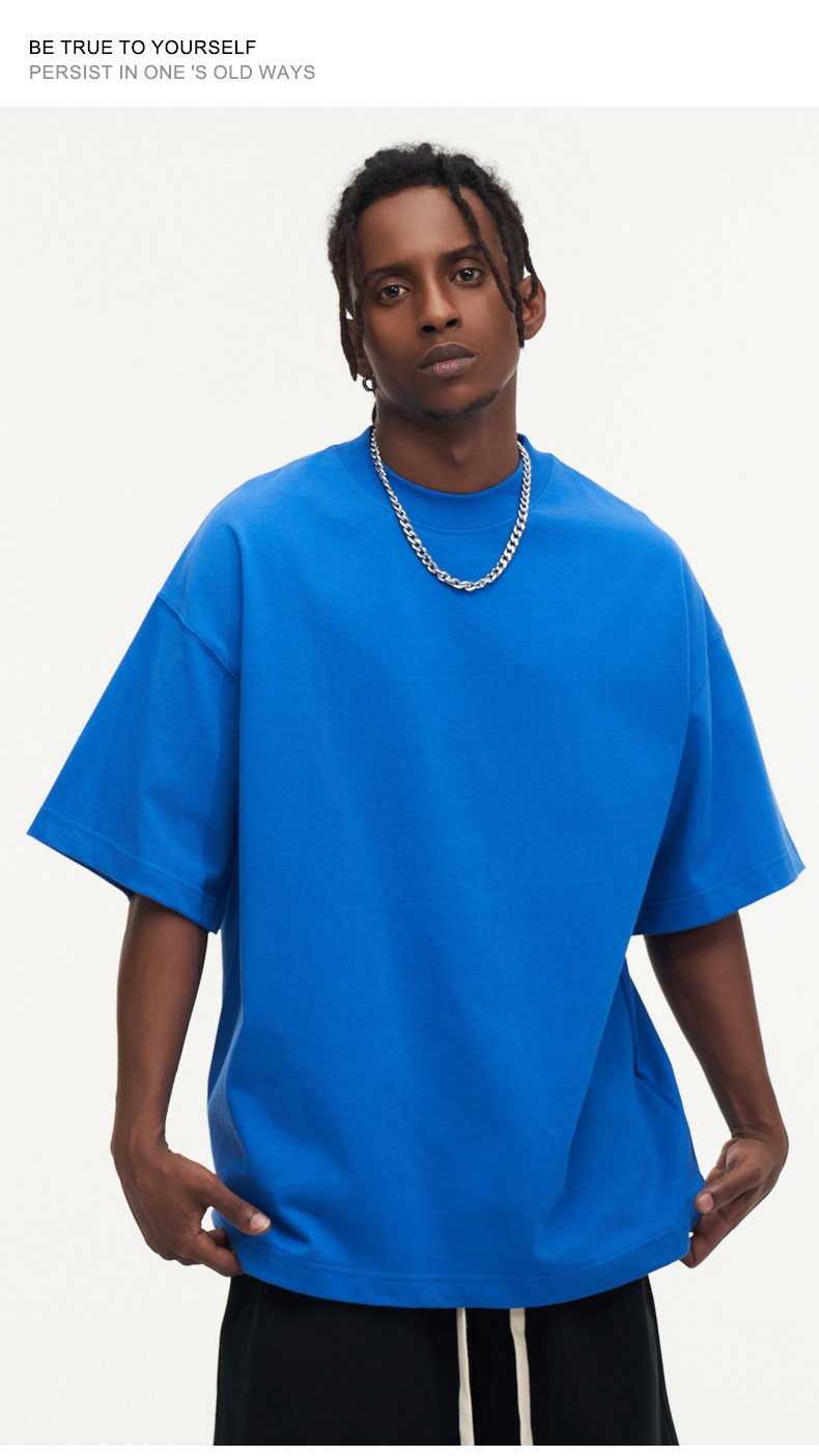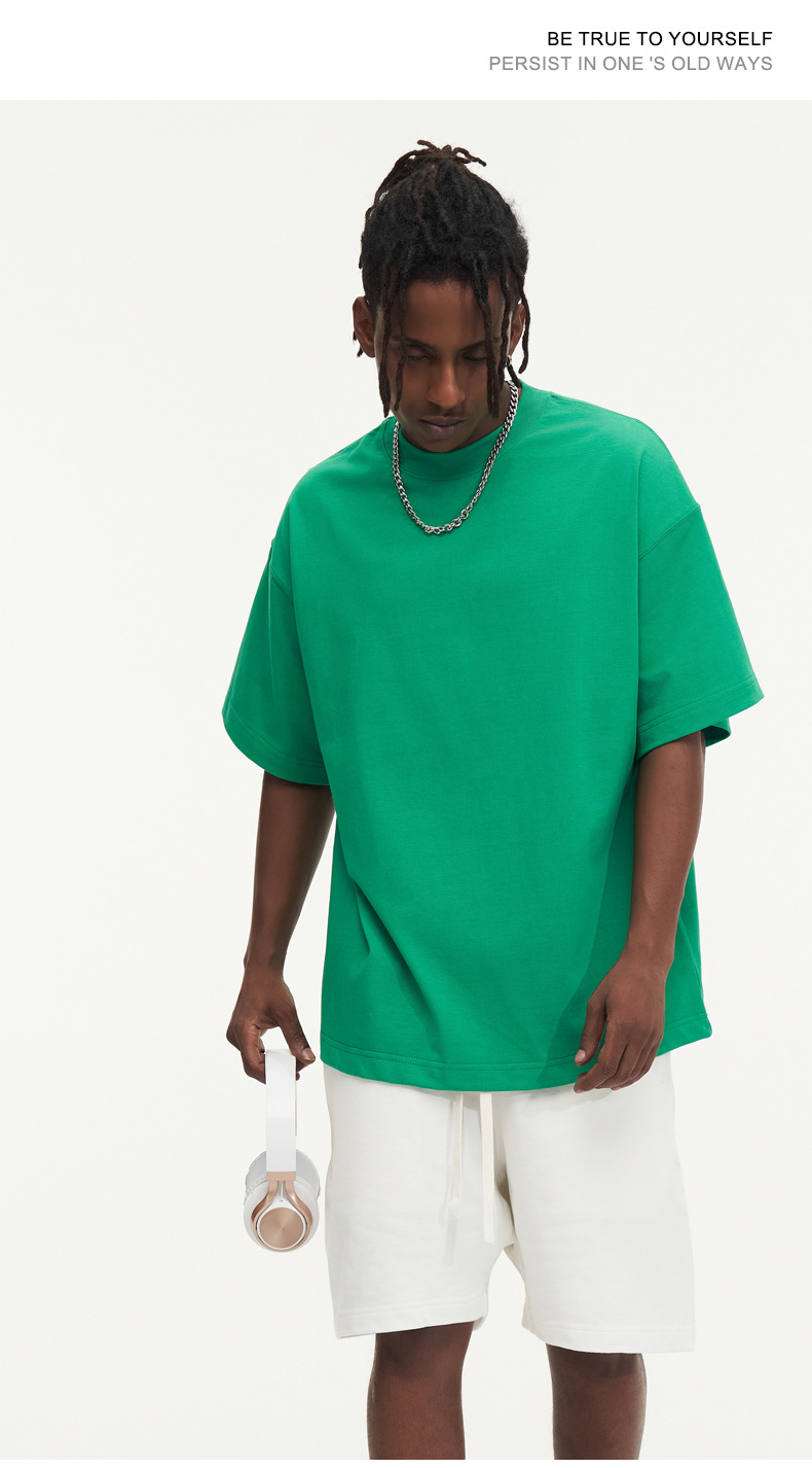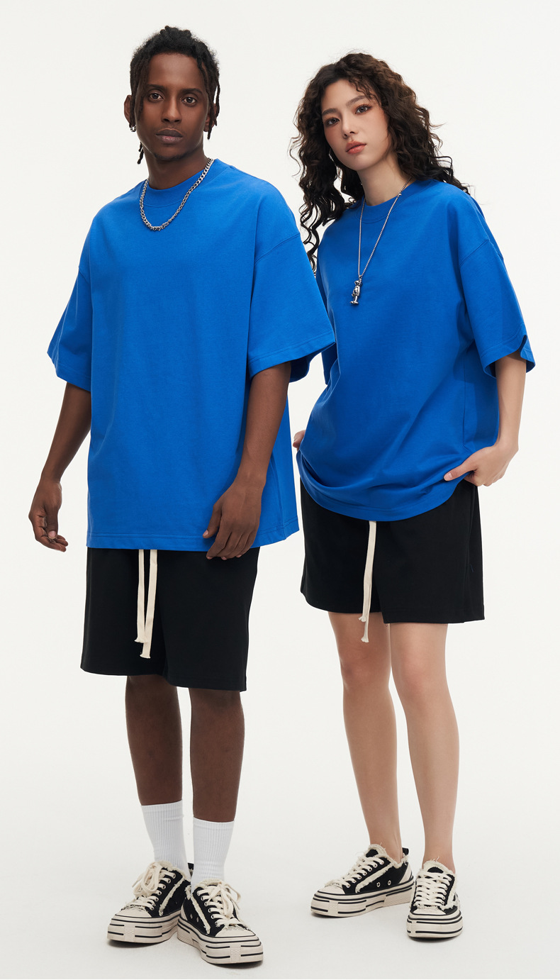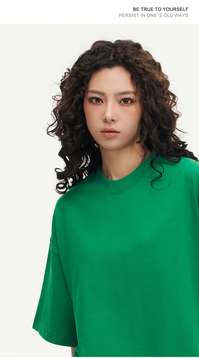 350g 무거운면 반팔 티셔츠 남성용 느슨한 단색베이스 셔츠 블랙 라운드 넥 티셔츠 화이트 탑 여성