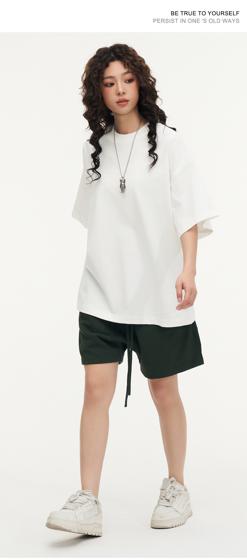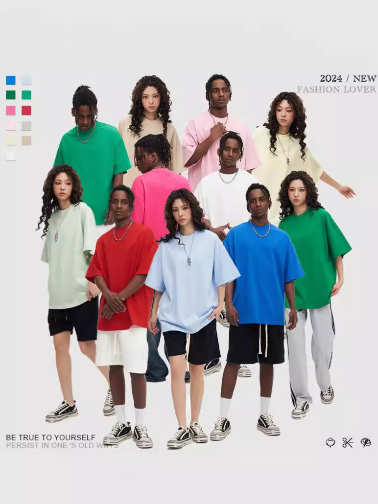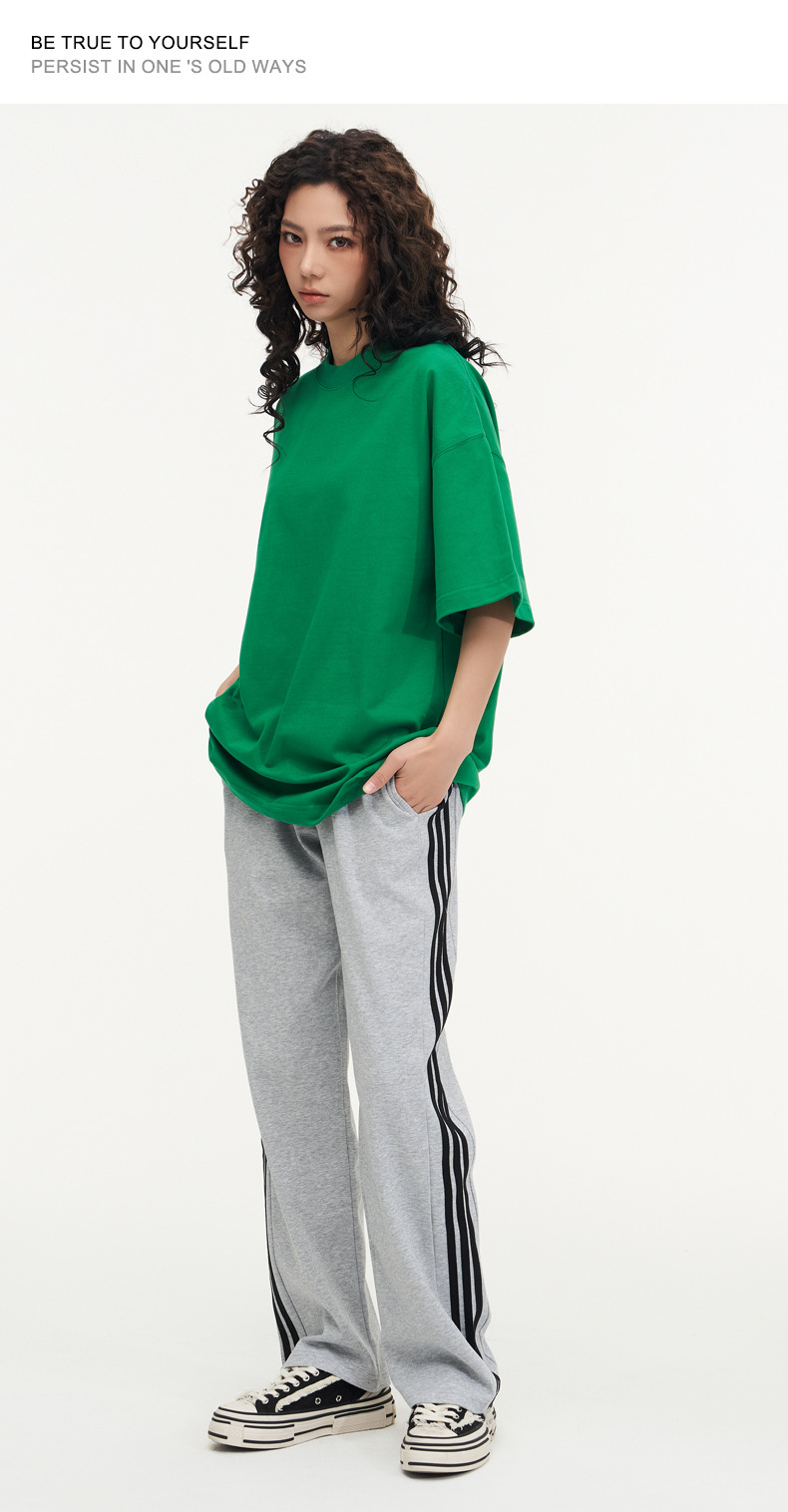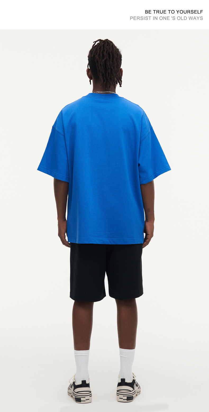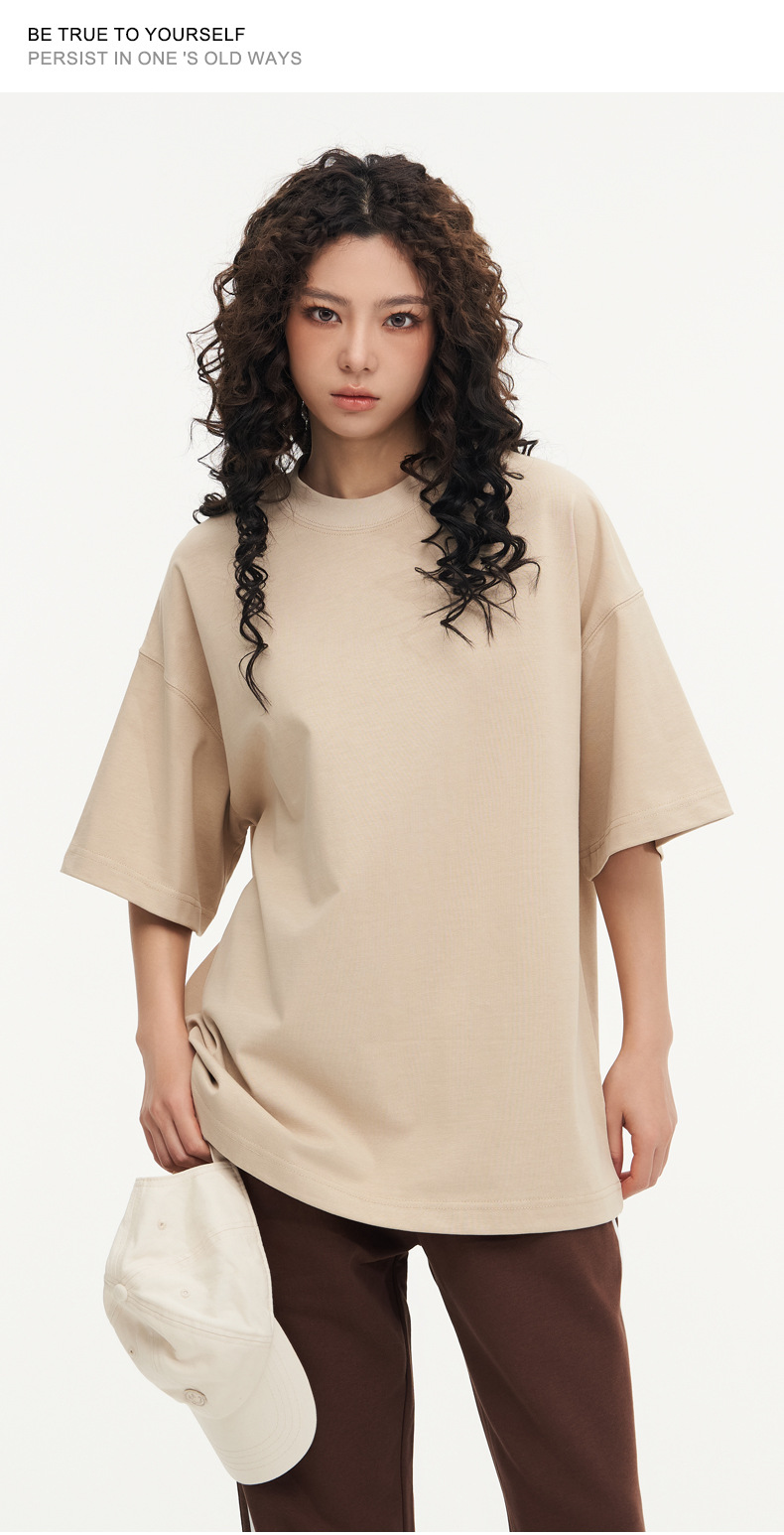 350g 무거운면 반팔 티셔츠 남성용 느슨한 단색베이스 셔츠 블랙 라운드 넥 티셔츠 화이트 탑 여성