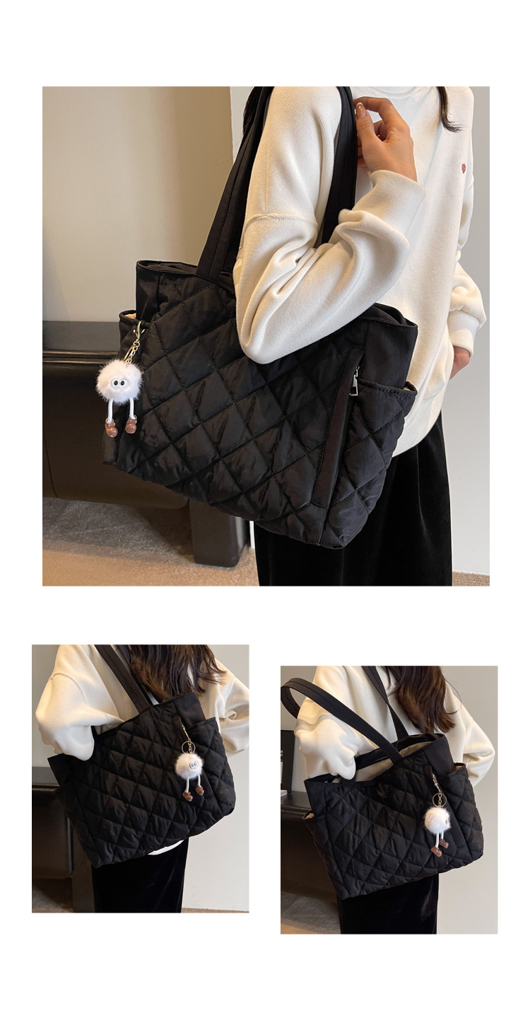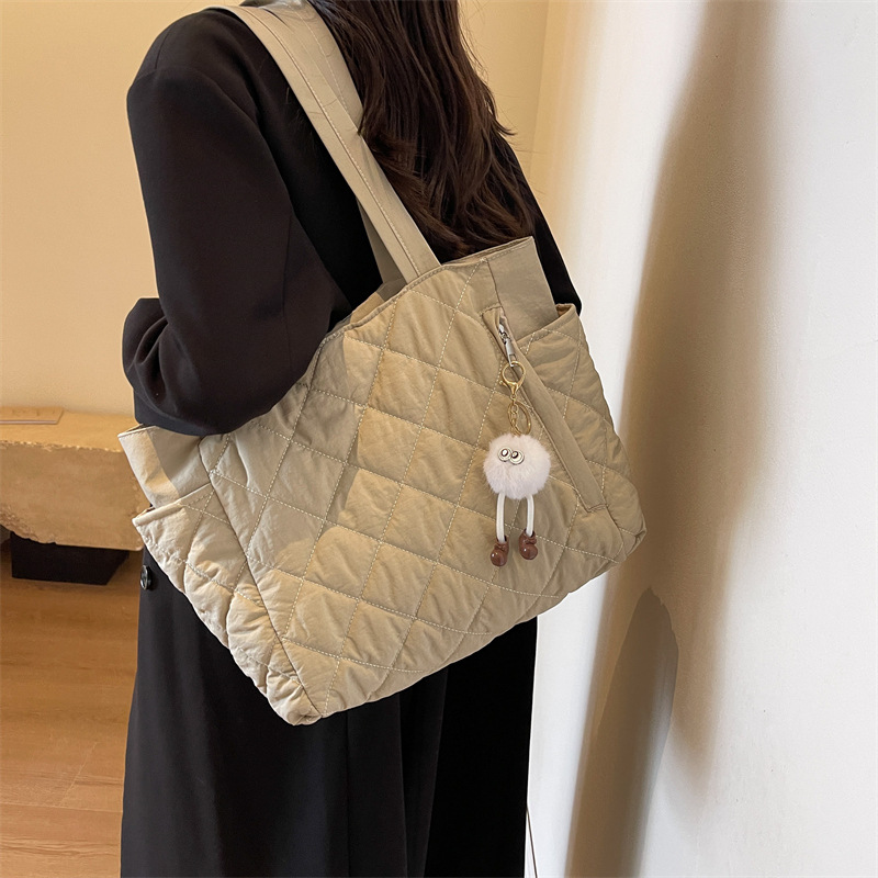 2024 신상 대용량 가방, 다이아몬드 패턴 캔버스 핸드백, 독특하고 다용도로 활용 가능한 크로스백, 출퇴근용 토트백, 숄더백