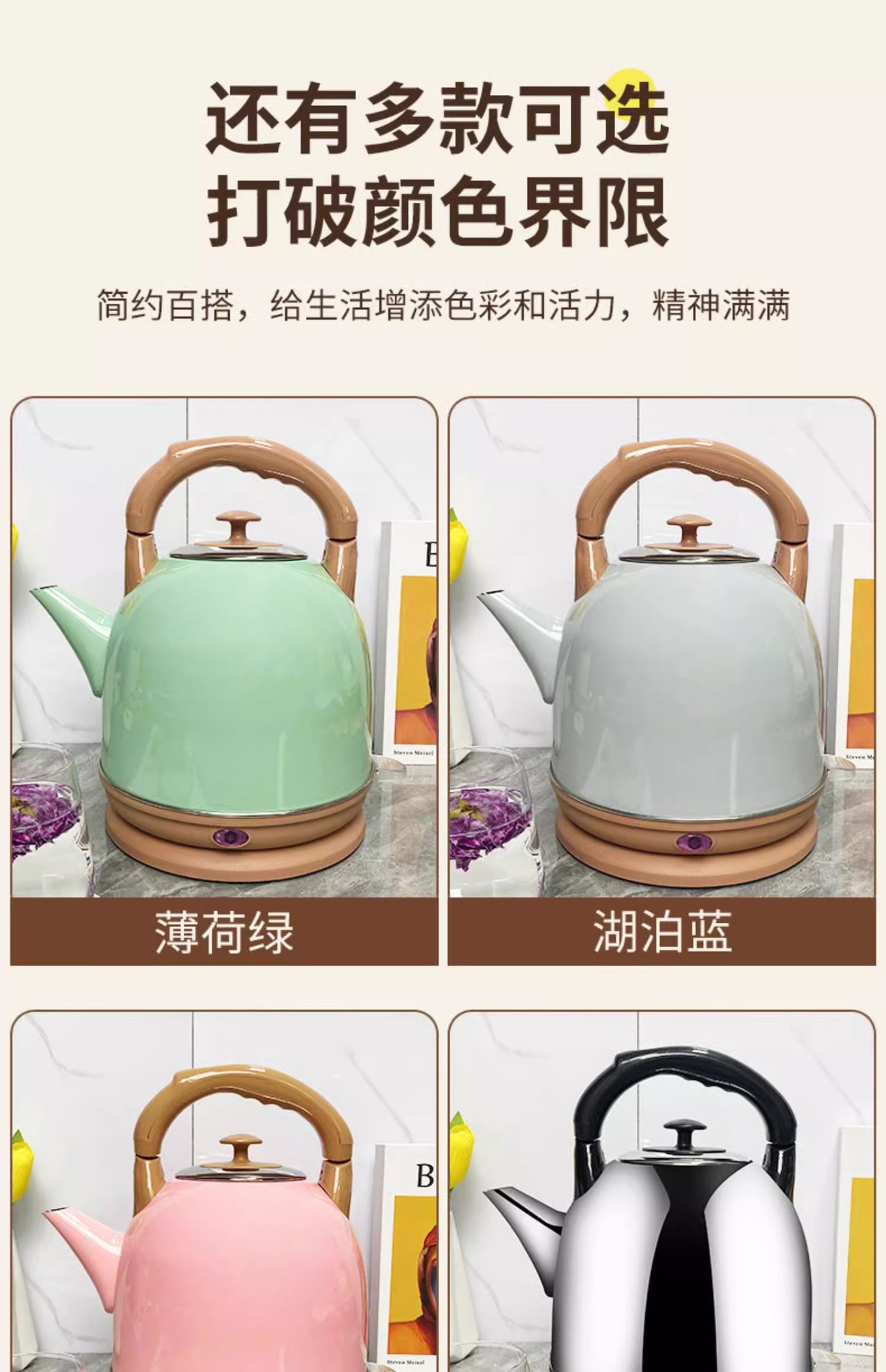 [밝은 색상] 전기 주전자 대용량 4L