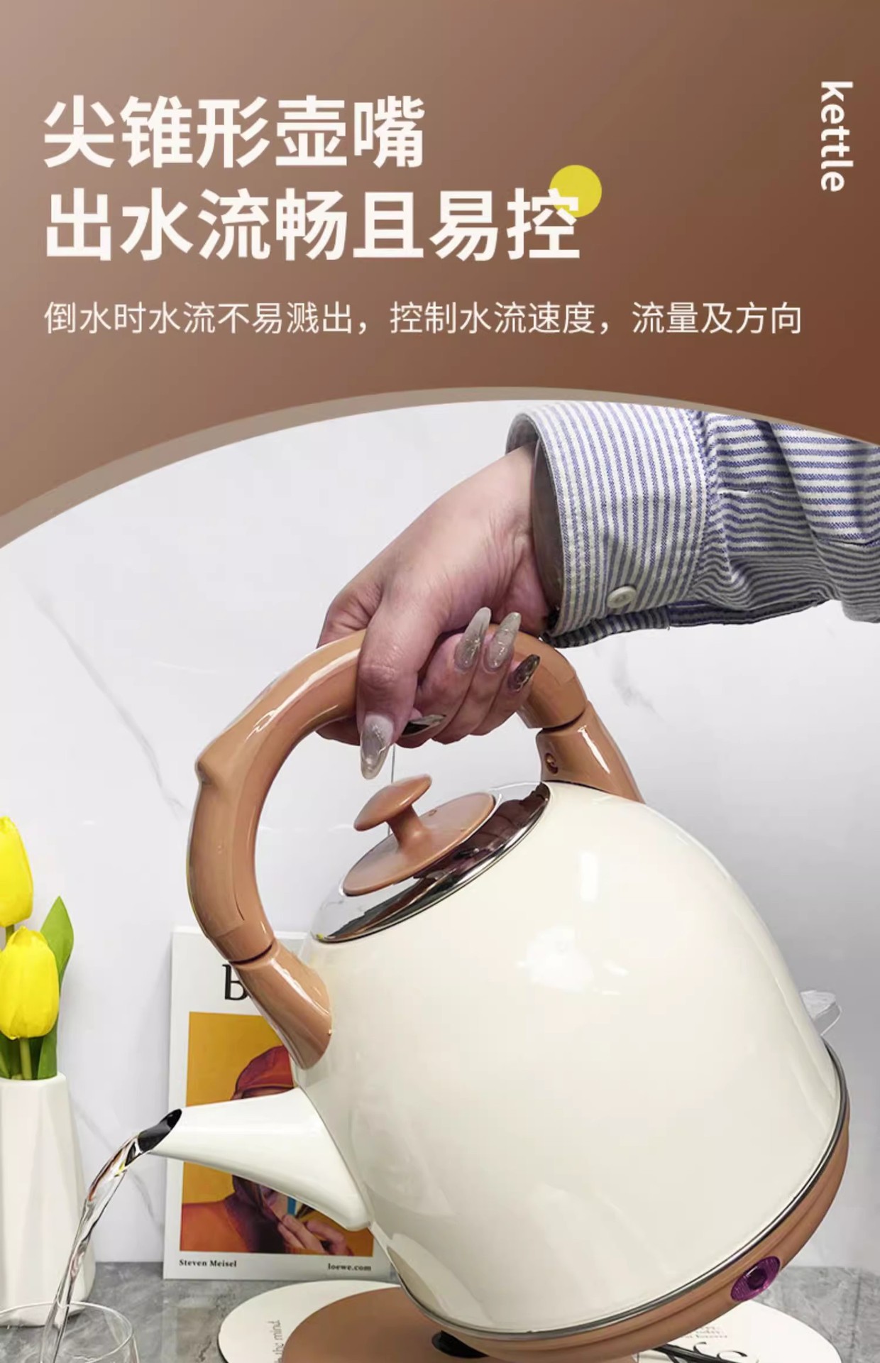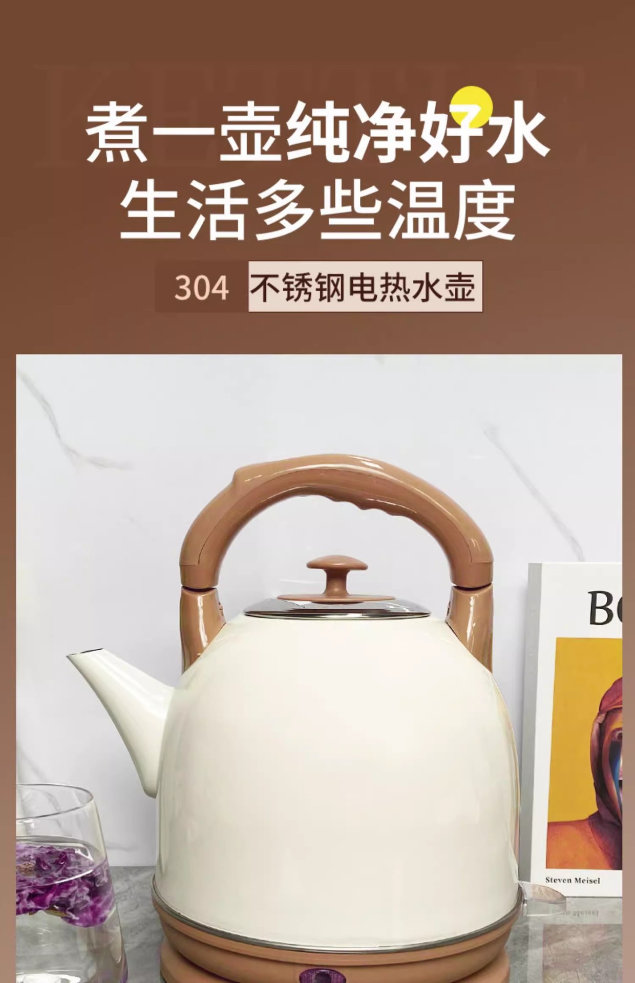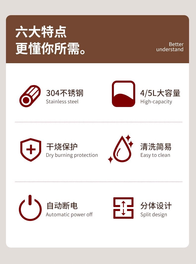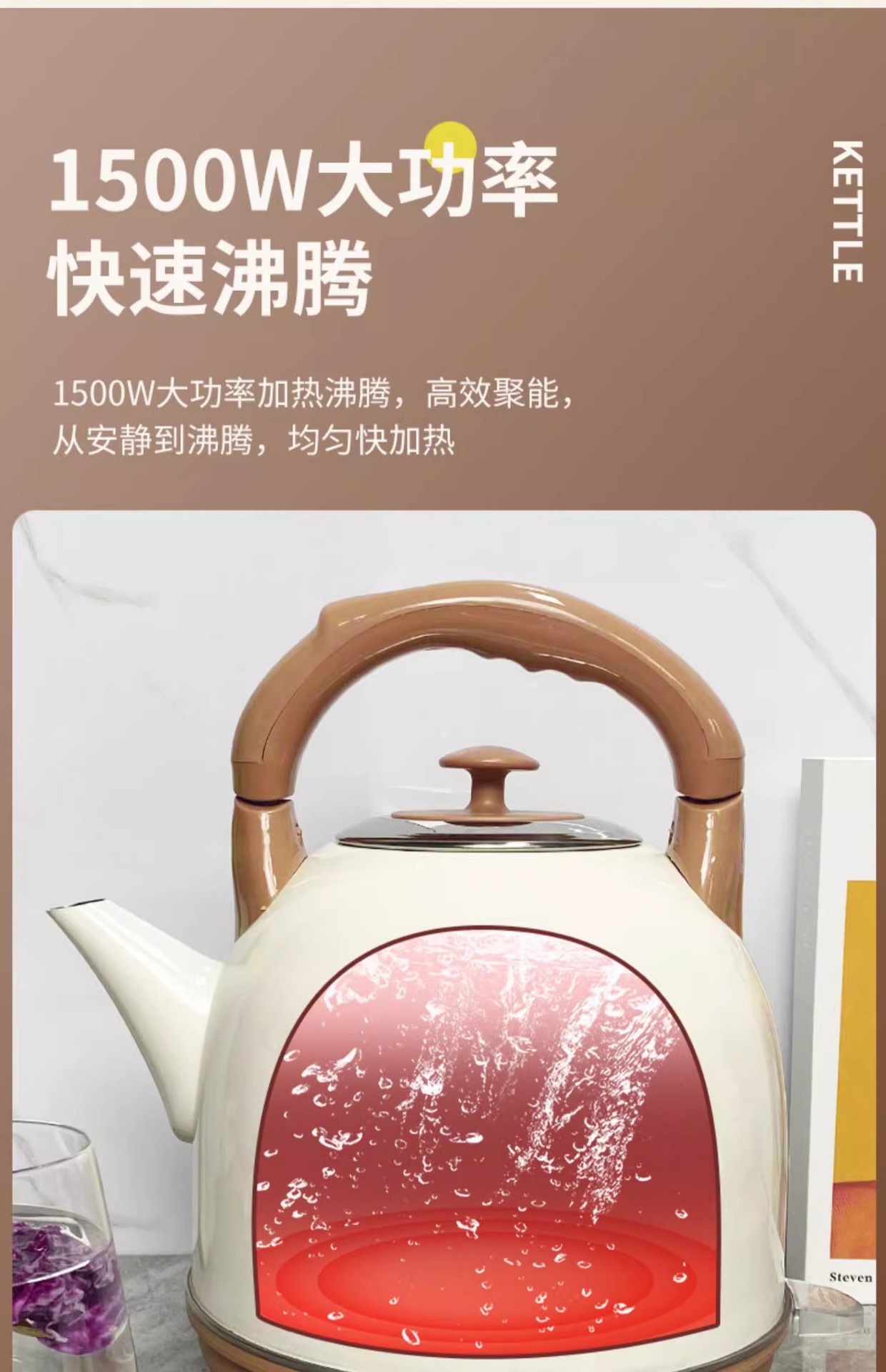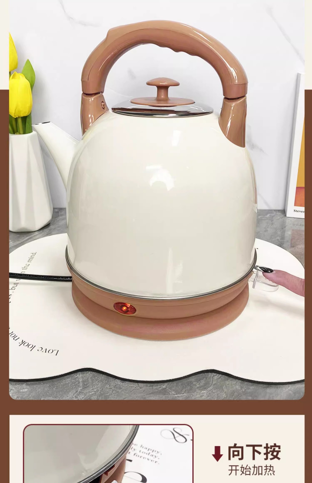 전기 주전자 가정용 304 스테인레스 스틸 전기 난방 절연 통합 주전자 자동 전원 꺼짐 대용량 주전자
