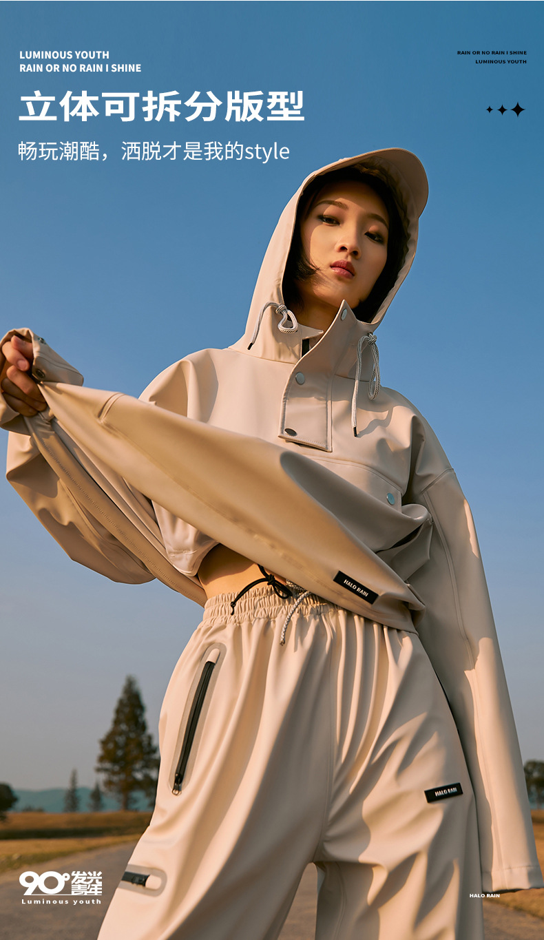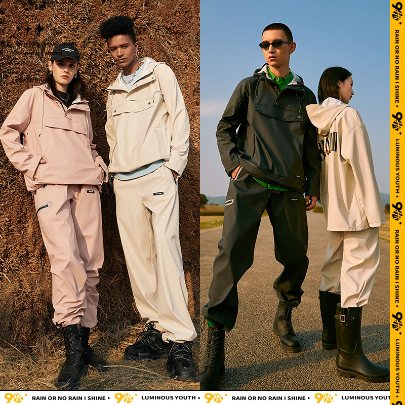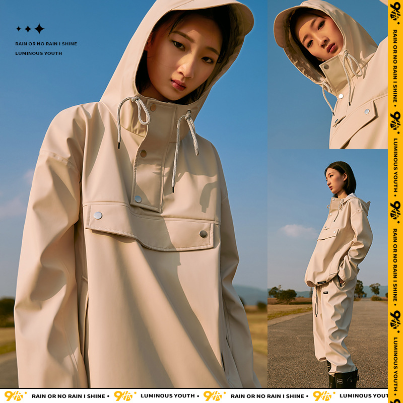비옷 세트 야외 분리형 사이클링 두꺼운 비옷 바지 남녀 공용 전신 비옷 PU 하이킹 크로스보더 패션