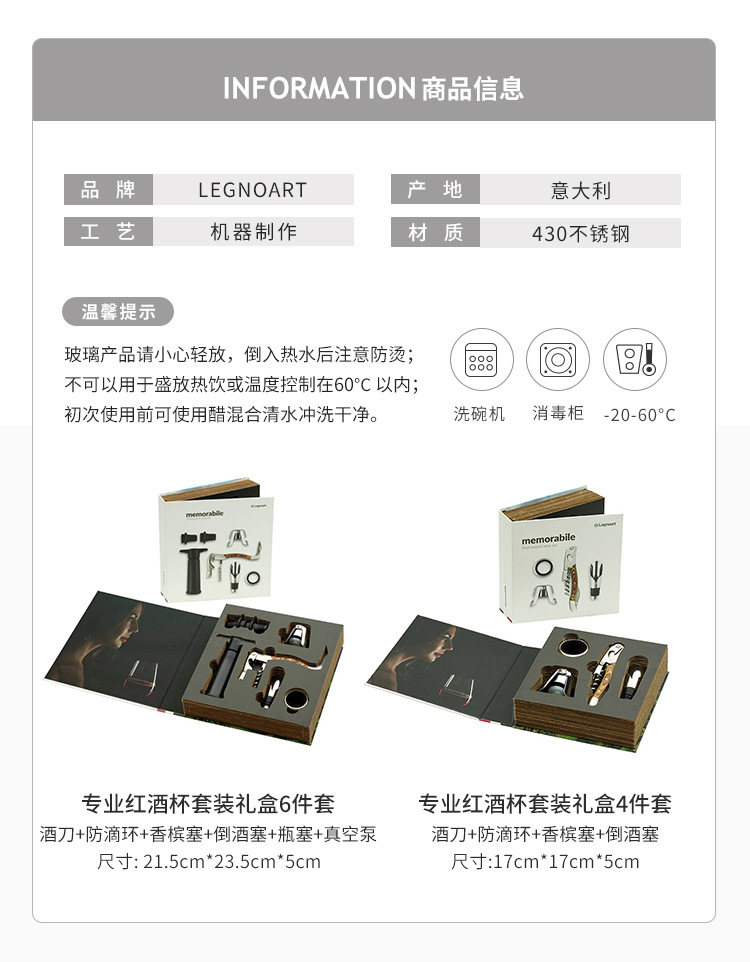 이탈리아 수입 Legnoart 스테인레스 스틸 다기능 병 오프너 와인 오프너 와인 병 오프닝 도구 세트