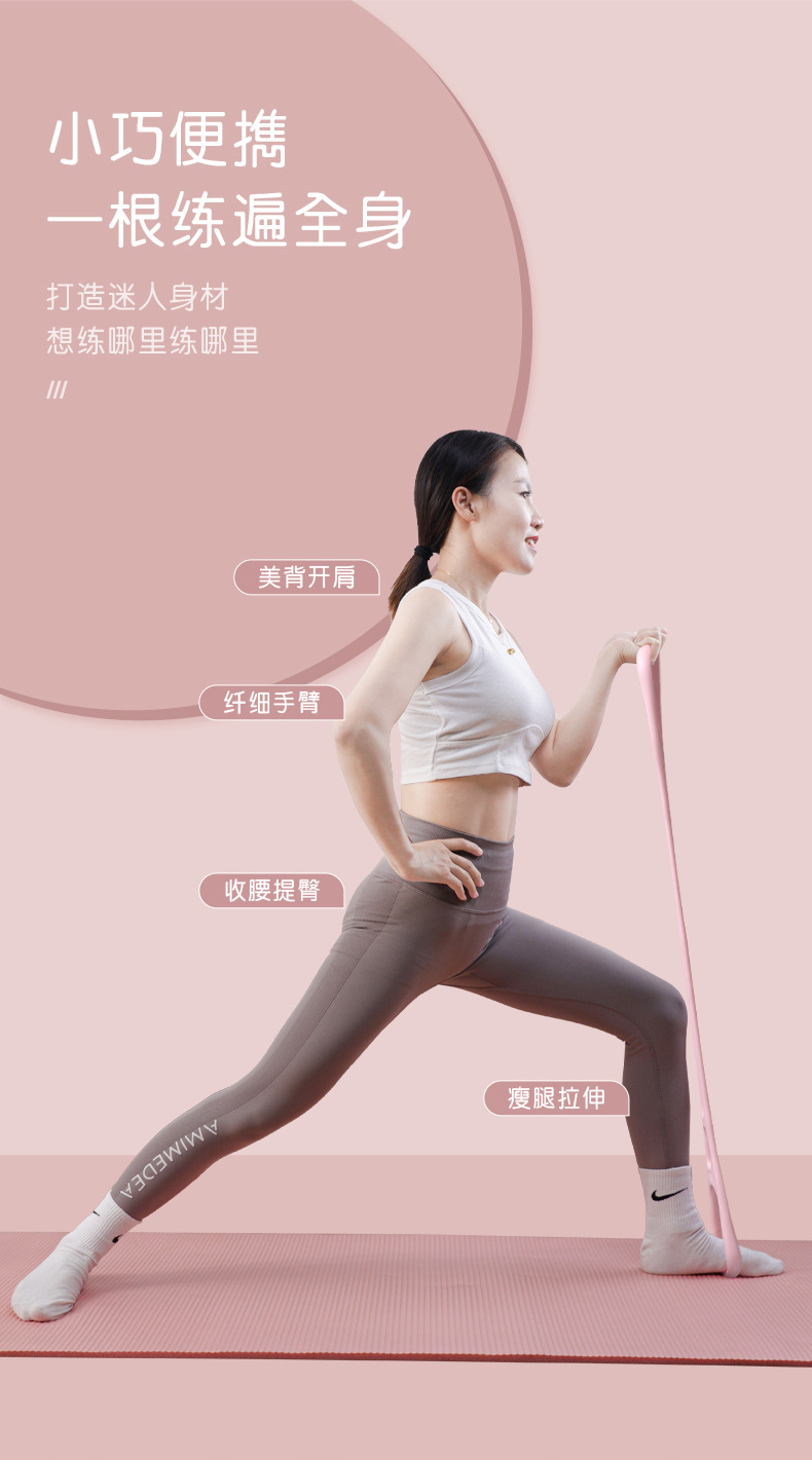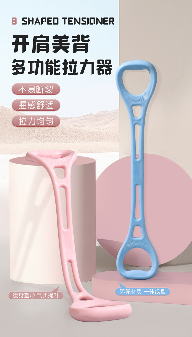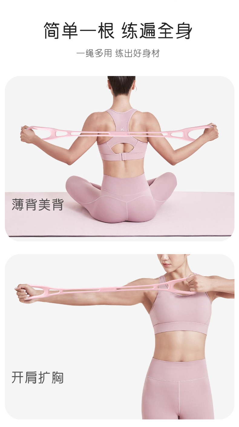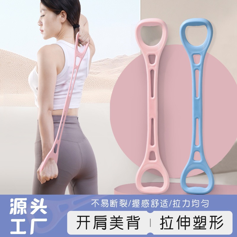 8 단어 긴장 장치 여성 오픈 백 연습 어깨 얇은 백 유물 홈 요가 스트레치 벨트 다시 실리콘 두꺼운 탄성 로프