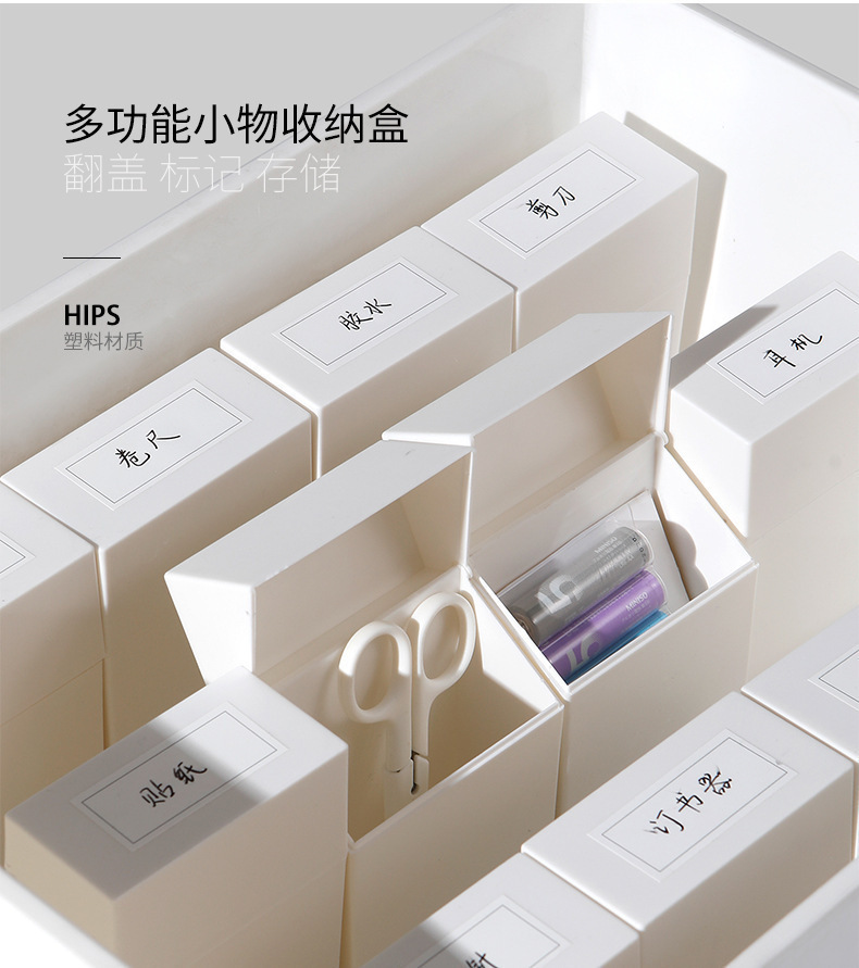 새로운 일본식 플립 커버 라벨 스토리지 박스 다기능 소형 오브젝트 분류 스토리지 박스 오픈 뚜껑 스토리지 주최자