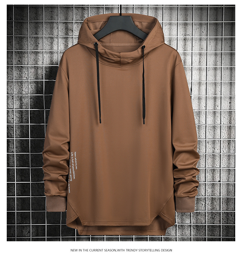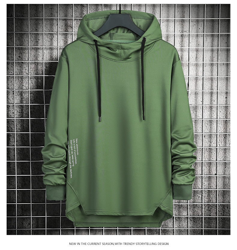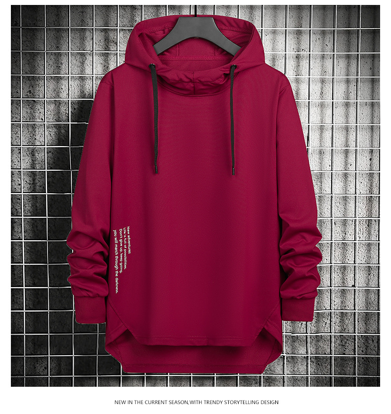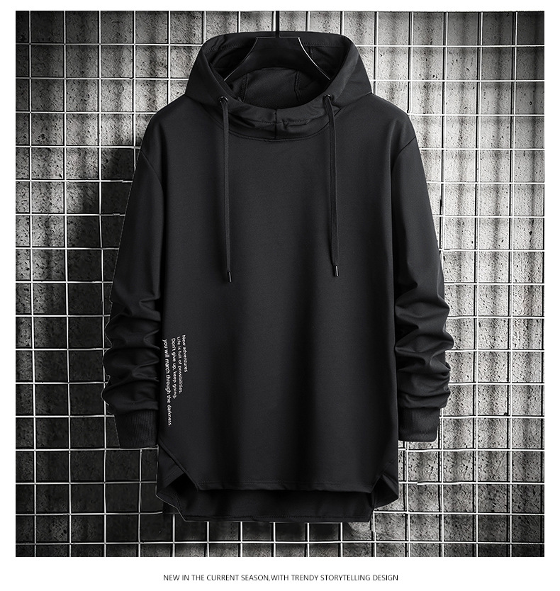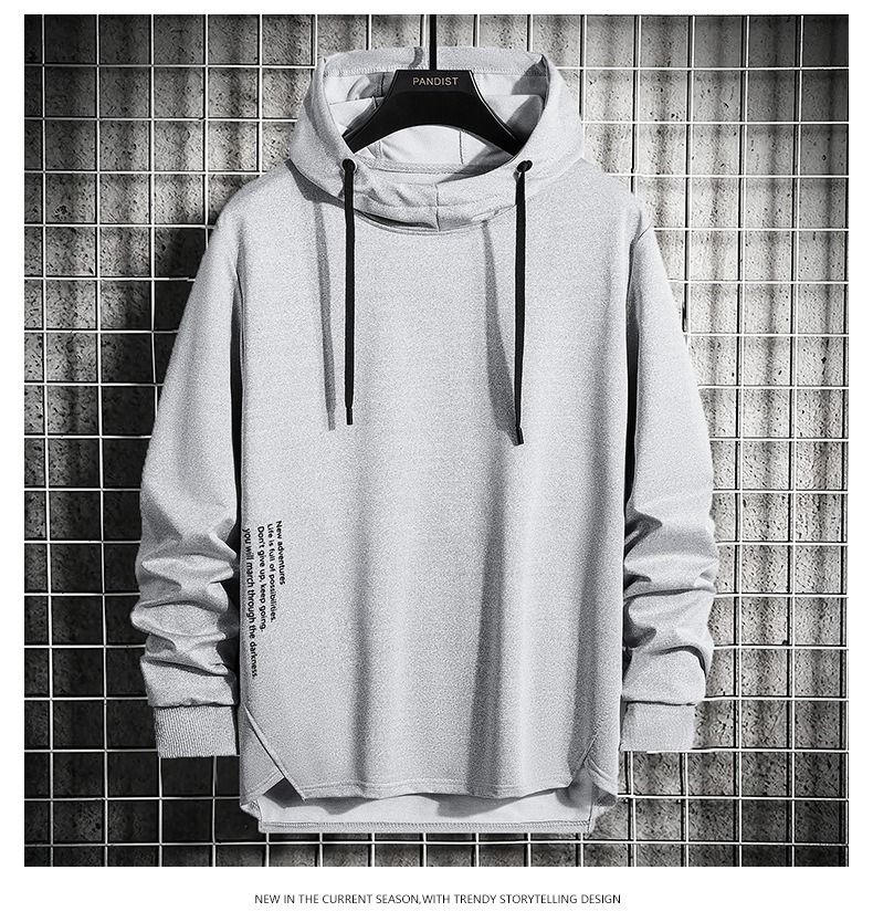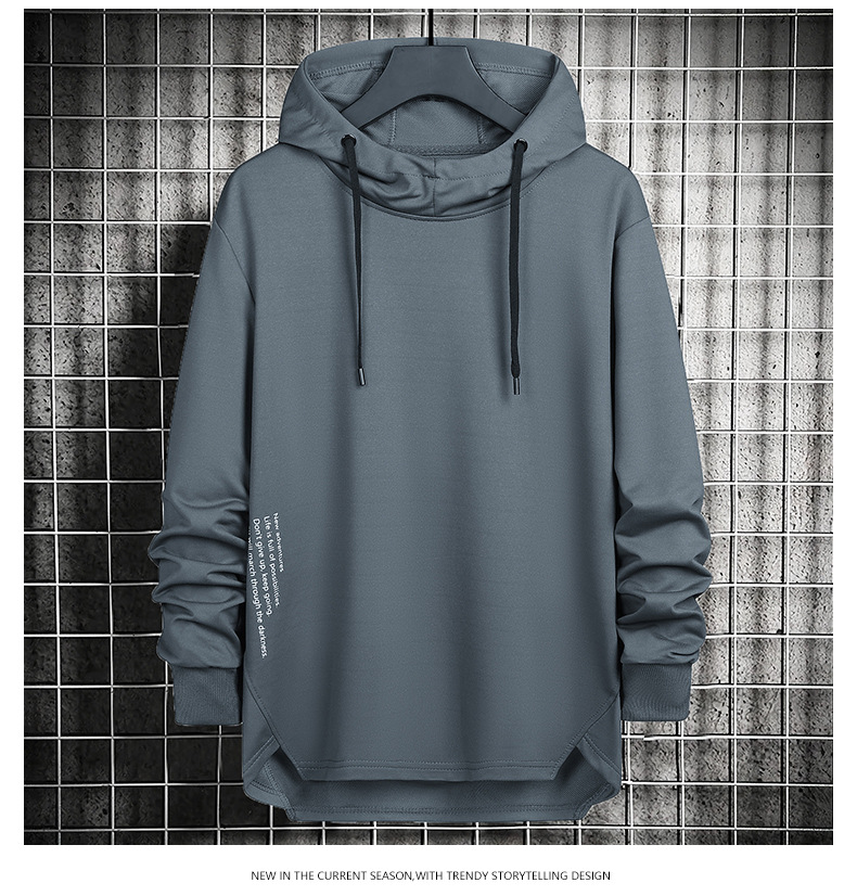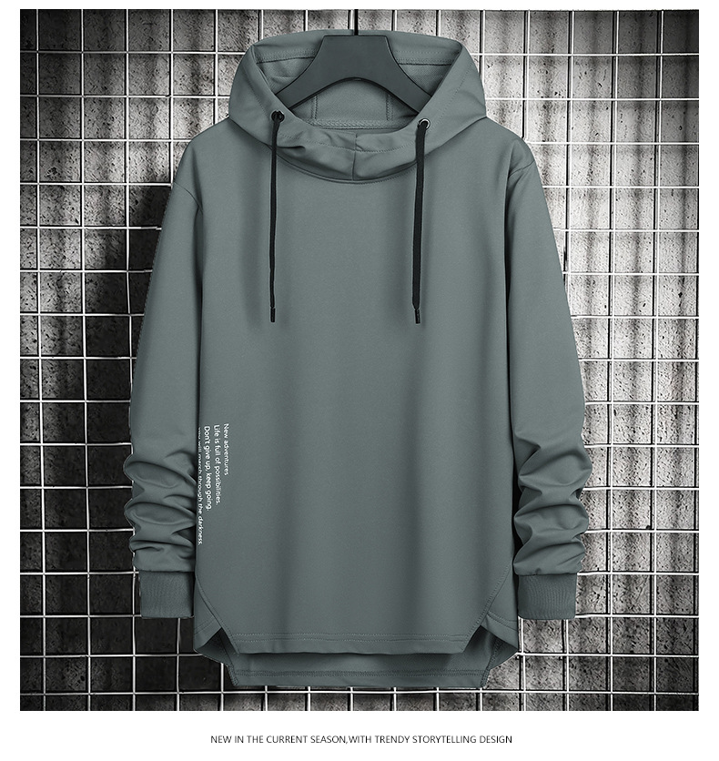 봄과 가을 남자 세련된 한국 스타일 세련된 느슨한 간단한 단색 캐주얼 스포츠 긴 소매 플러스 사이즈 후드 남성 스웨터