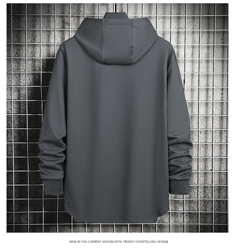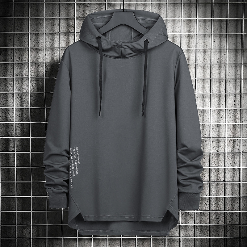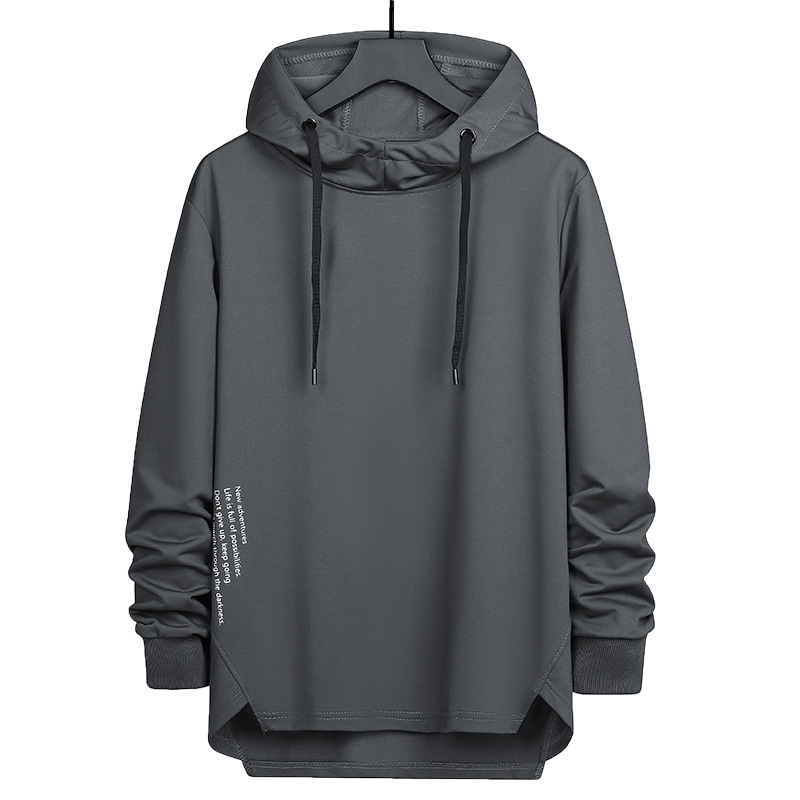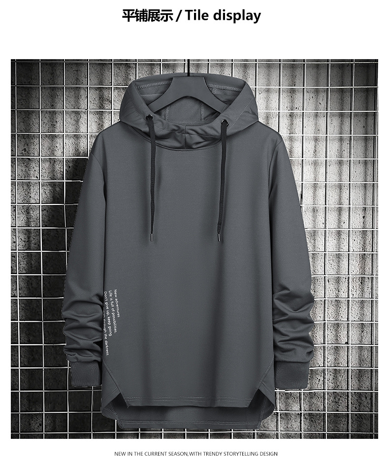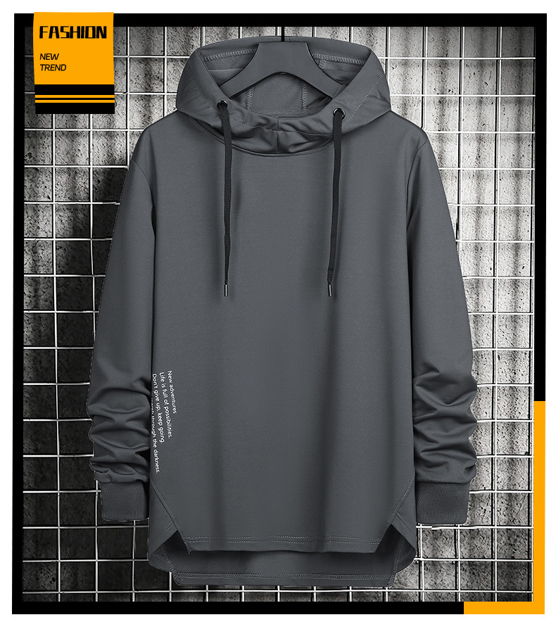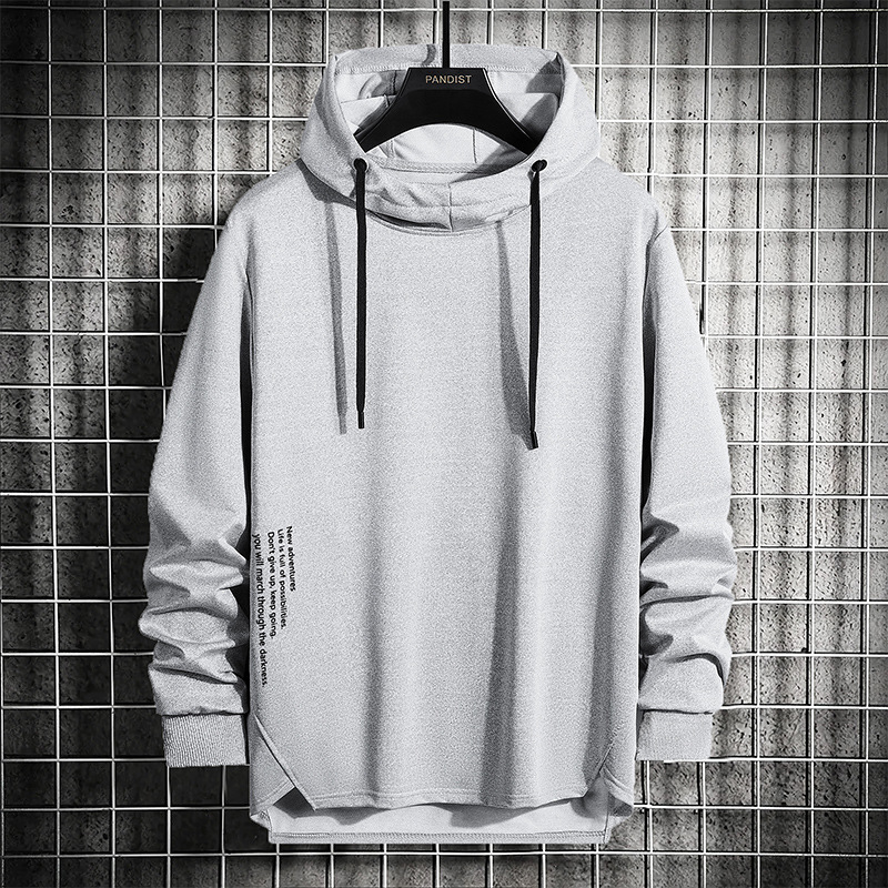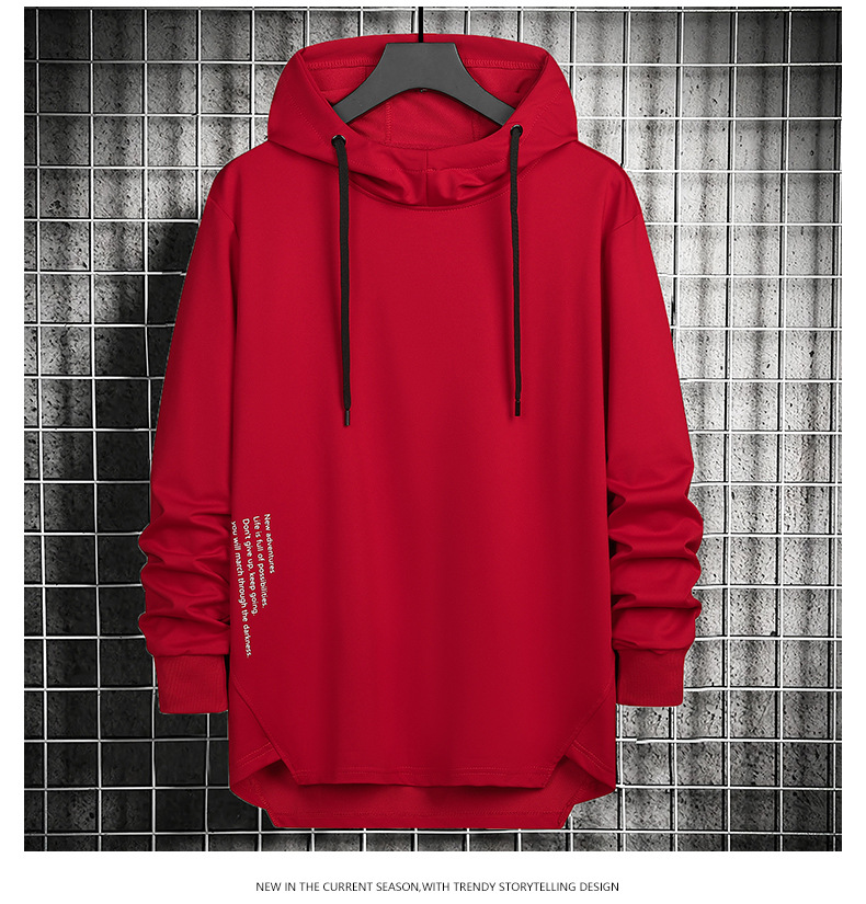 봄과 가을 남자 세련된 한국 스타일 세련된 느슨한 간단한 단색 캐주얼 스포츠 긴 소매 플러스 사이즈 후드 남성 스웨터