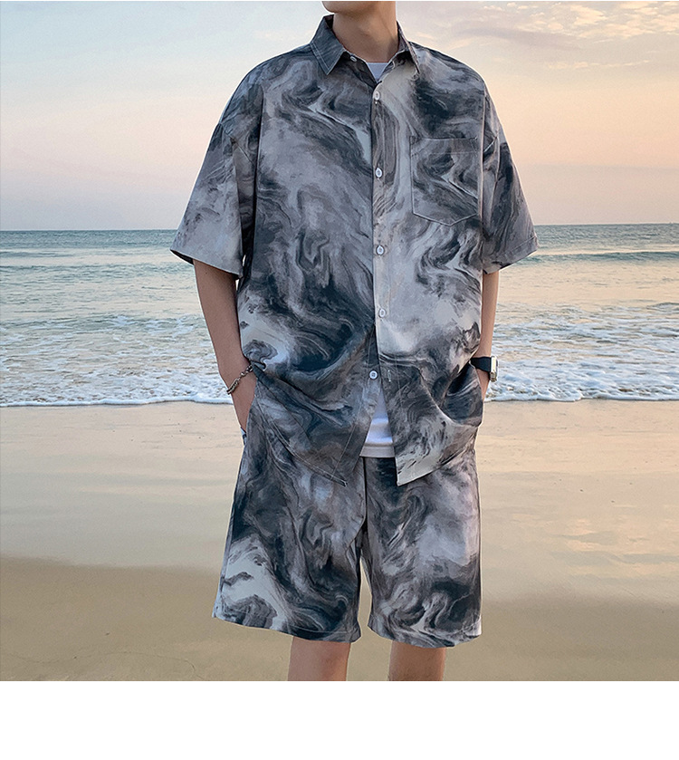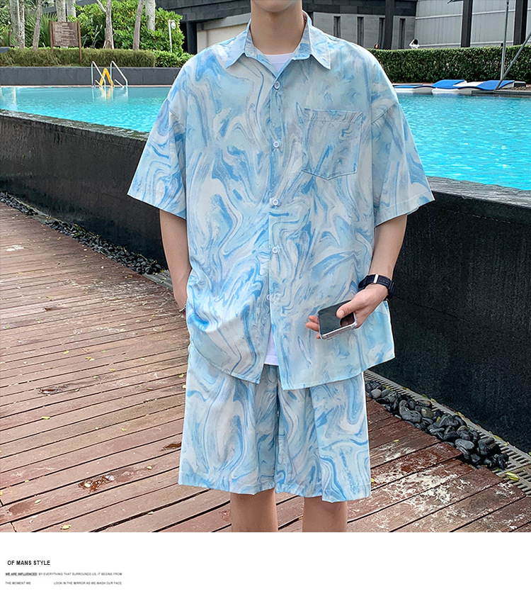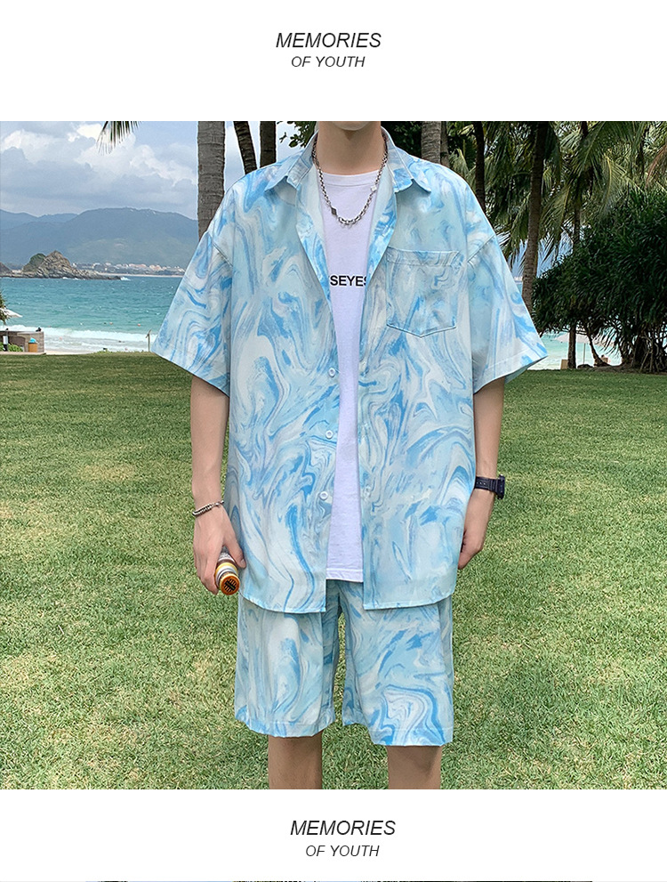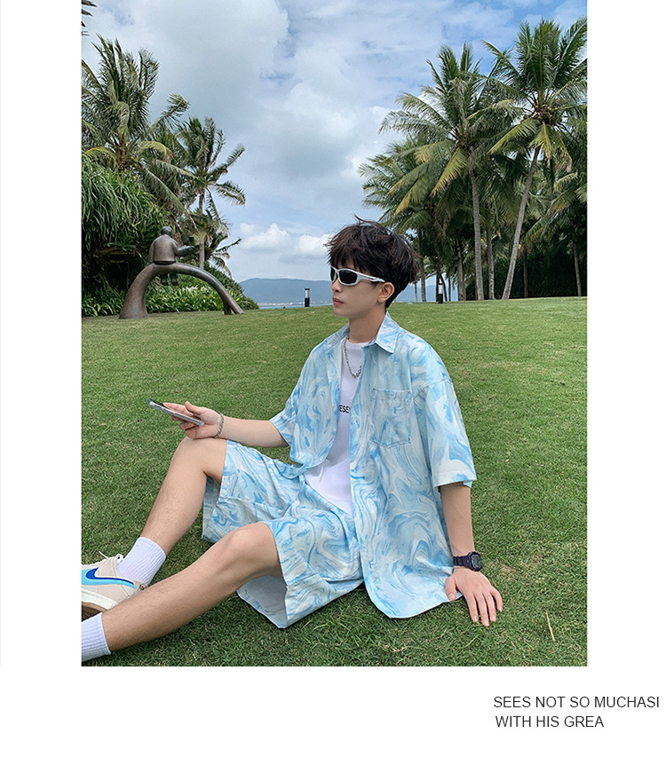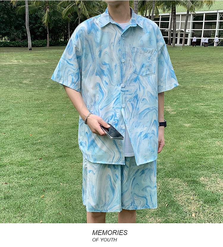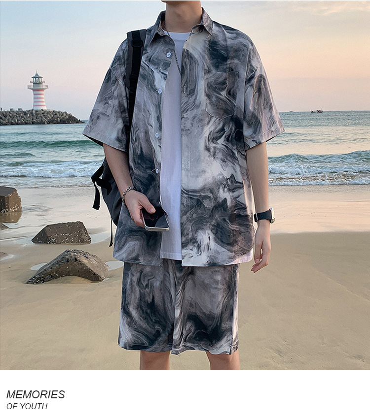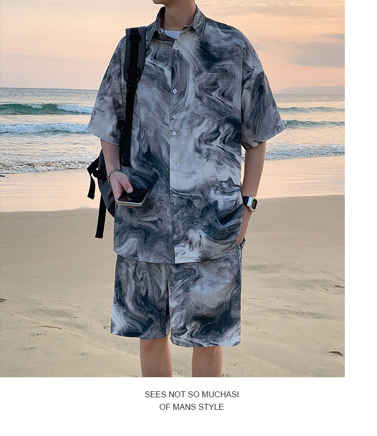 2024 여름 새로운 남성과 여성의 해변 시원한 반팔 셔츠 플러스 사이즈 세트 비치 바지 캐주얼 패션 유행 남성