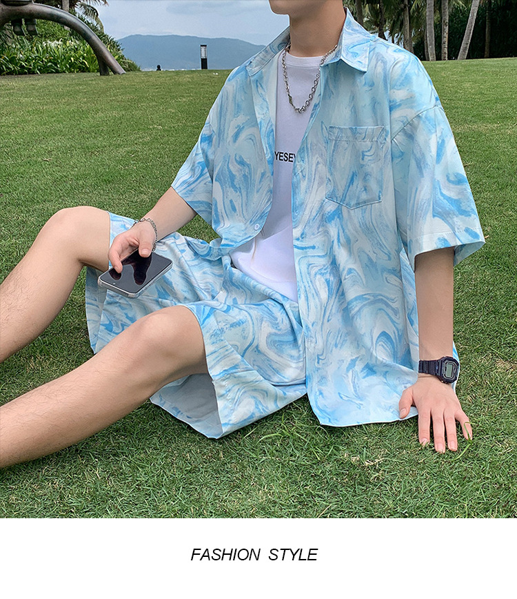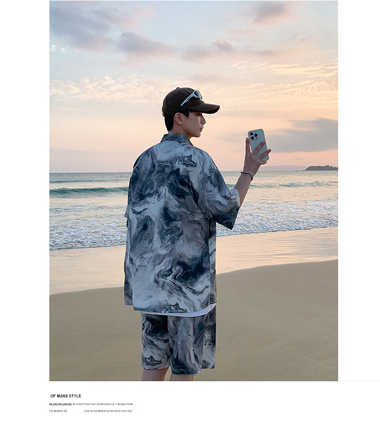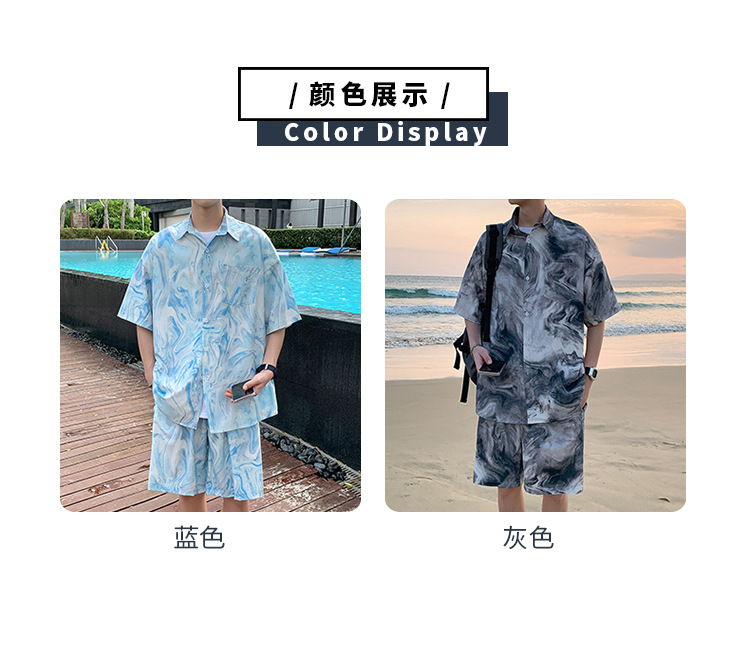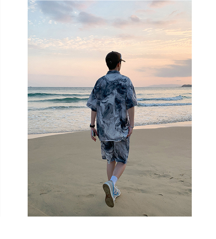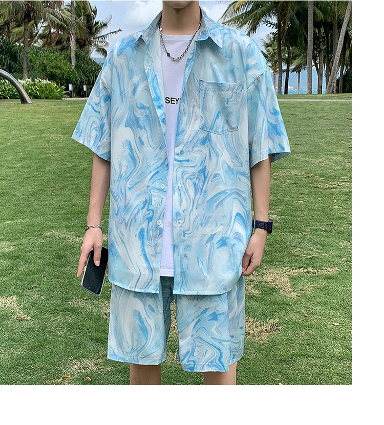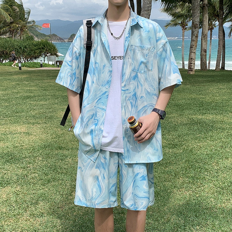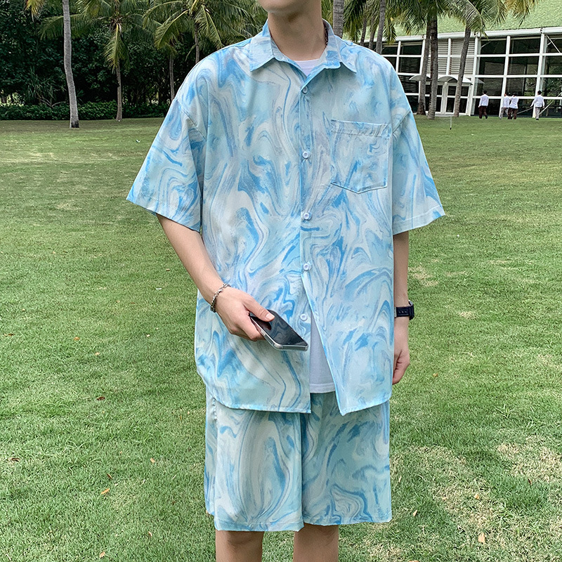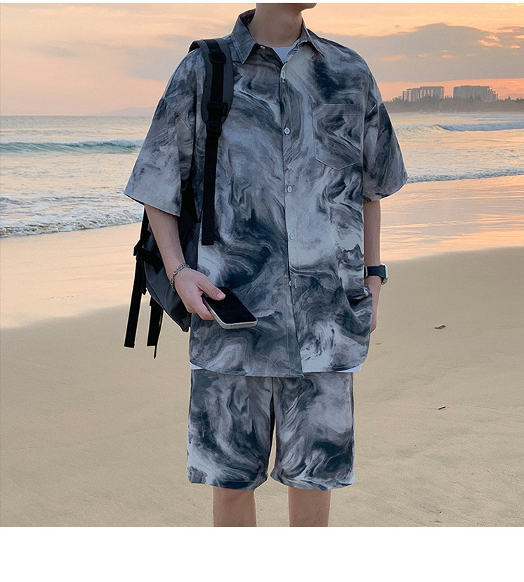 2024 여름 새로운 남성과 여성의 해변 시원한 반팔 셔츠 플러스 사이즈 세트 비치 바지 캐주얼 패션 유행 남성