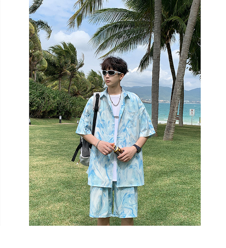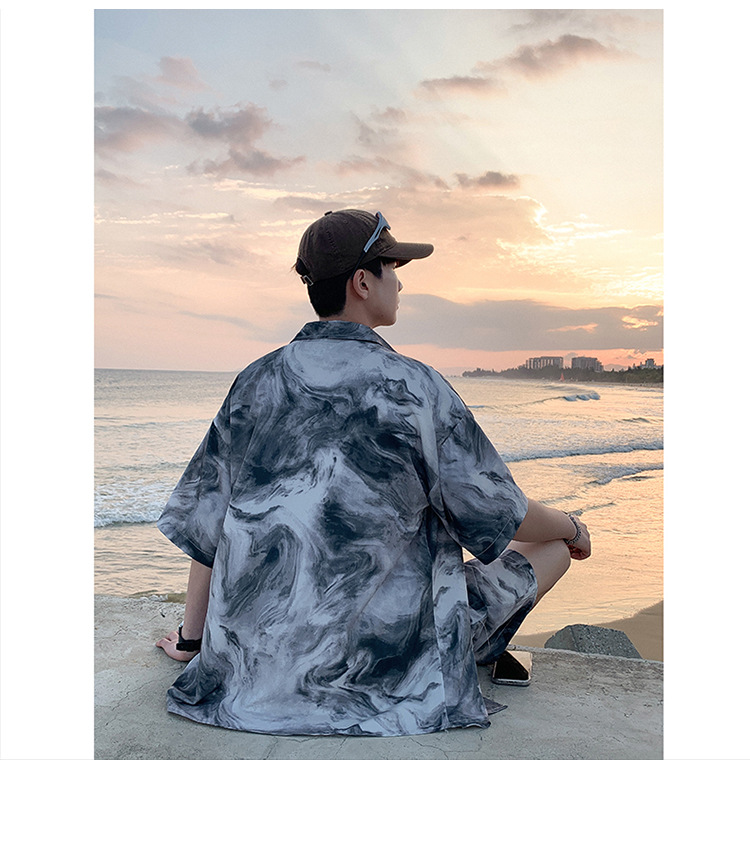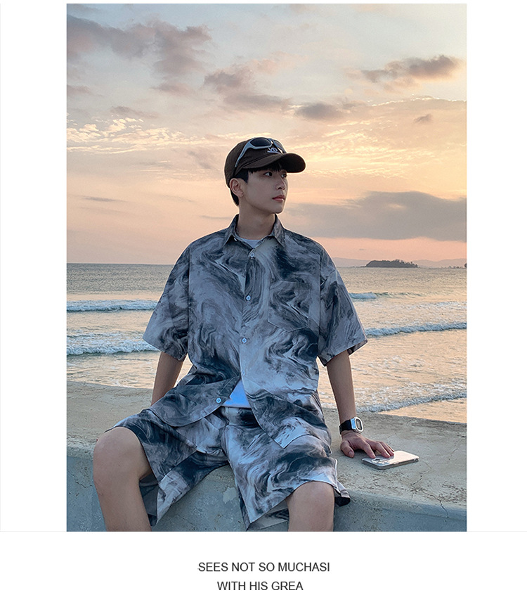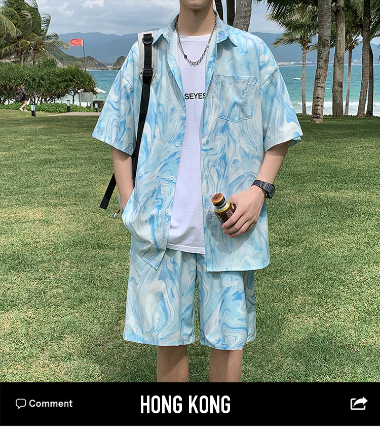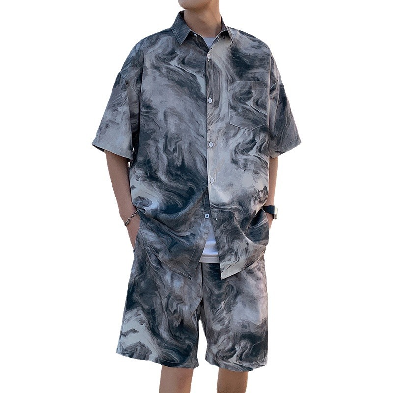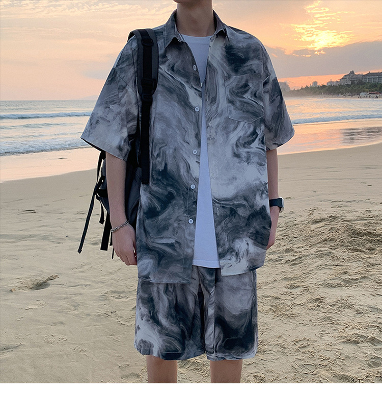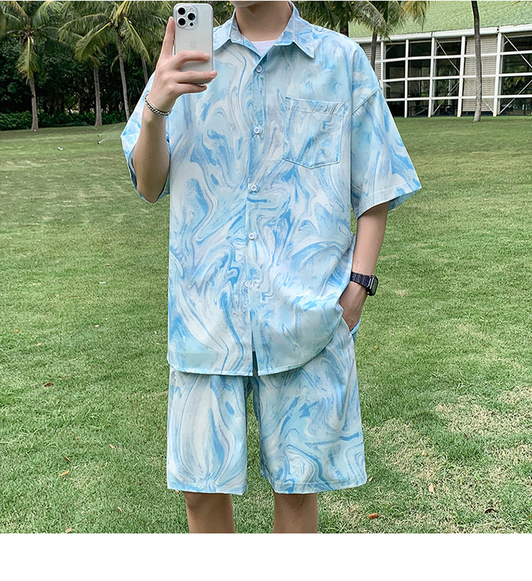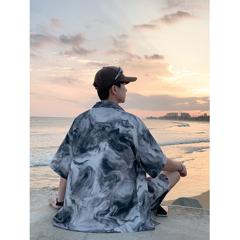 2024 여름 새로운 남성과 여성의 해변 시원한 반팔 셔츠 플러스 사이즈 세트 비치 바지 캐주얼 패션 유행 남성
