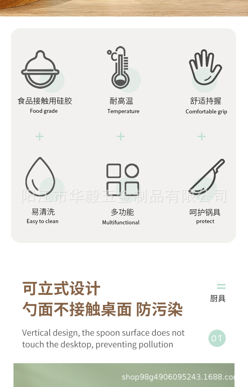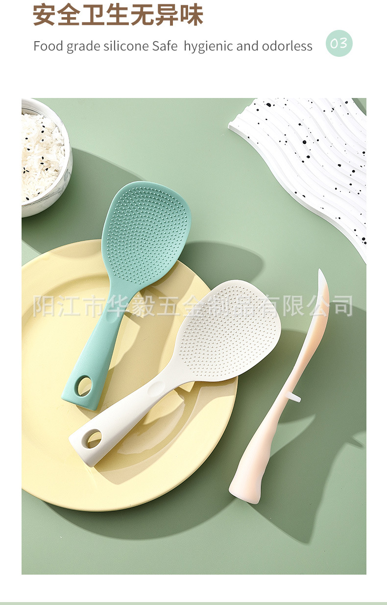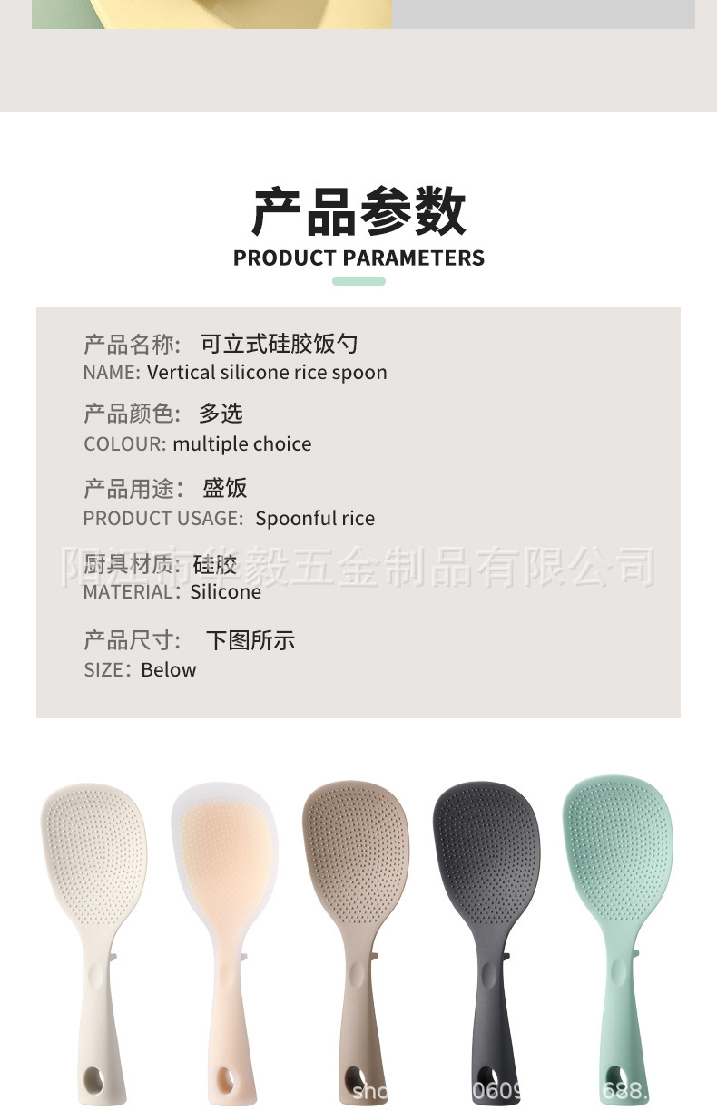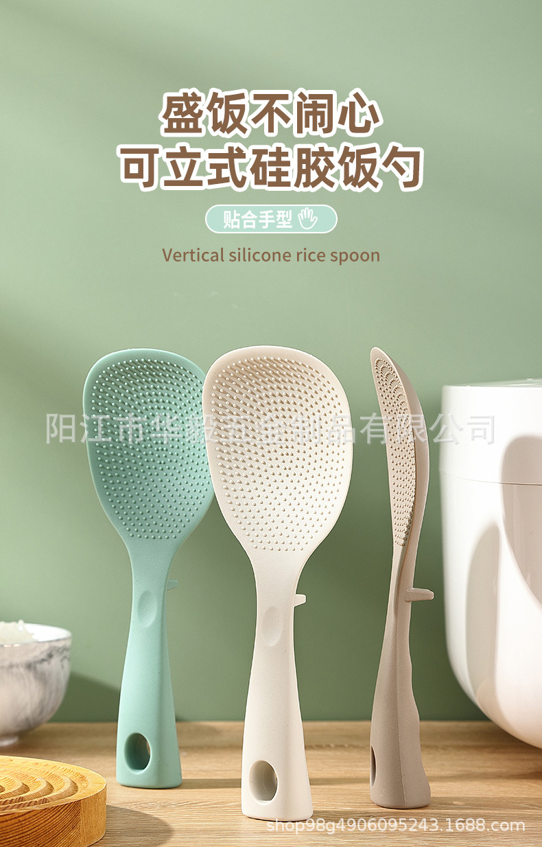 새로운 스탠드형 실리콘 밥숟가락, 식품등급 붙지 않는 긴 손잡이 실리콘 밥숟가락, 고온 방지 및 화상 방지 밥숟가락