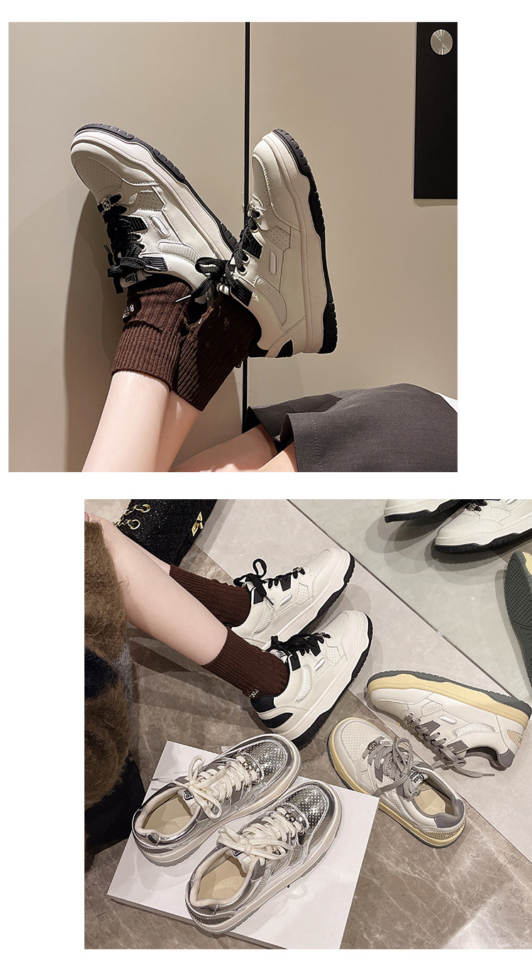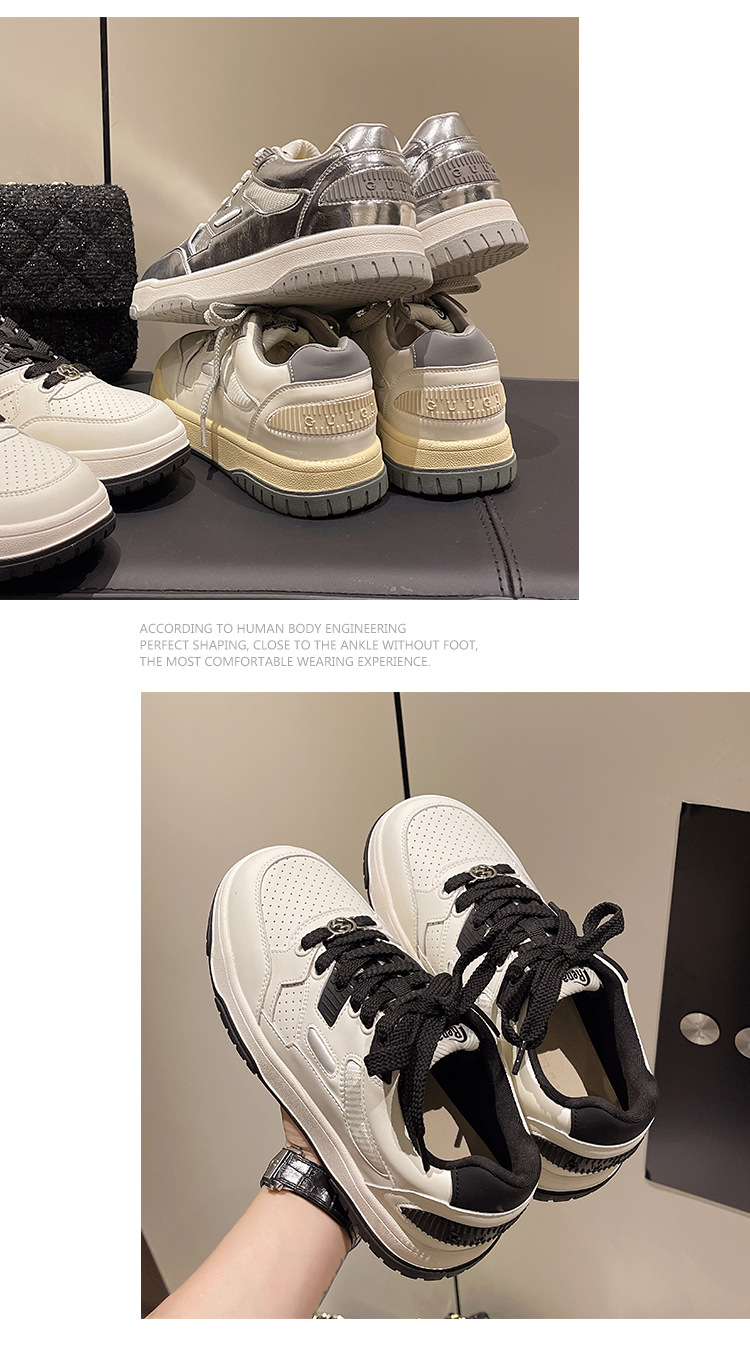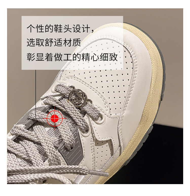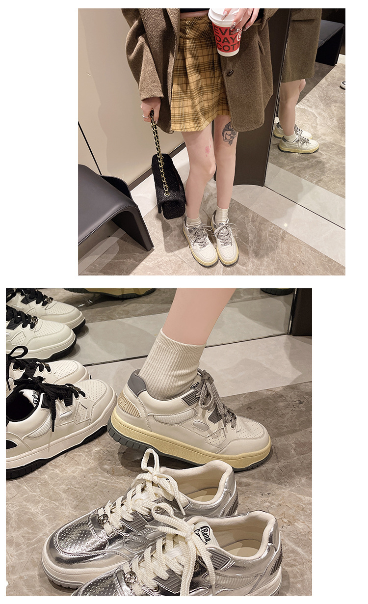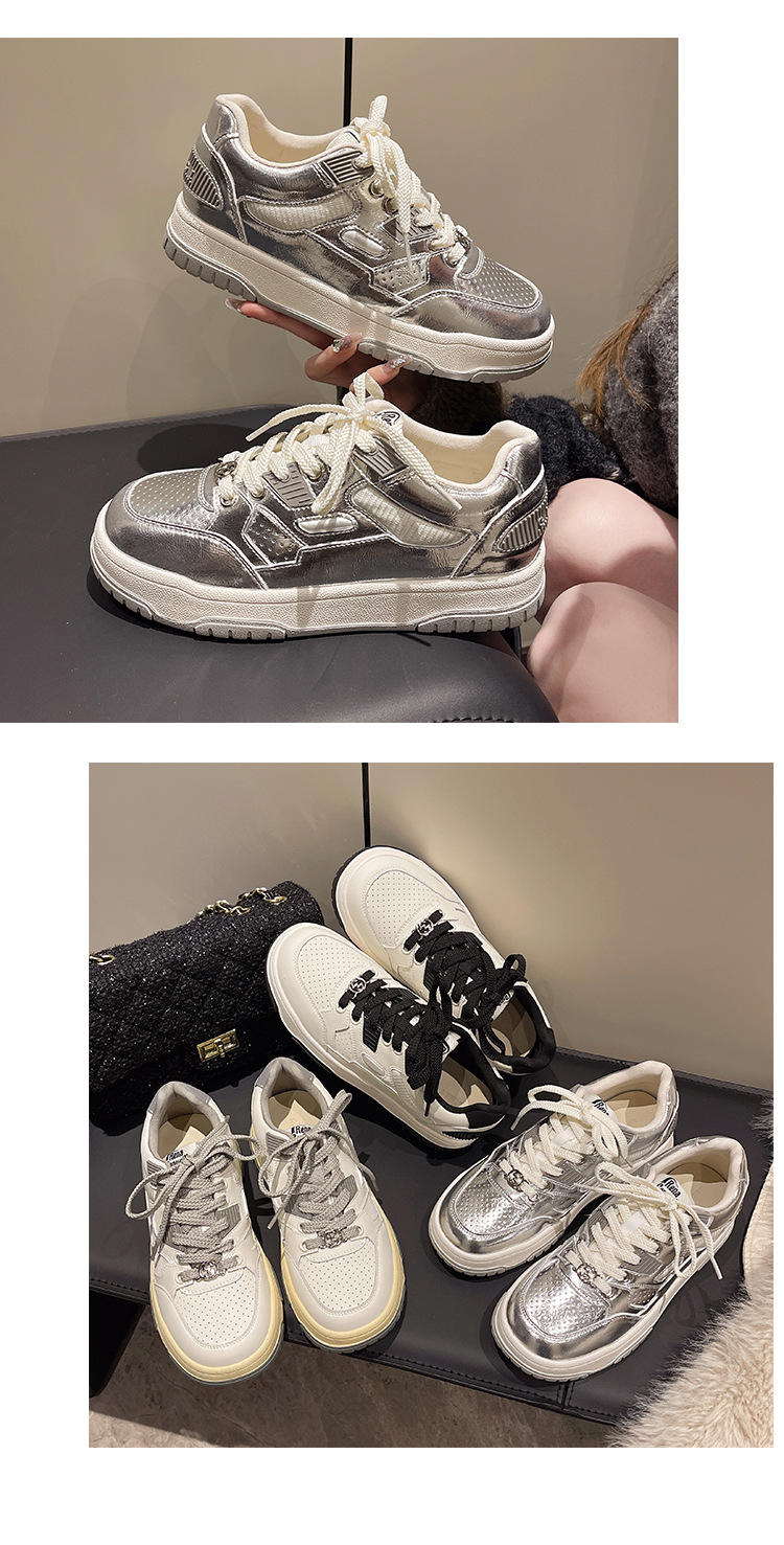 여성용 실버 스포츠 화이트 슈즈 2024 봄 신상품 다용도 소프트솔 캐주얼 슈즈 플랫솔 레이스업 통기성 운동화 가볍고 편안함