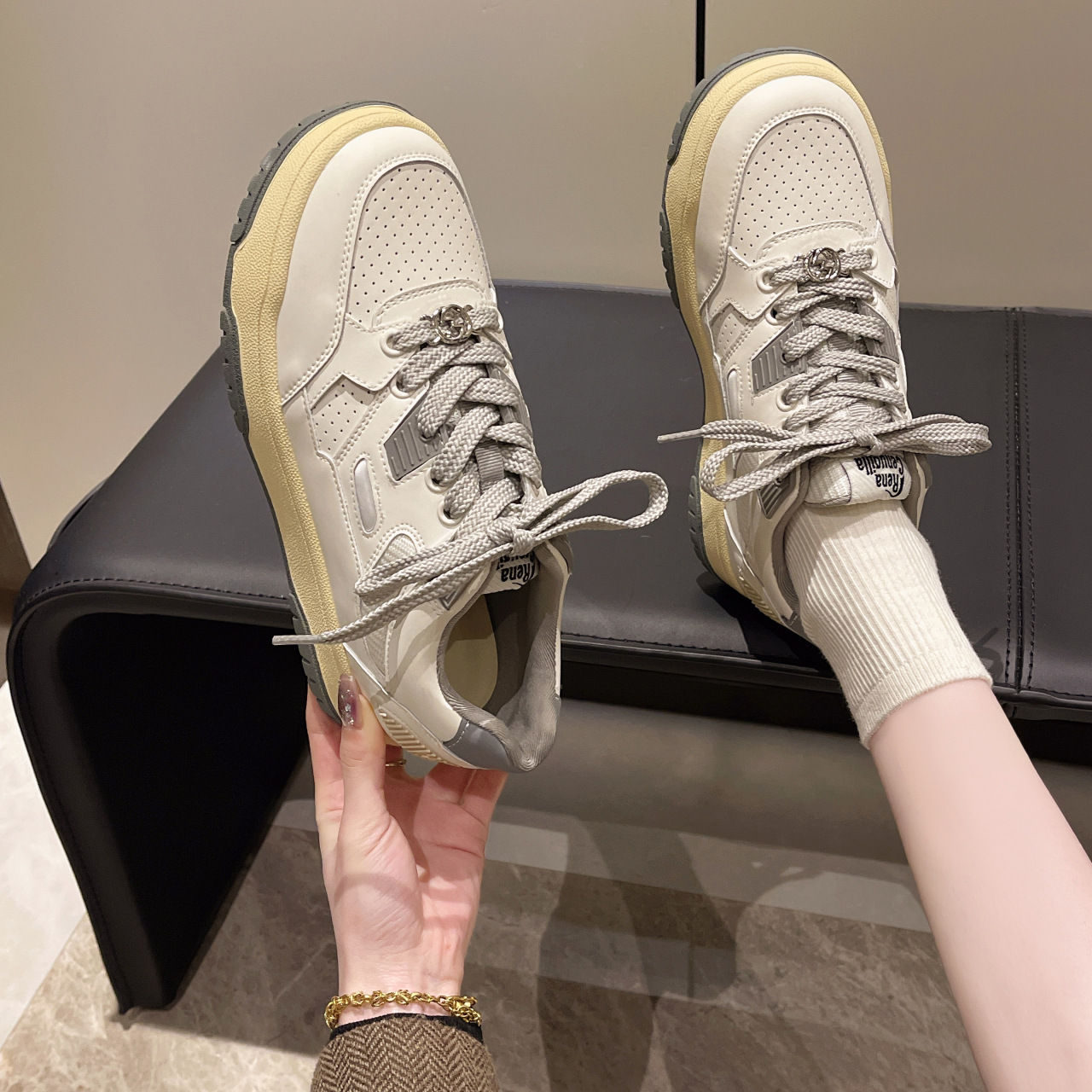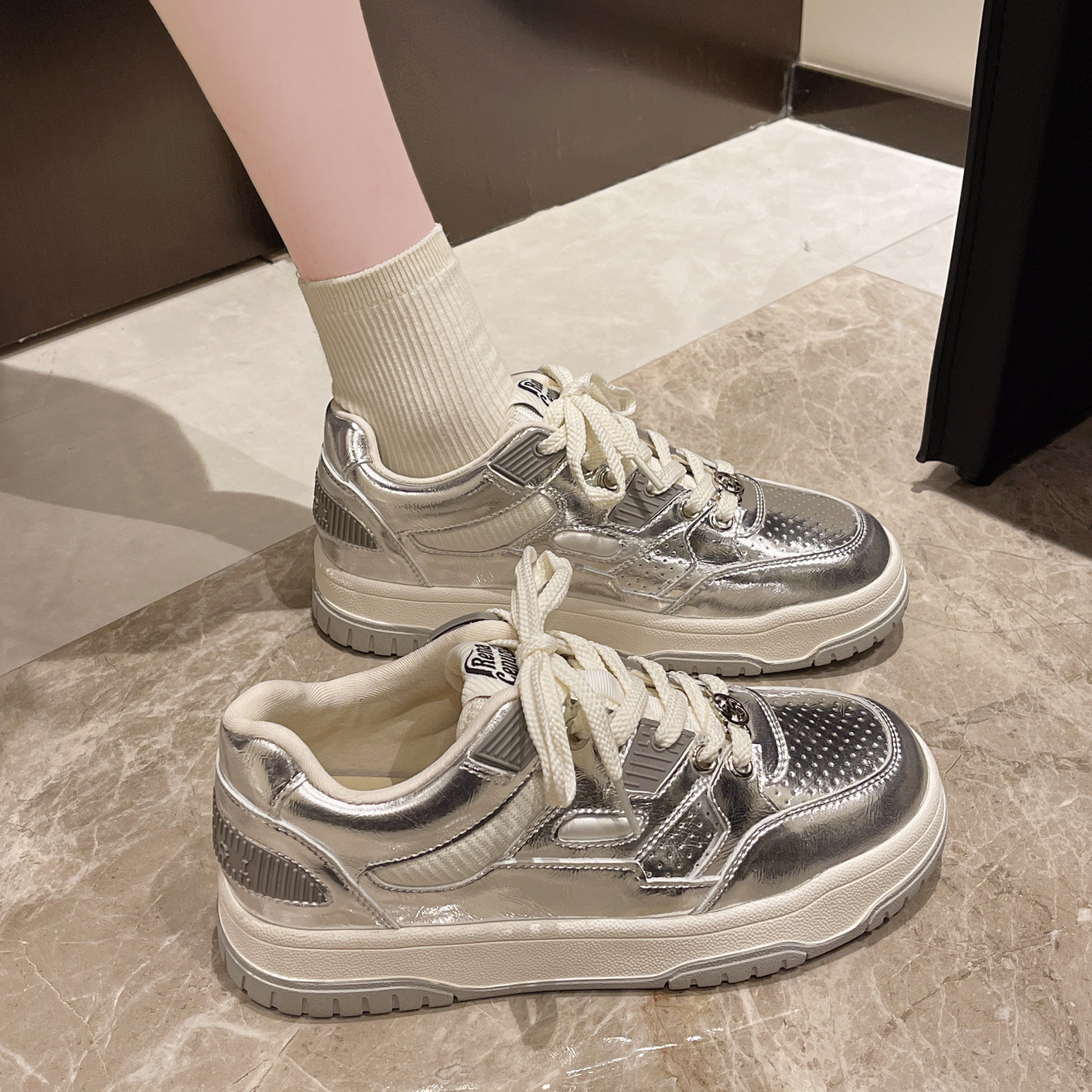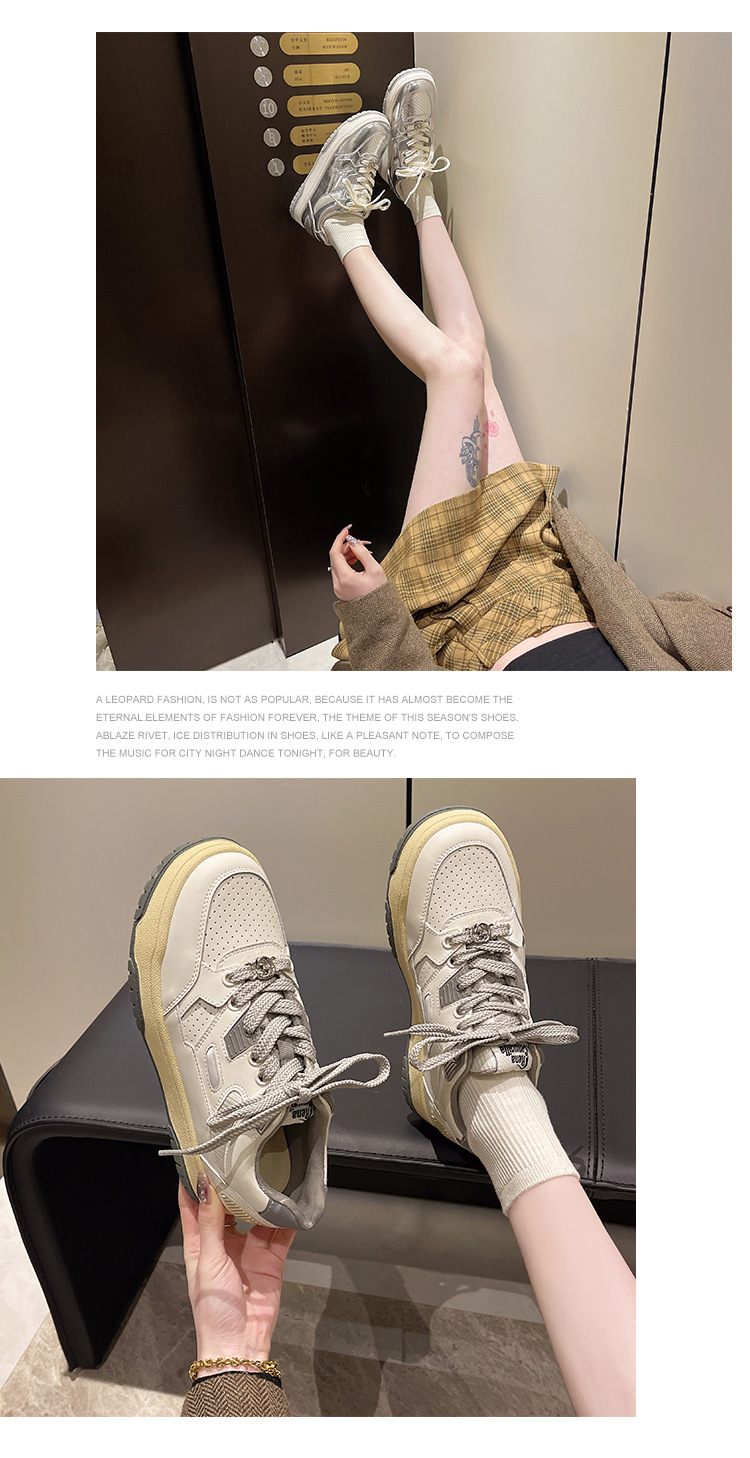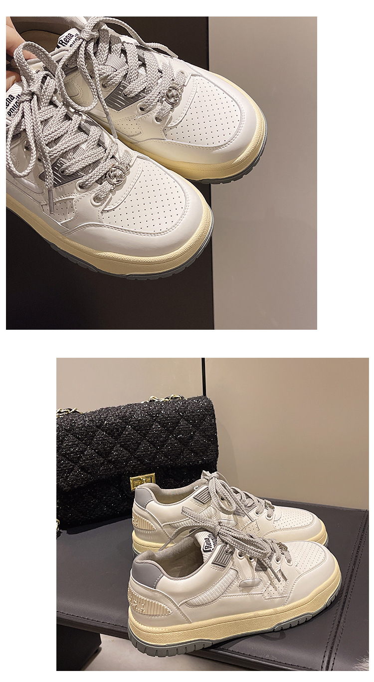 여성용 실버 스포츠 화이트 슈즈 2024 봄 신상품 다용도 소프트솔 캐주얼 슈즈 플랫솔 레이스업 통기성 운동화 가볍고 편안함