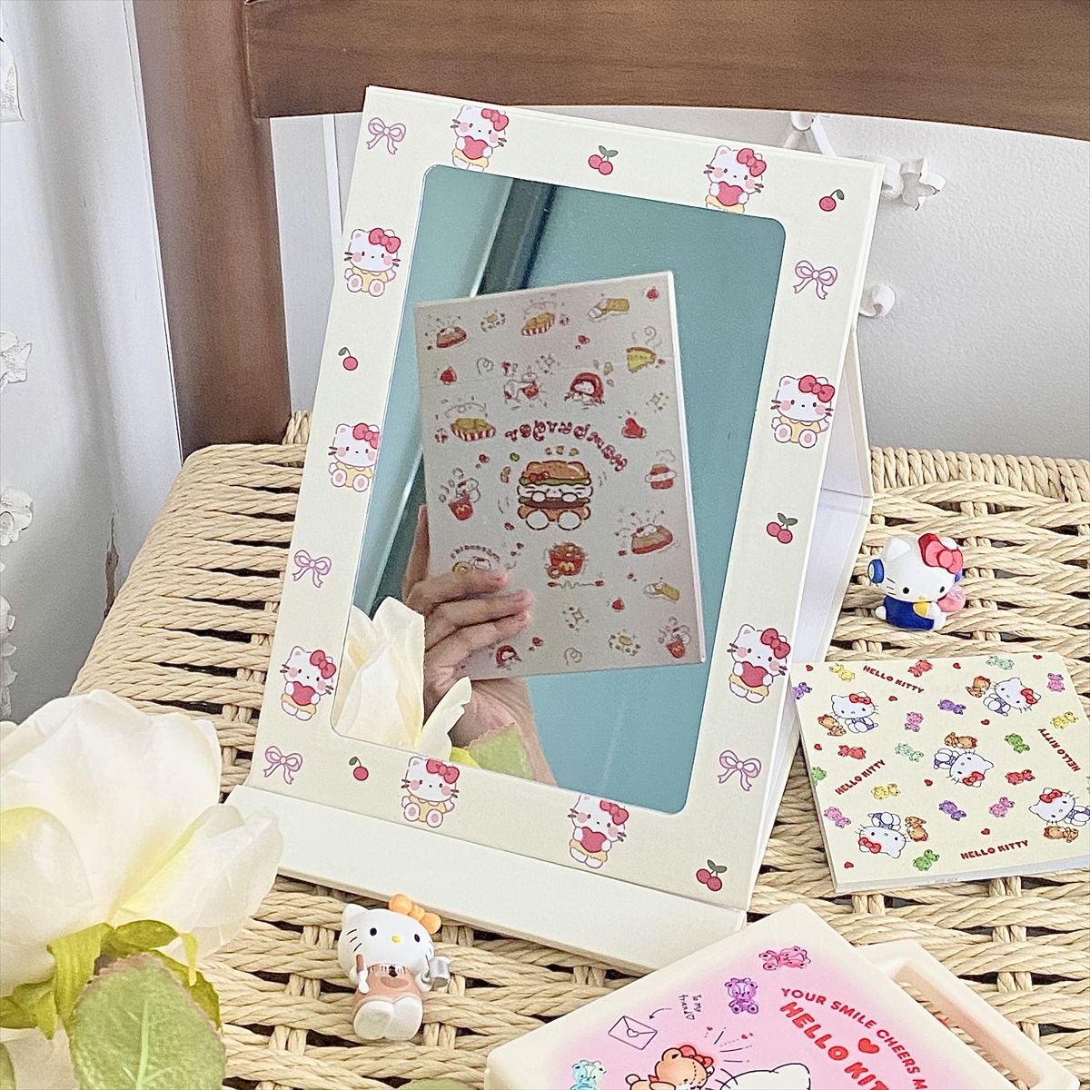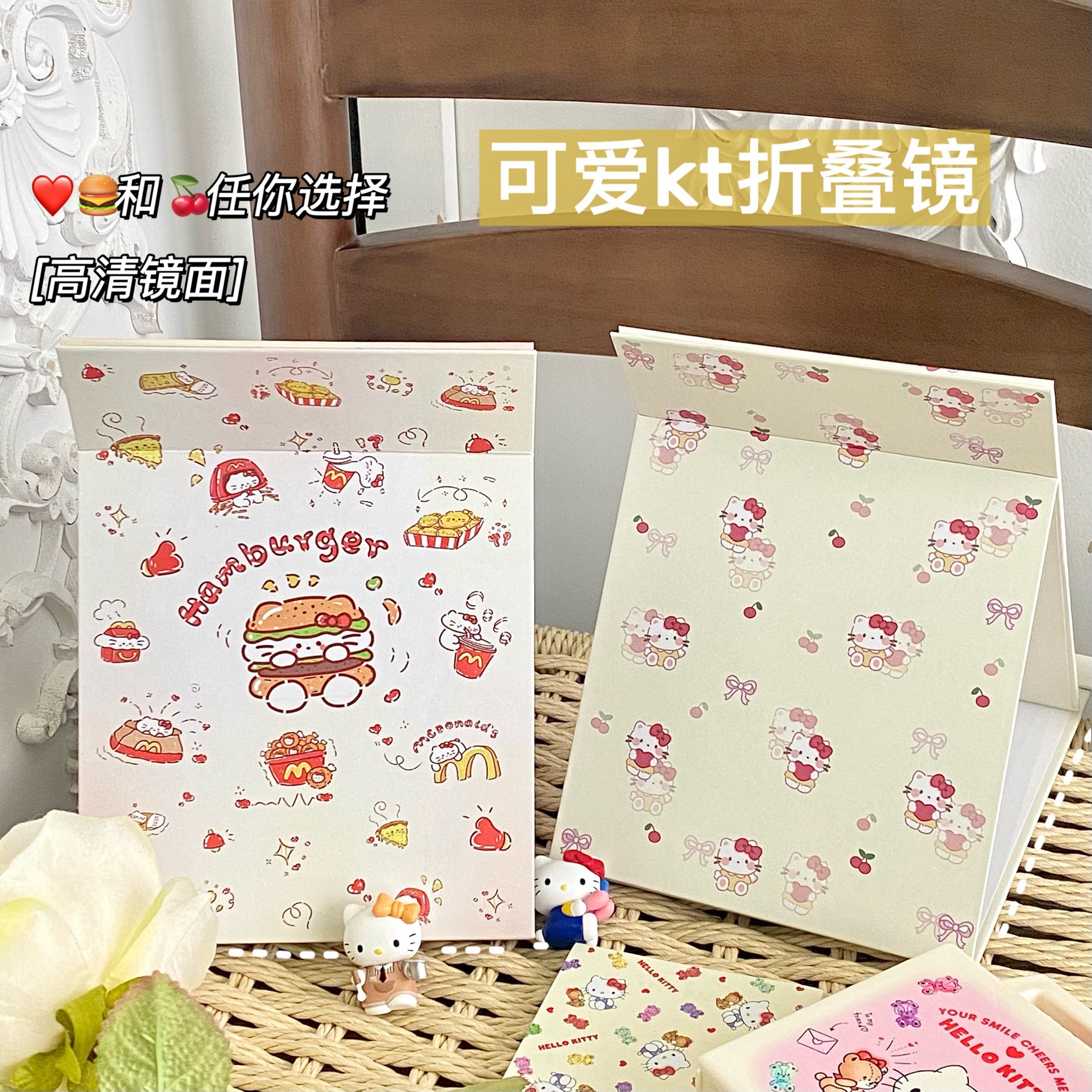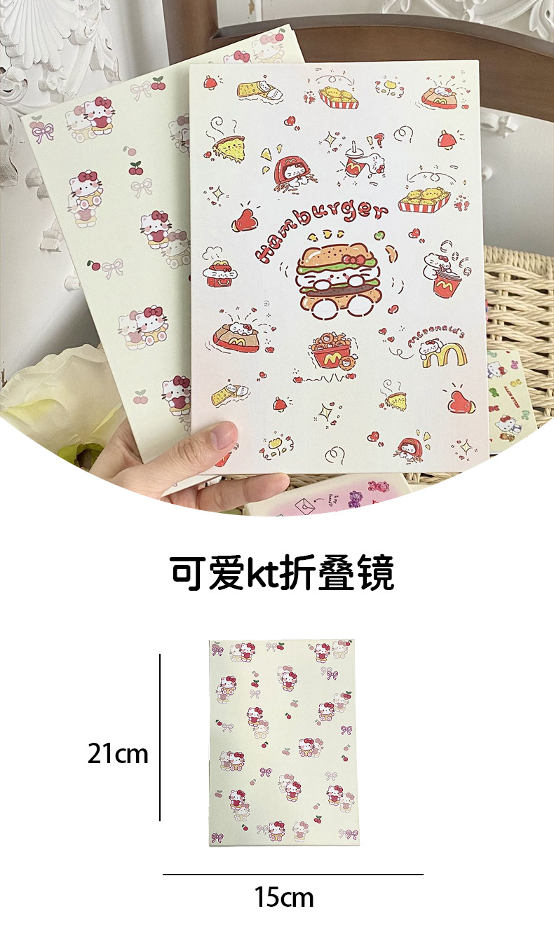 한국식 귀여운 햄버거 체리 새끼 고양이 접이식 거울 거울 대형 휴대용 기숙사 조리대 드레싱 테이블 거울 스탠드 거울