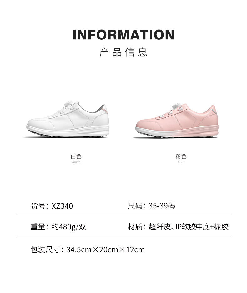 | 颜 色 | 白色,粉色 | 材 质 | 超纤+IP软胶中底+橡胶 | |