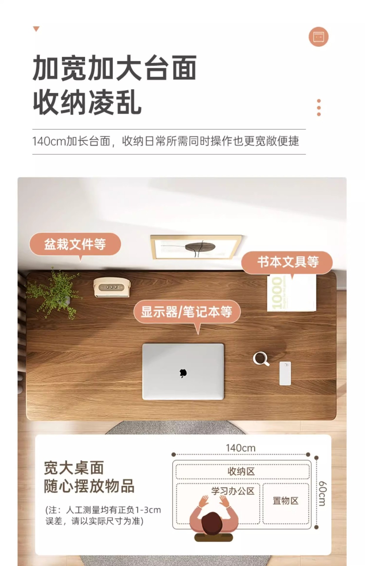 [단일 테이블] 위안 예 오크 컬러 140*55*75cm