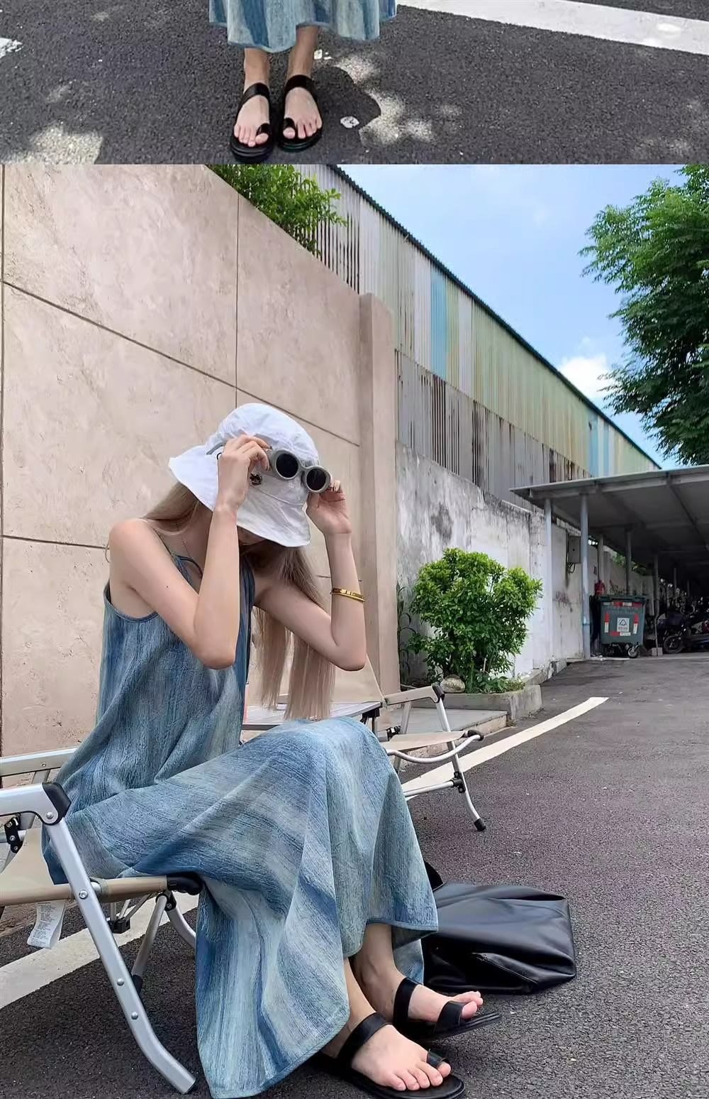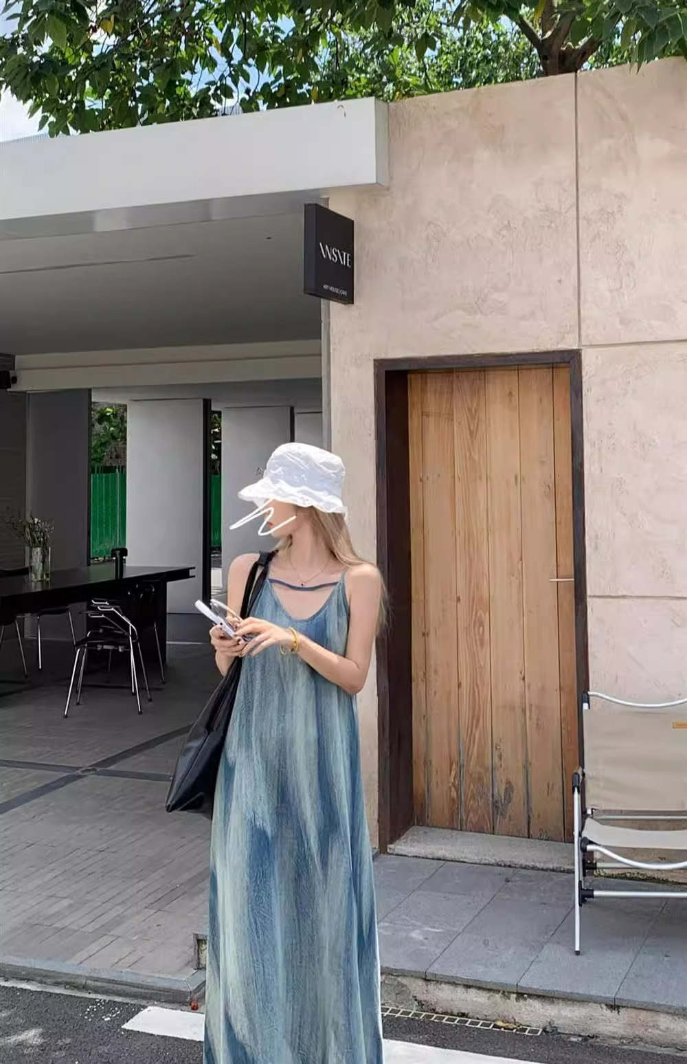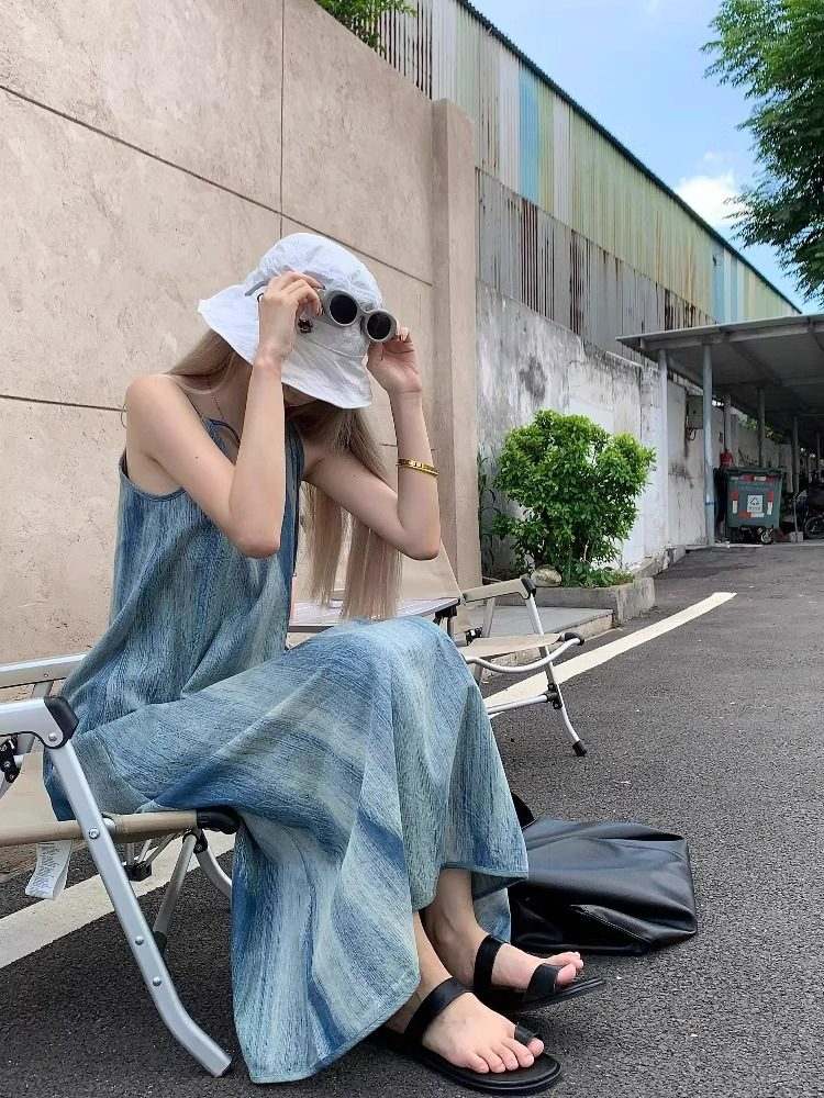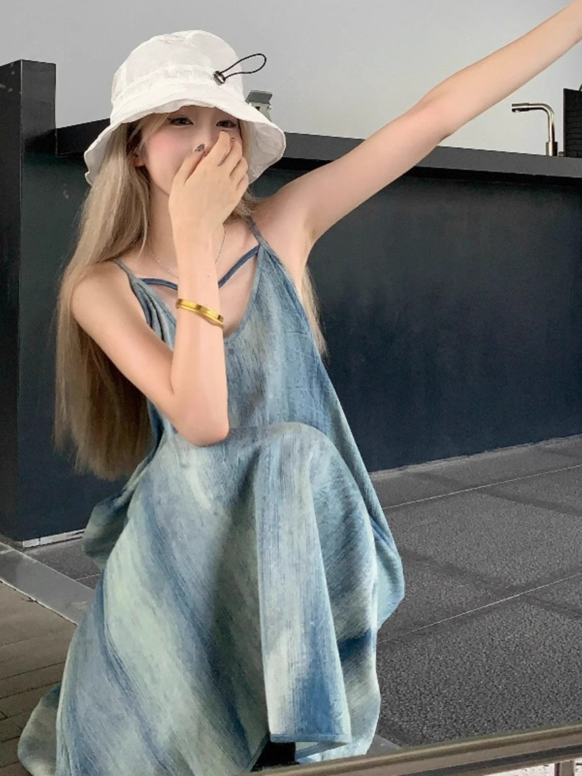 2026 프렌치 타이다이 슬립 드레스 여성 여름 루즈하고 여유로운 스타일 싼야 해변 휴가 비치 미디 드레스
