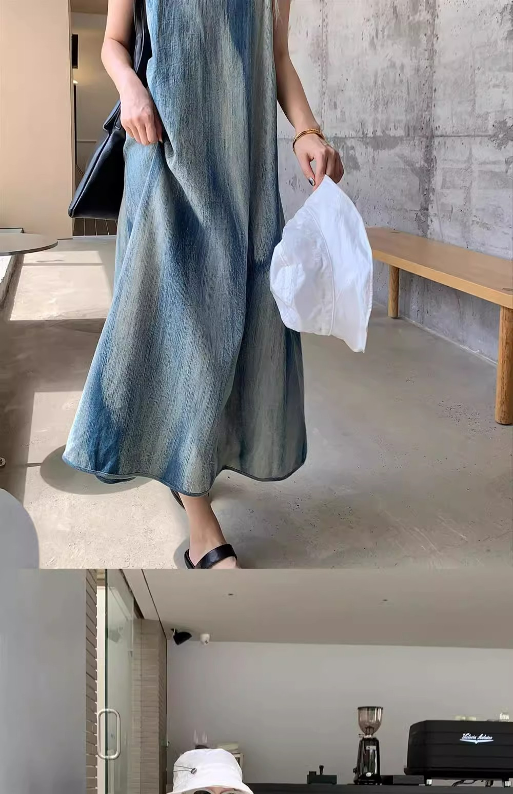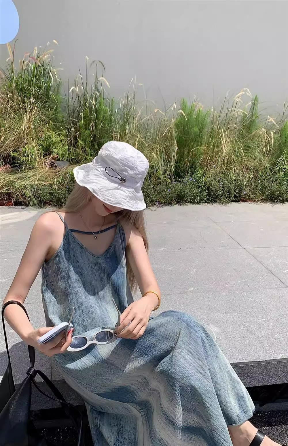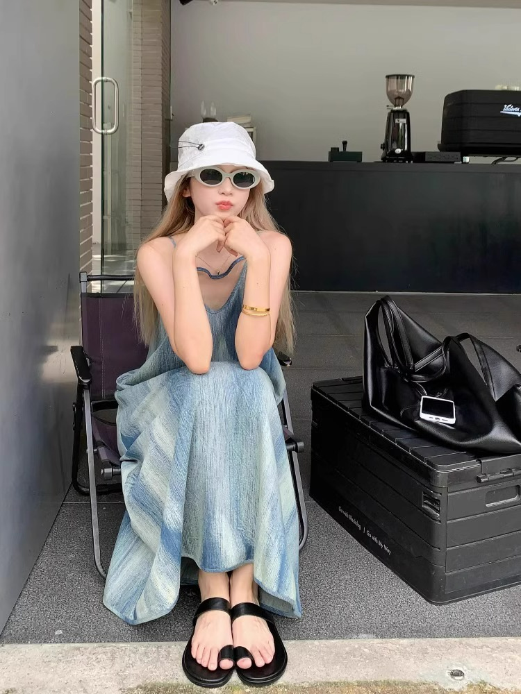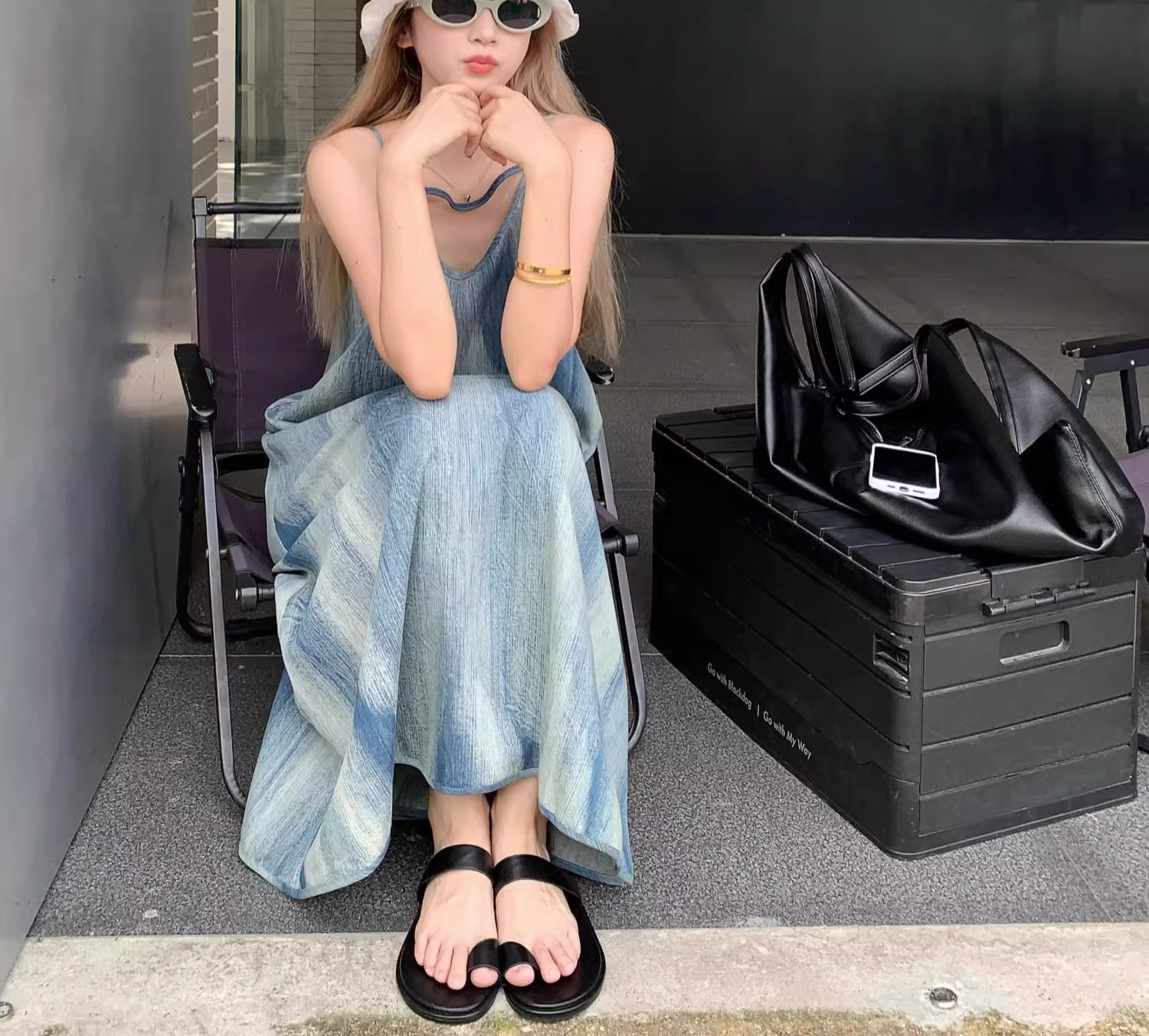 2026 프렌치 타이다이 슬립 드레스 여성 여름 루즈하고 여유로운 스타일 싼야 해변 휴가 비치 미디 드레스