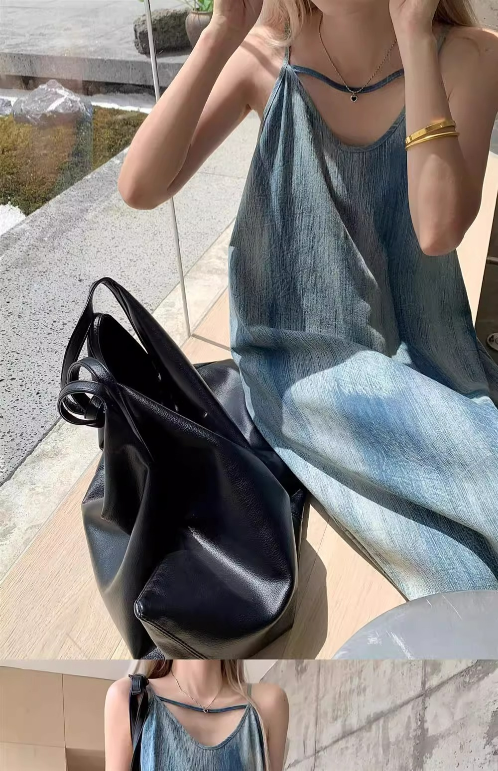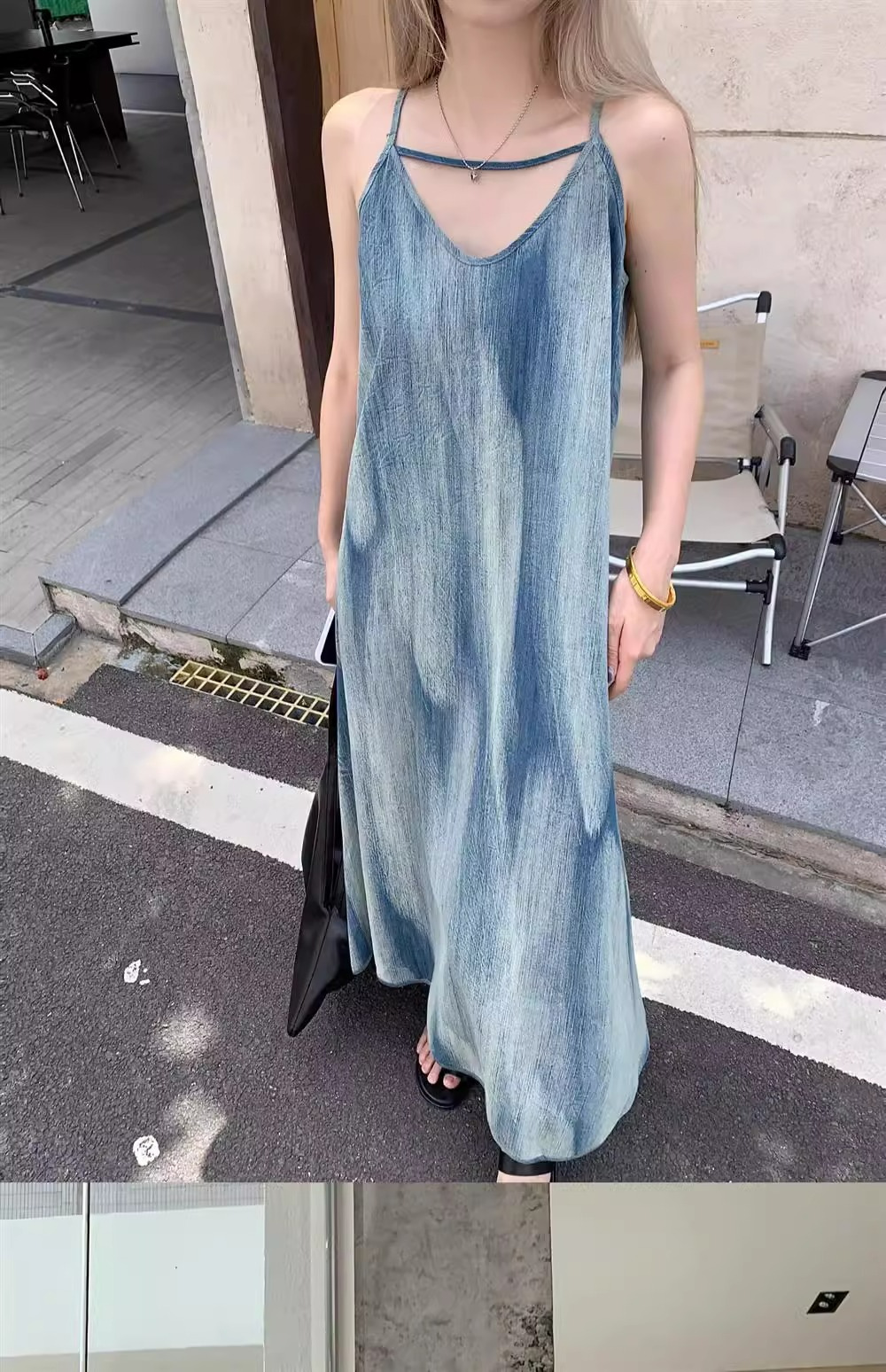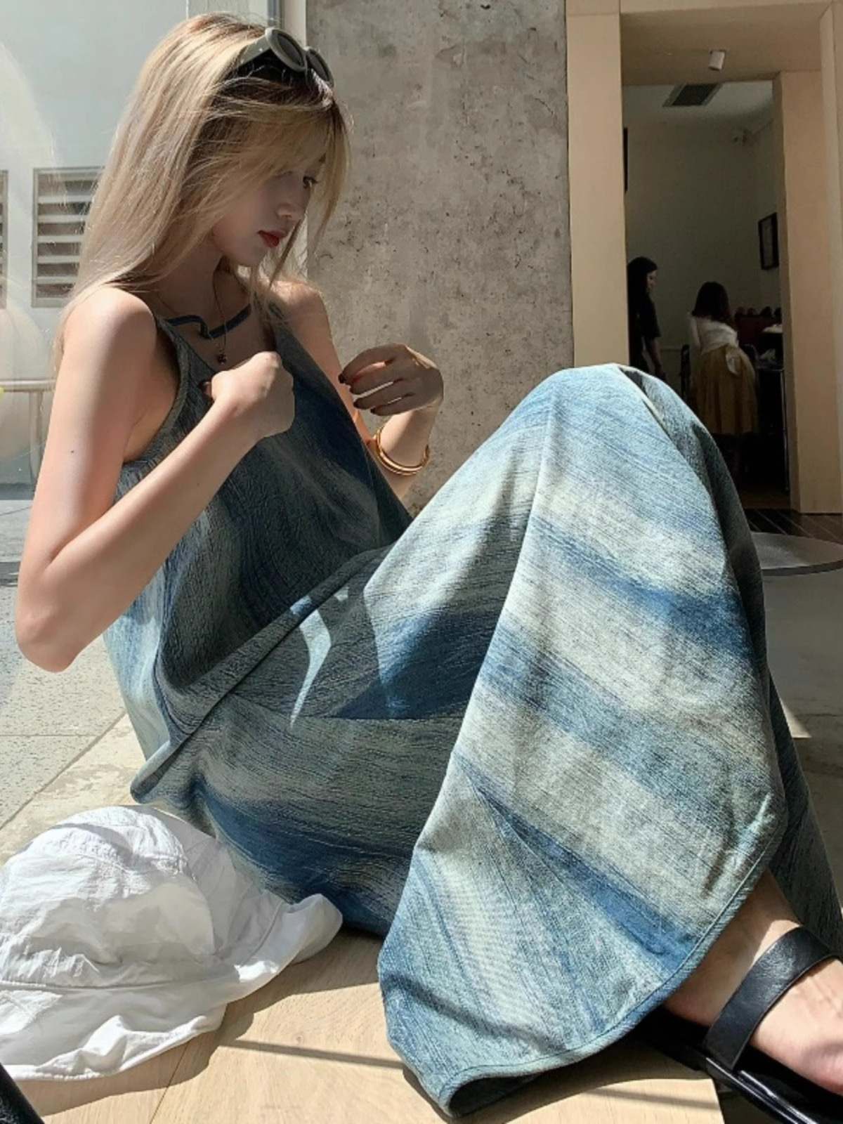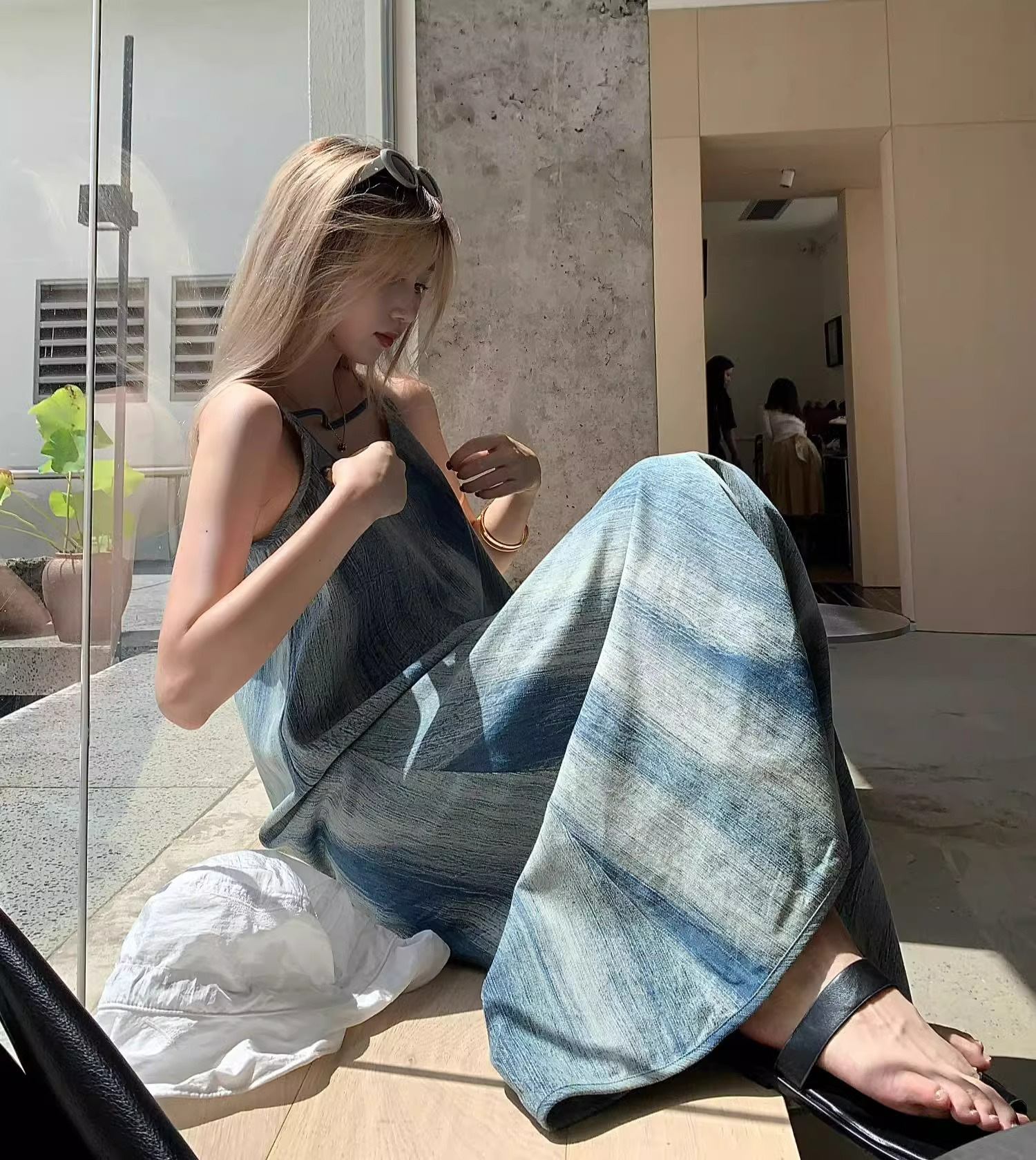 2026 프렌치 타이다이 슬립 드레스 여성 여름 루즈하고 여유로운 스타일 싼야 해변 휴가 비치 미디 드레스