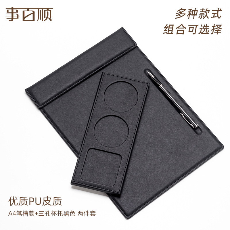 A4 회의 클립 가로 버전 펜 슬롯 + 3홀 컵 홀더 블랙