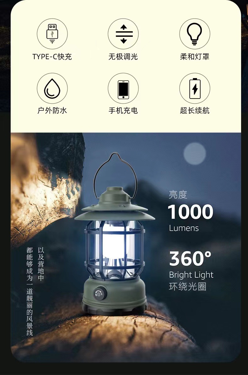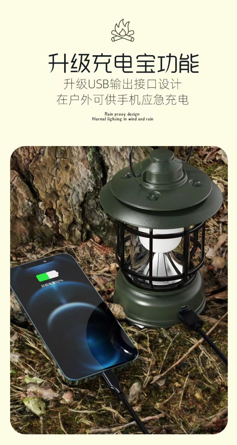 포레스트 비 야외 캠핑 조명 레트로 캠핑 조명 말 조명 충전 휴대용 텐트 조명 캠프 조명 조명 교수형 조명