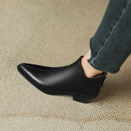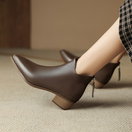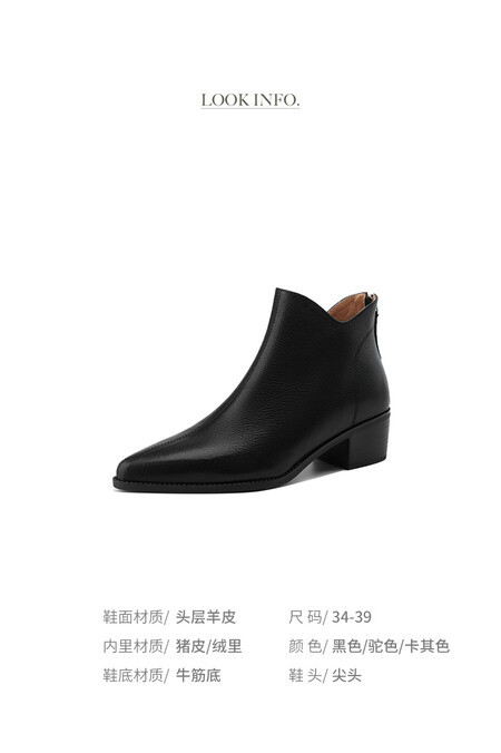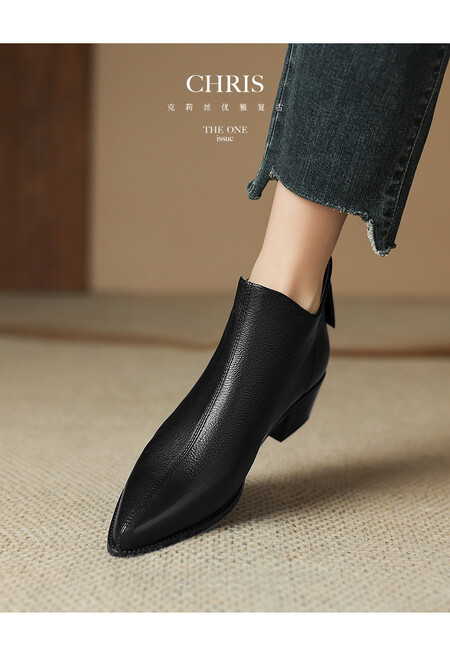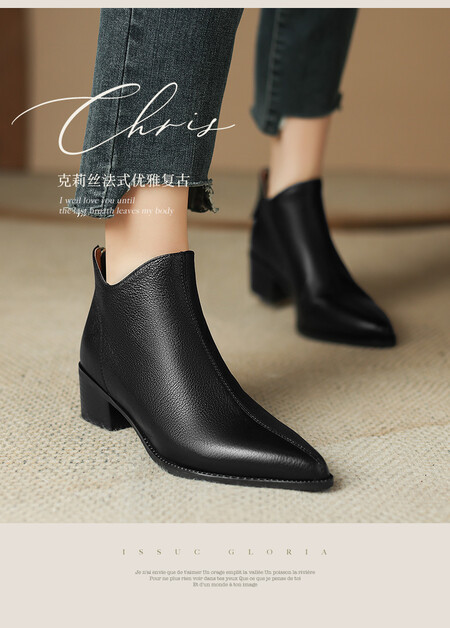 프렌치 영국 스타일 뾰족코 숏부츠 여성용 V자형 굽 두꺼운 굽 양가죽 마틴부츠 레트로 첼시부츠 앵클부츠