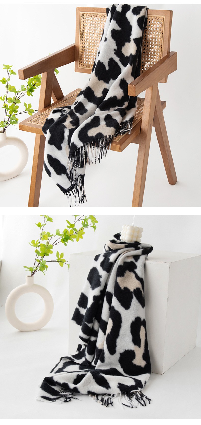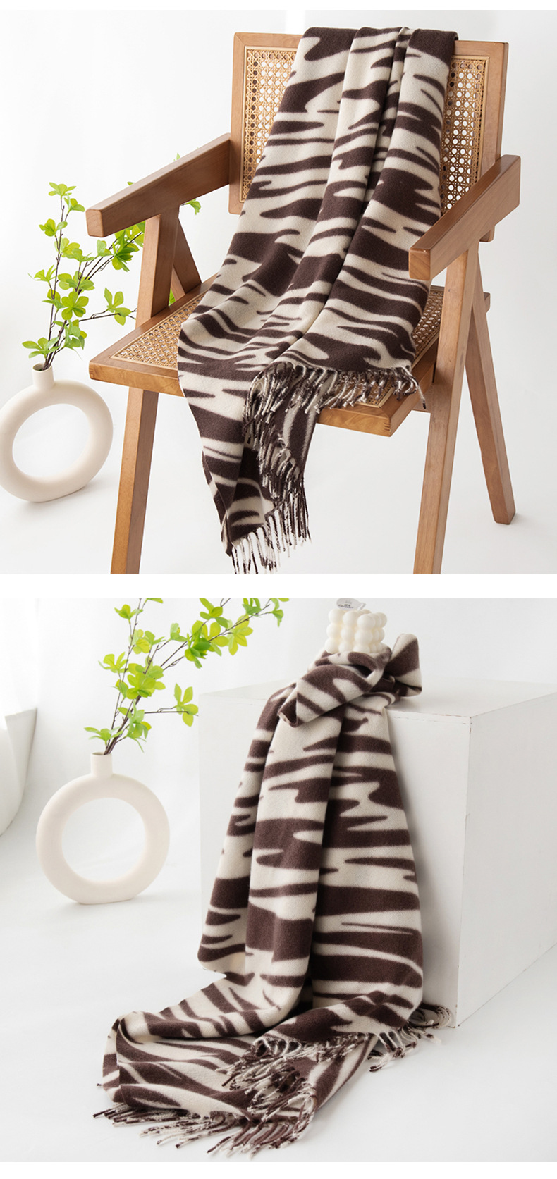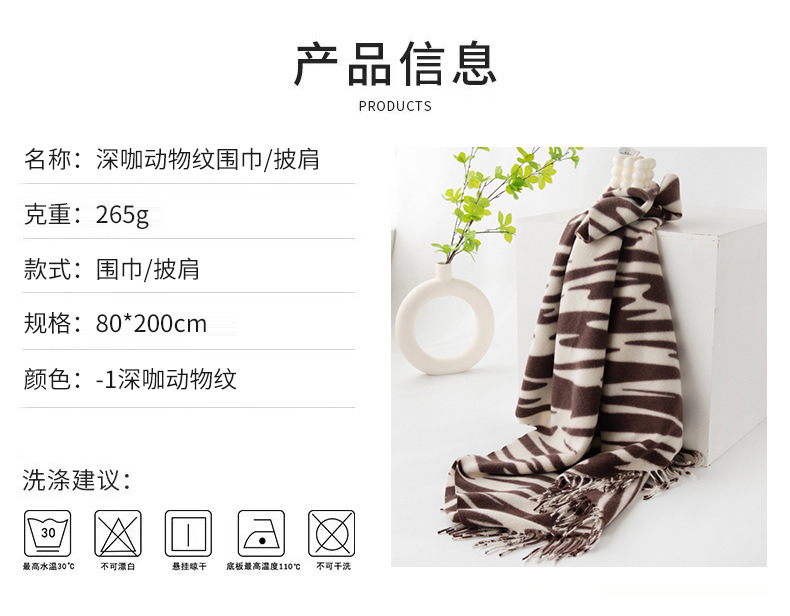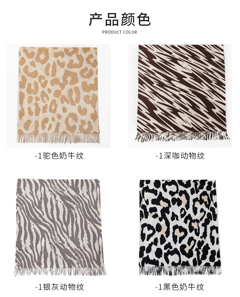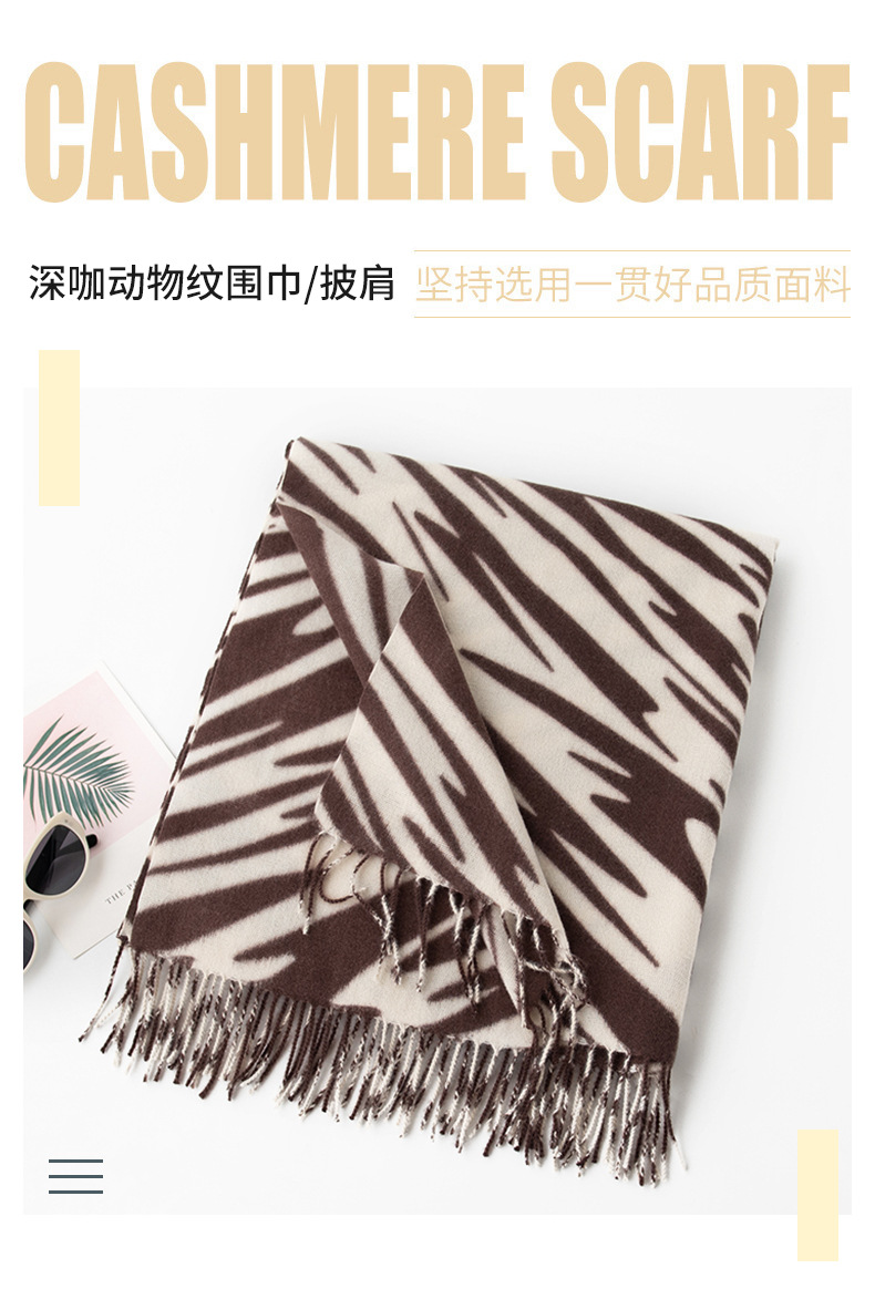 새로운 크로스보더 인조 캐시미어 스카프, 패셔너블한 다크 커피색 동물 무늬, 유럽 및 미국 스타일의 두꺼운 넥워머, 커플용 따뜻한 숄