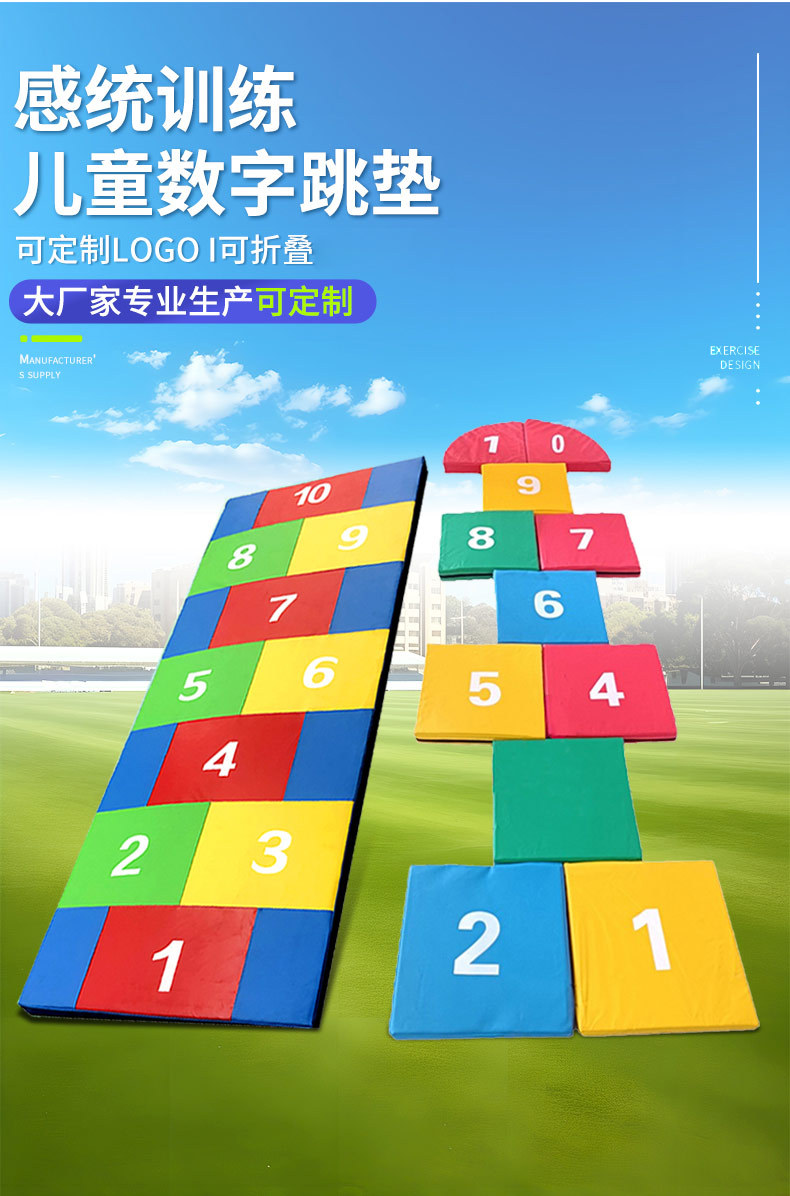 도매 디지털 점프 매트 유아 교육 감각 훈련 장비 소프트웨어 안전 점프 매트 점프 격자 무늬 디지털 매트