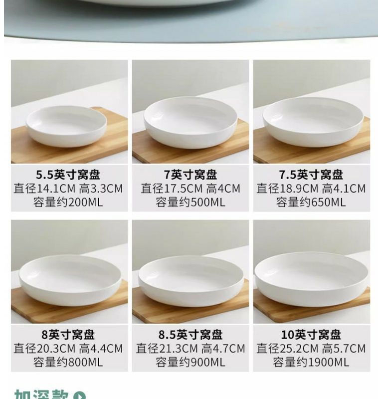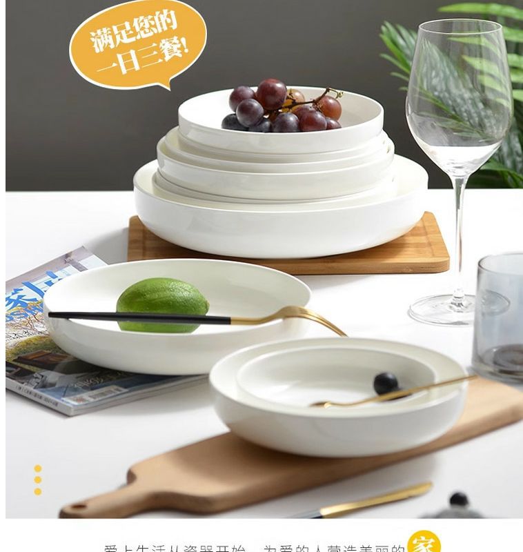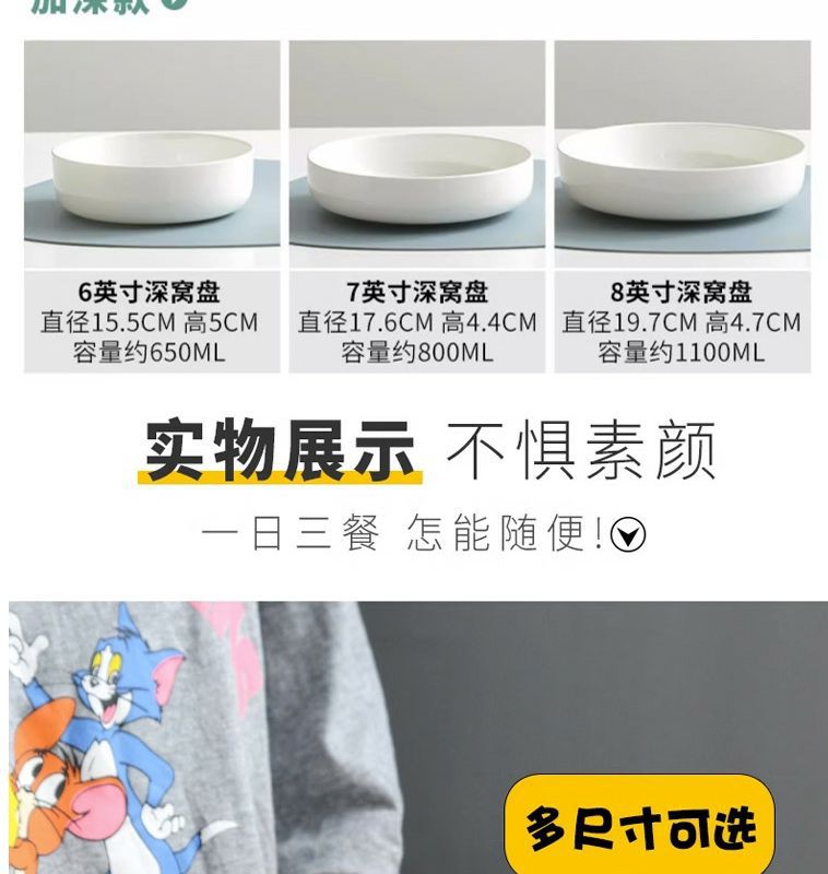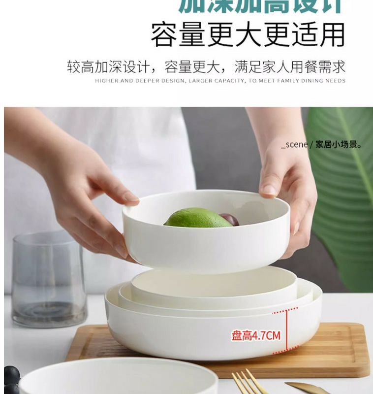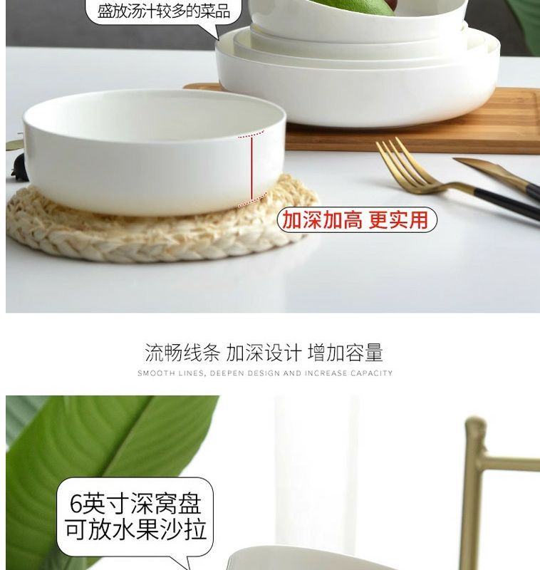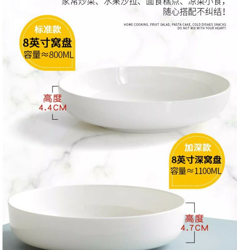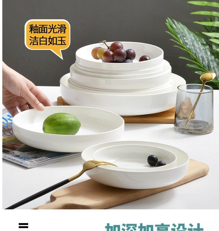 순수한 흰색 세라믹 둥지 판 깊은 입 접시 가정용 뼈 중국 식기 접시 찐 계란 수프 흰색 깊은 접시