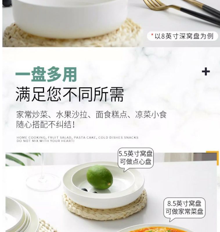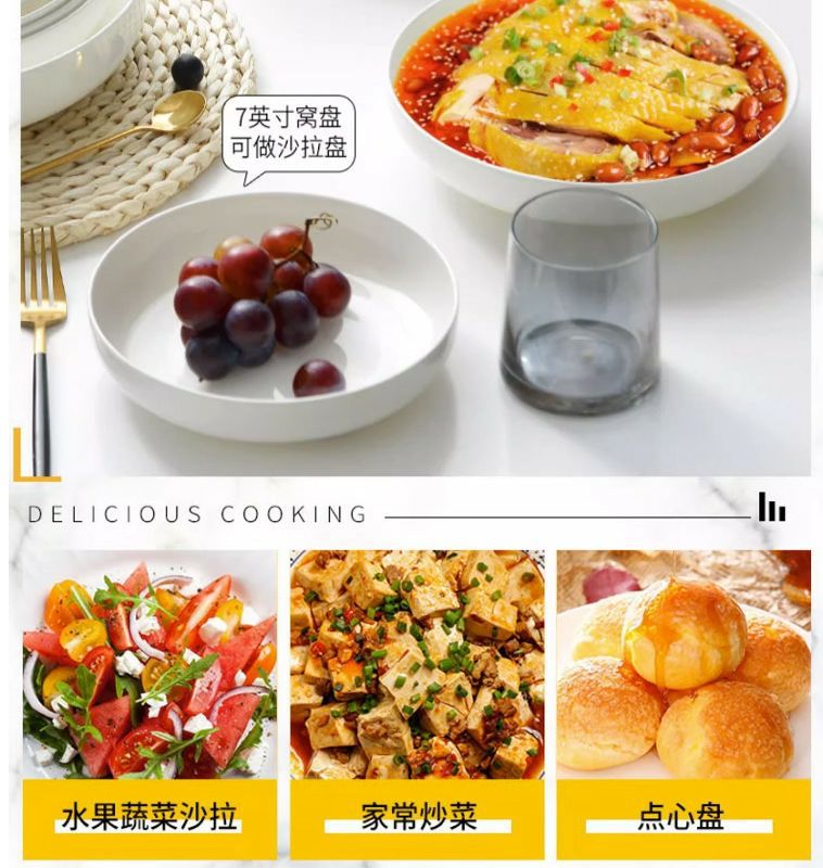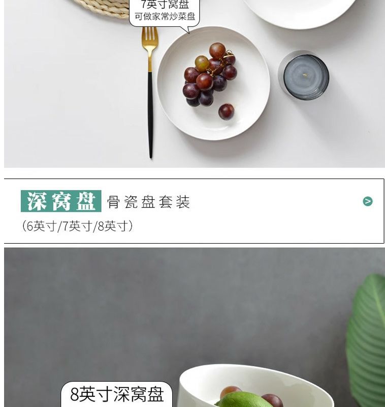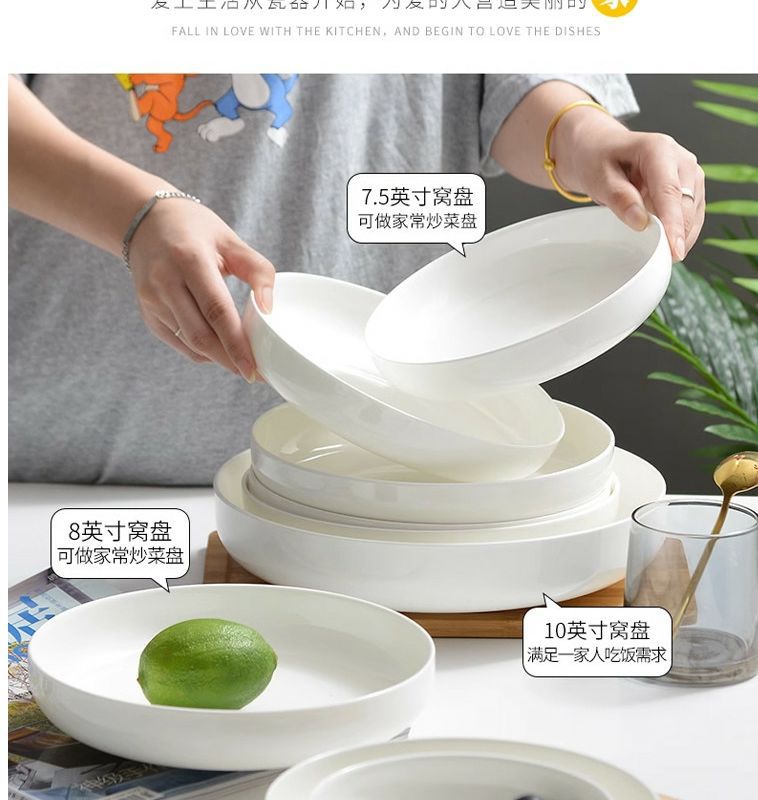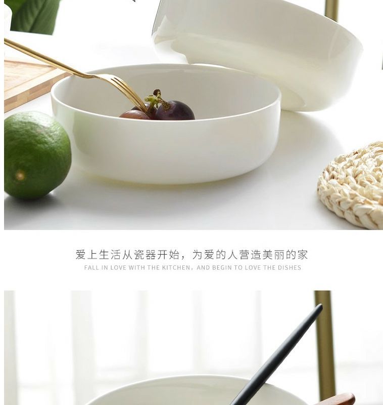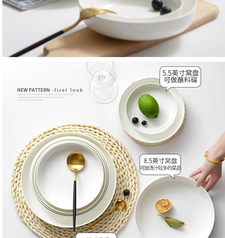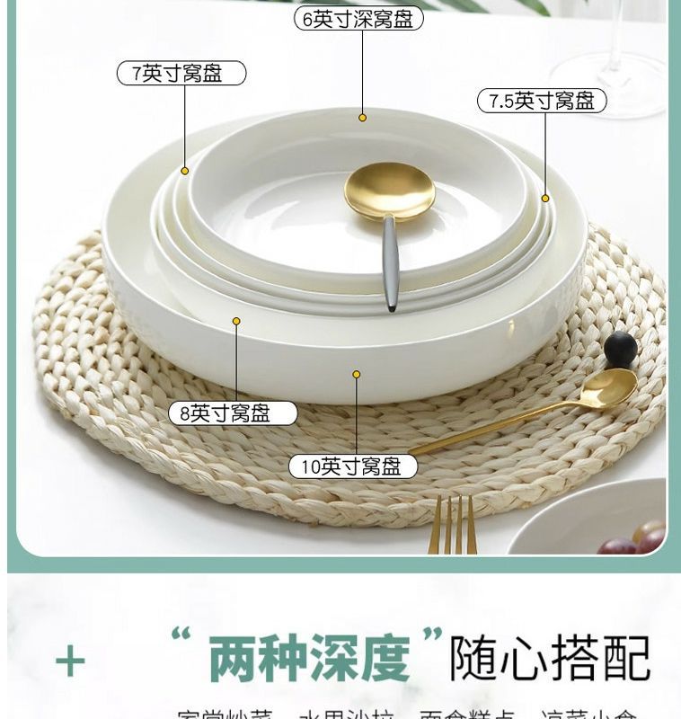 순수한 흰색 세라믹 둥지 판 깊은 입 접시 가정용 뼈 중국 식기 접시 찐 계란 수프 흰색 깊은 접시