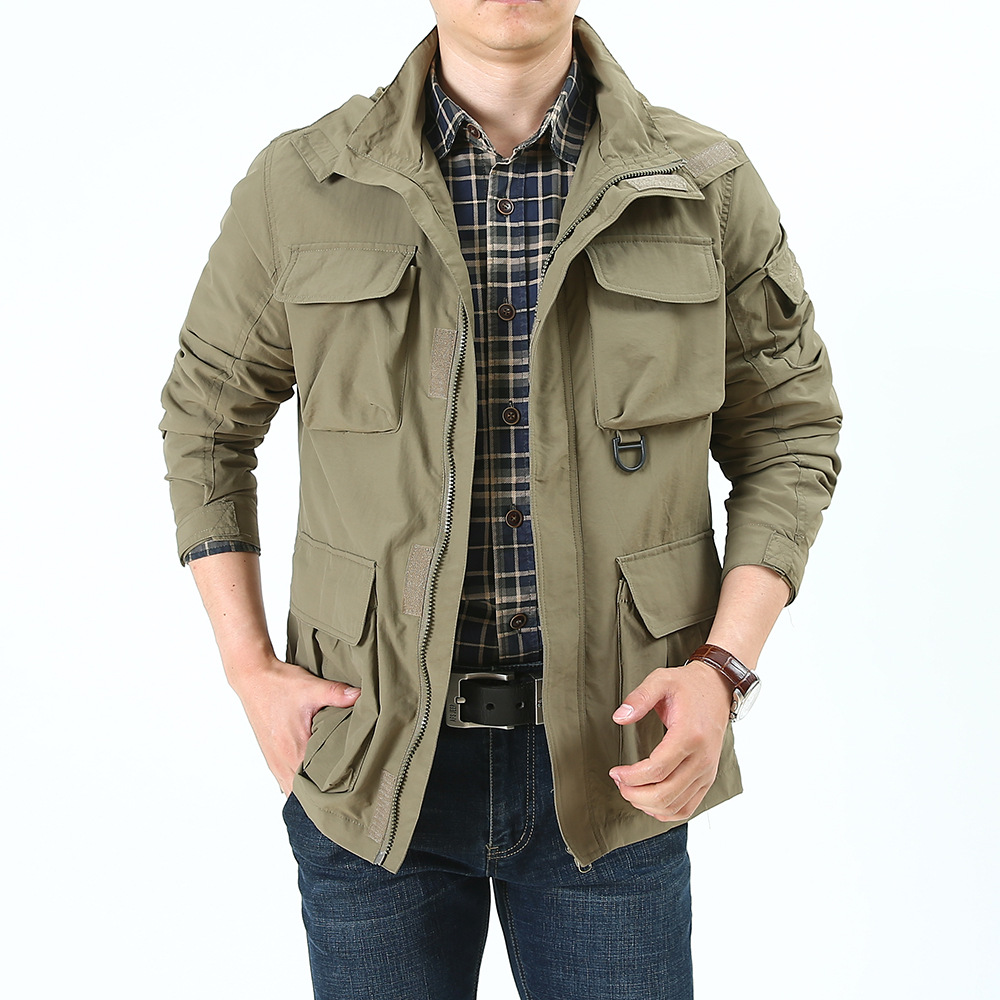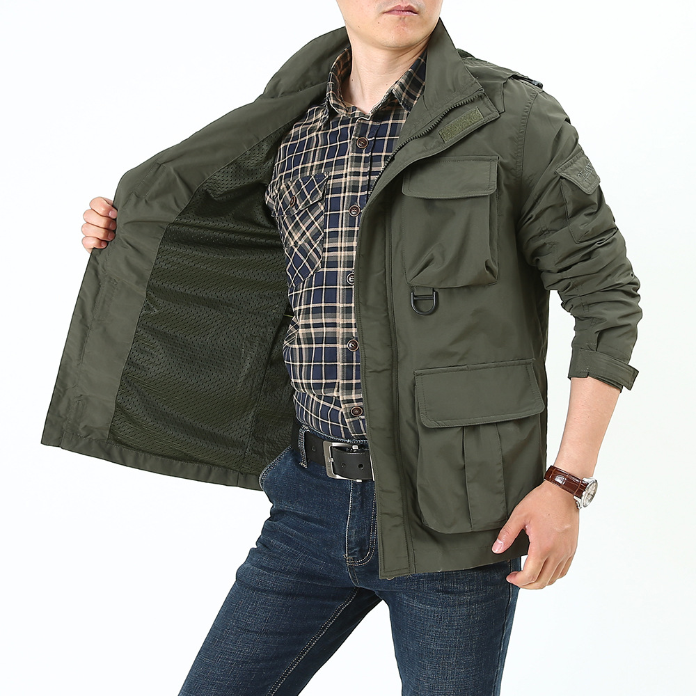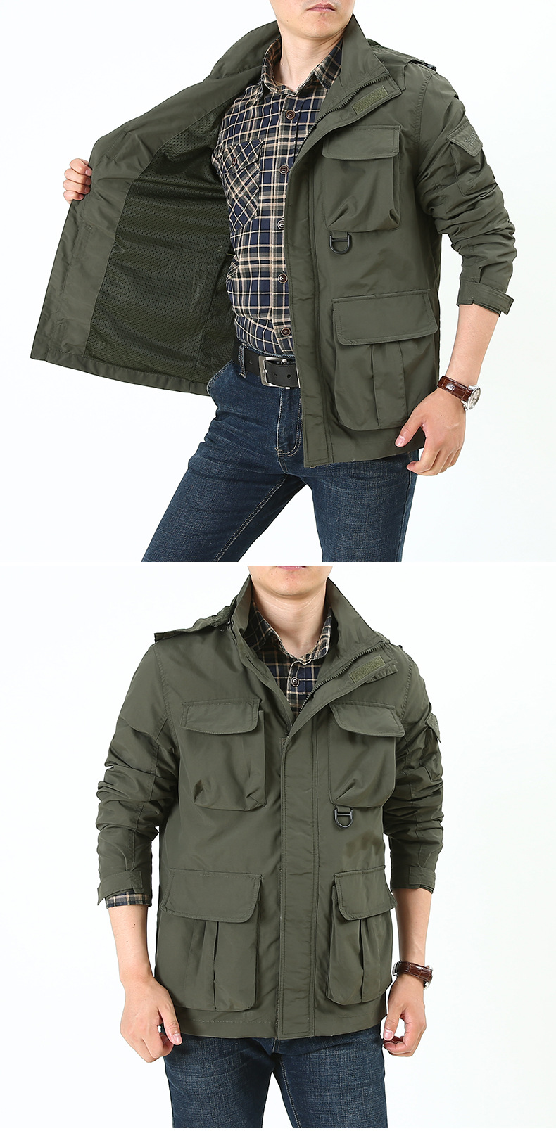 과학 기술 3 방어! 봄과 가을 야외 재킷 남자의 방풍 방수 멀티 포켓 패션 작업 재킷 트렌디