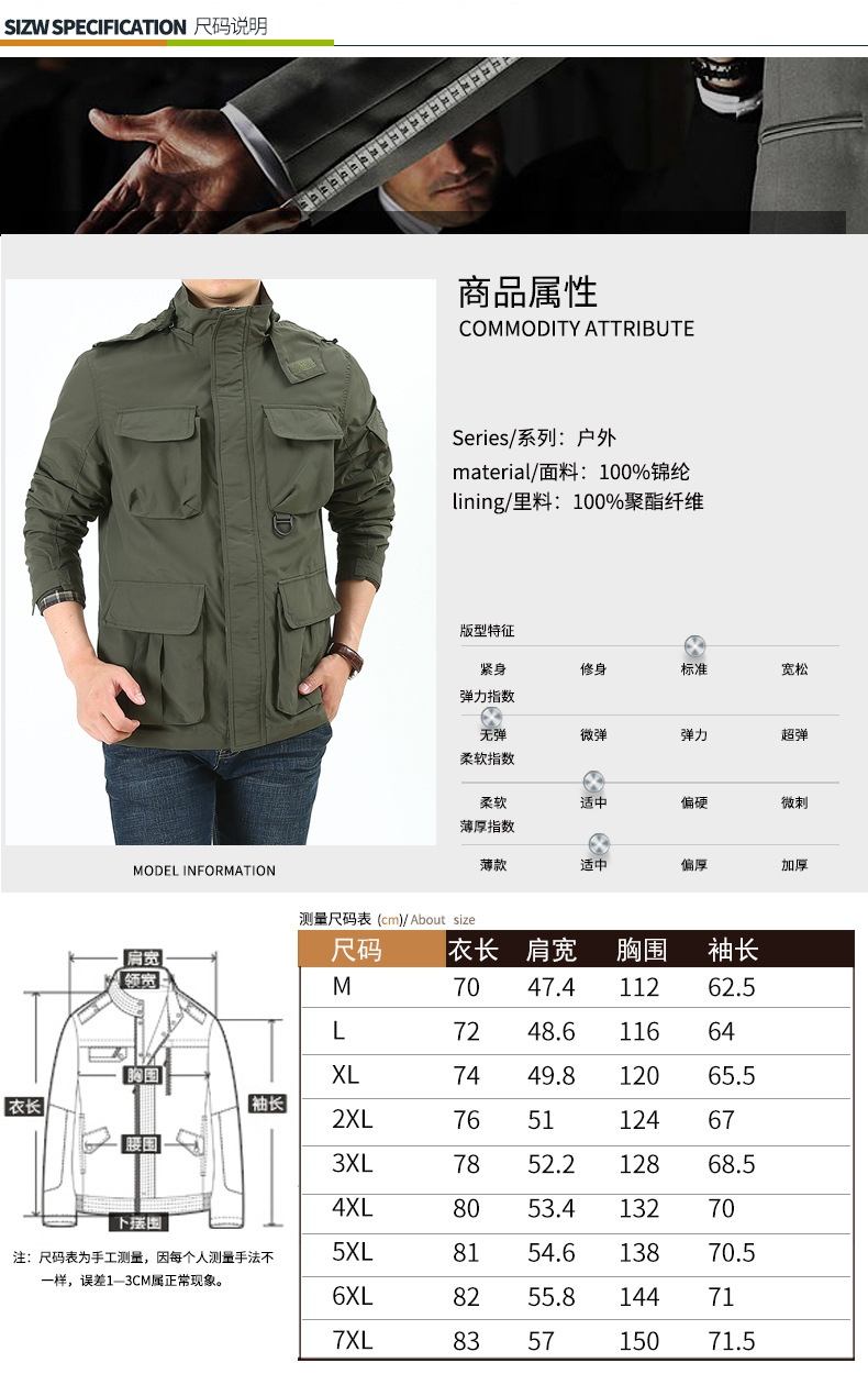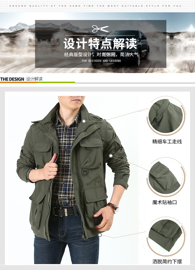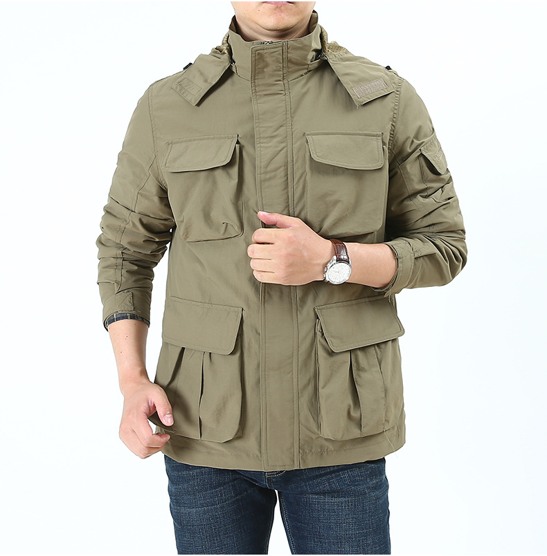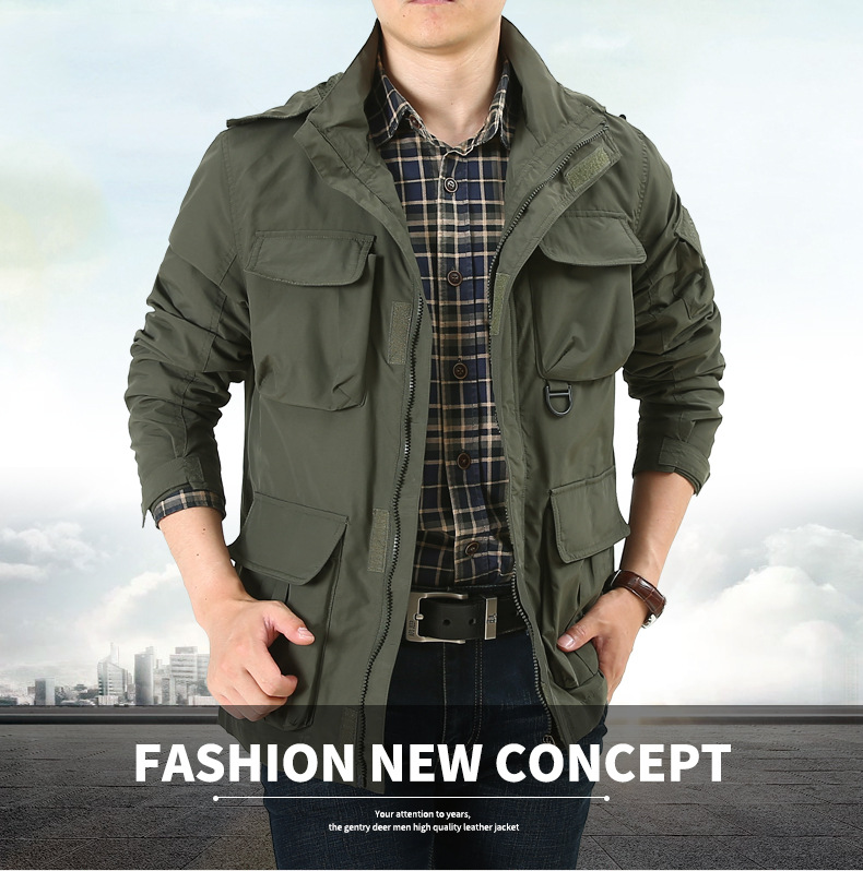 과학 기술 3 방어! 봄과 가을 야외 재킷 남자의 방풍 방수 멀티 포켓 패션 작업 재킷 트렌디