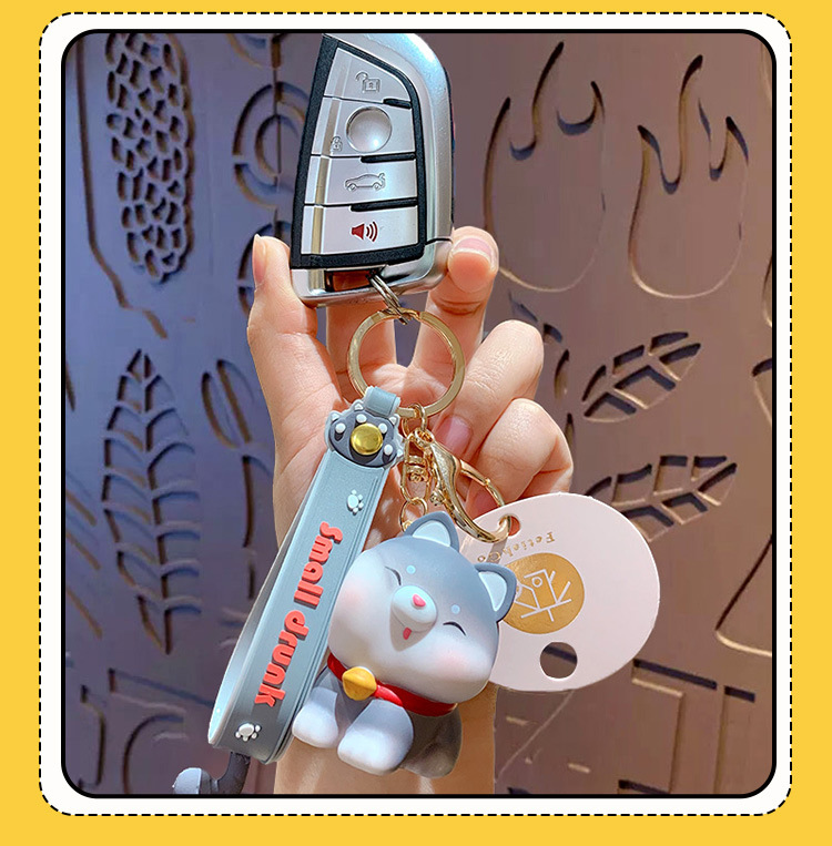 귀여운 개들이 함께 모여 열쇠 고리 애호가 차이 개 인형 책가방 펜던트 자동차 열쇠 고리 작은 선물