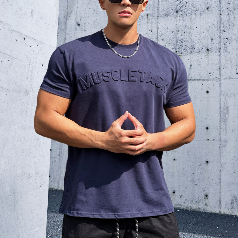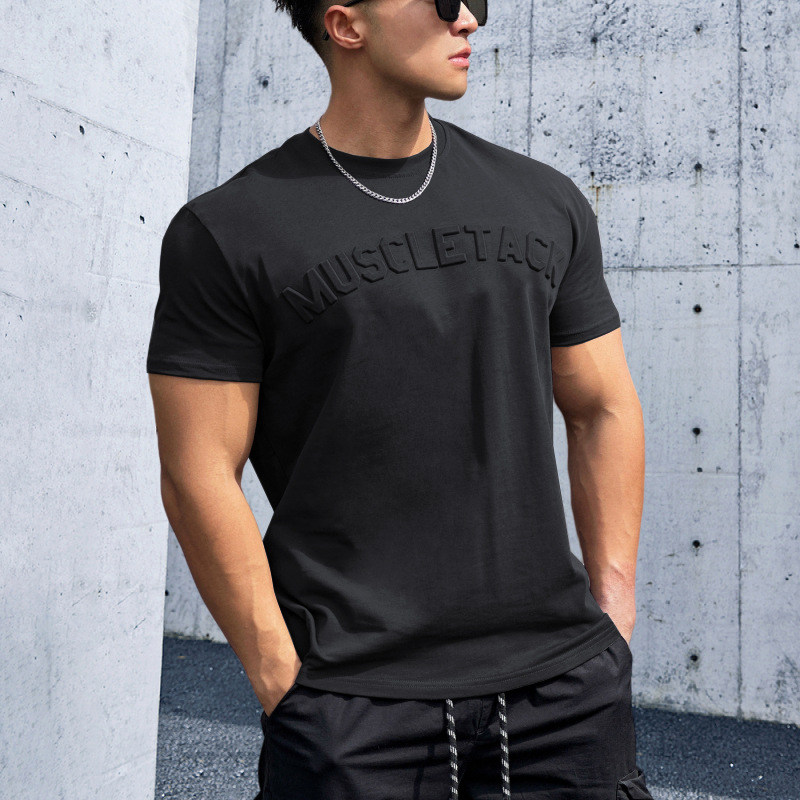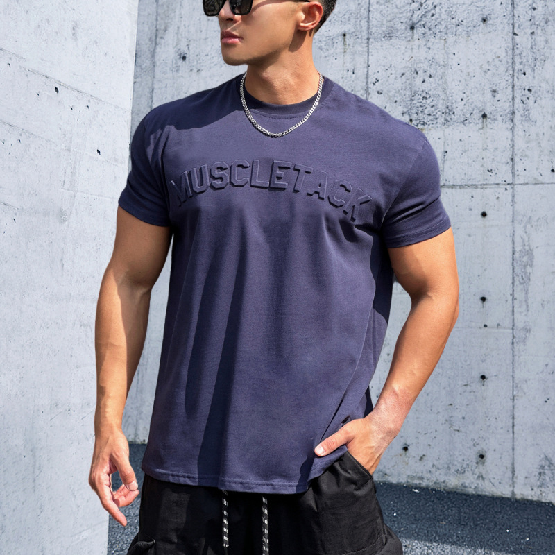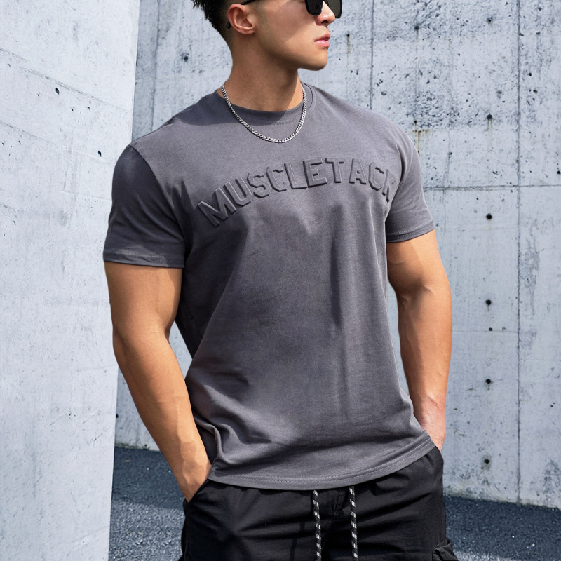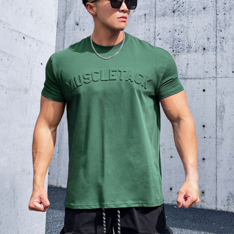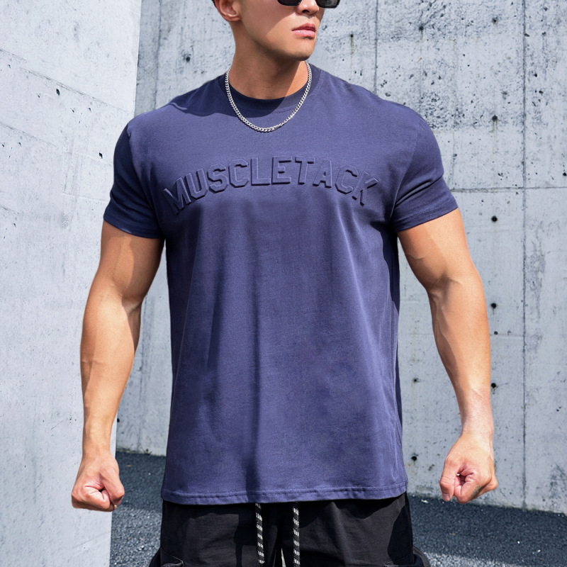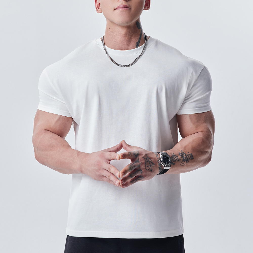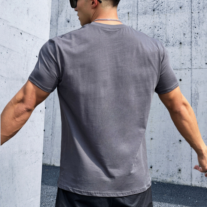 Maiba 스포츠 느슨한 면화 피트니스 반팔 남자 농구 가을 달리기 훈련 TikTok 암호화 전달