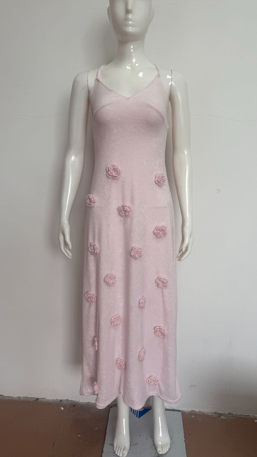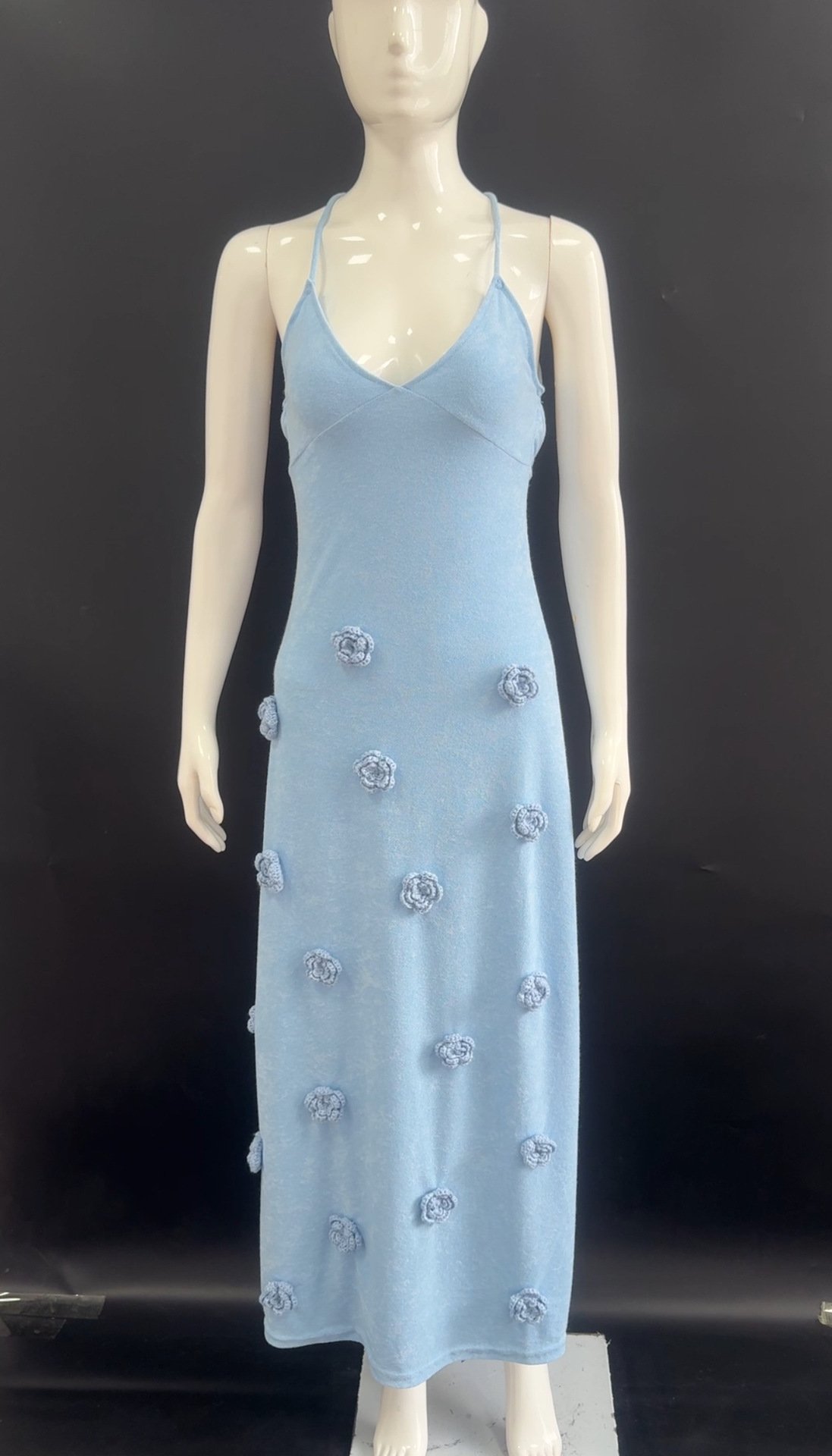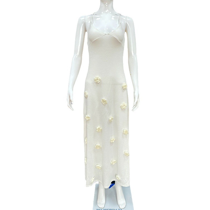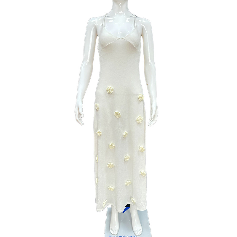 국경 간 유럽과 미국 여성의 새로운 섹시한 원피스 스테레오 플라워 니트 백리스 레이스 업 힙합 원피스