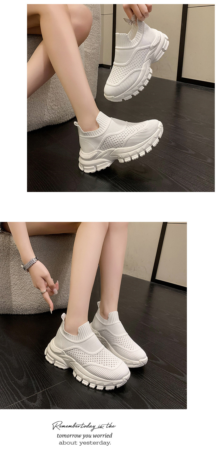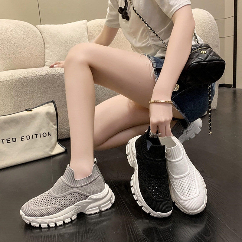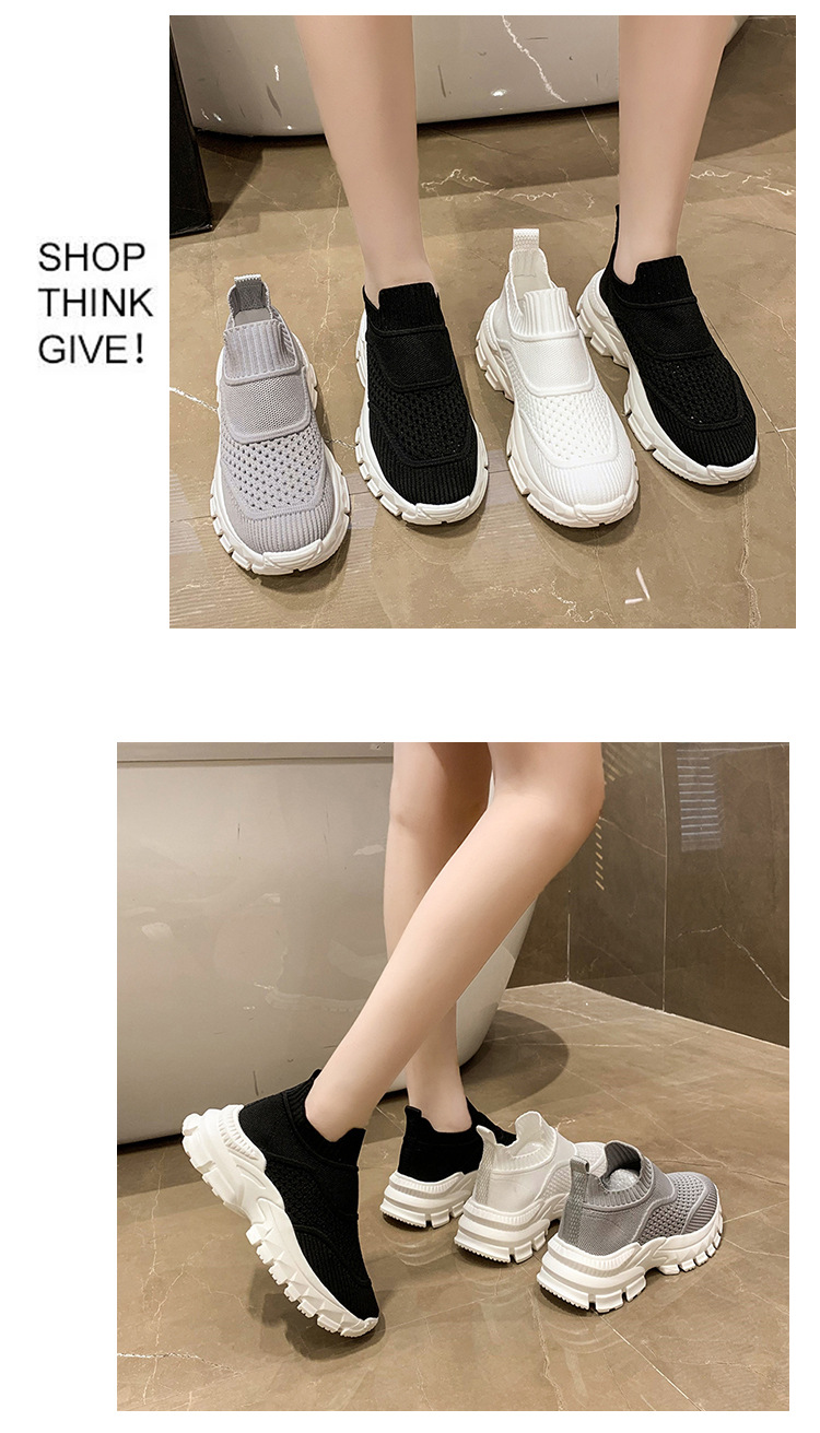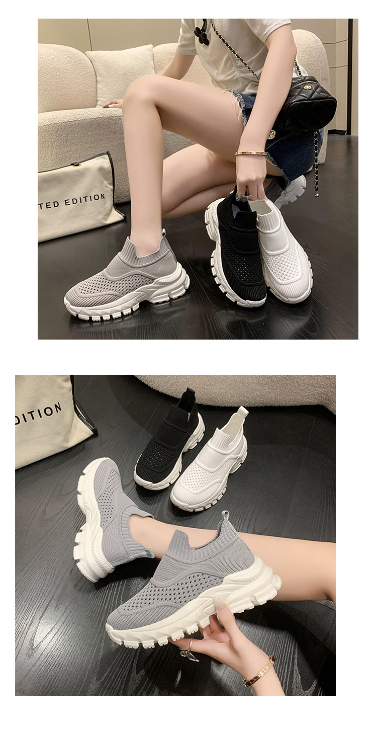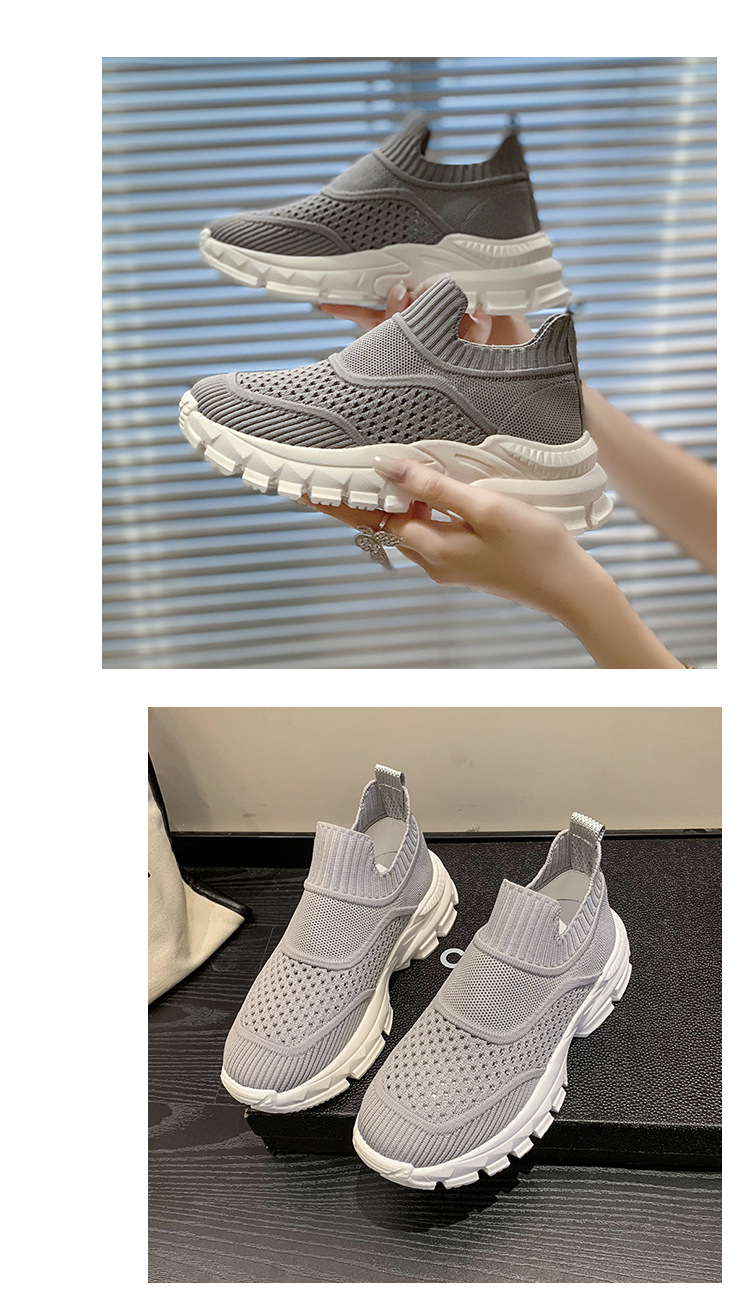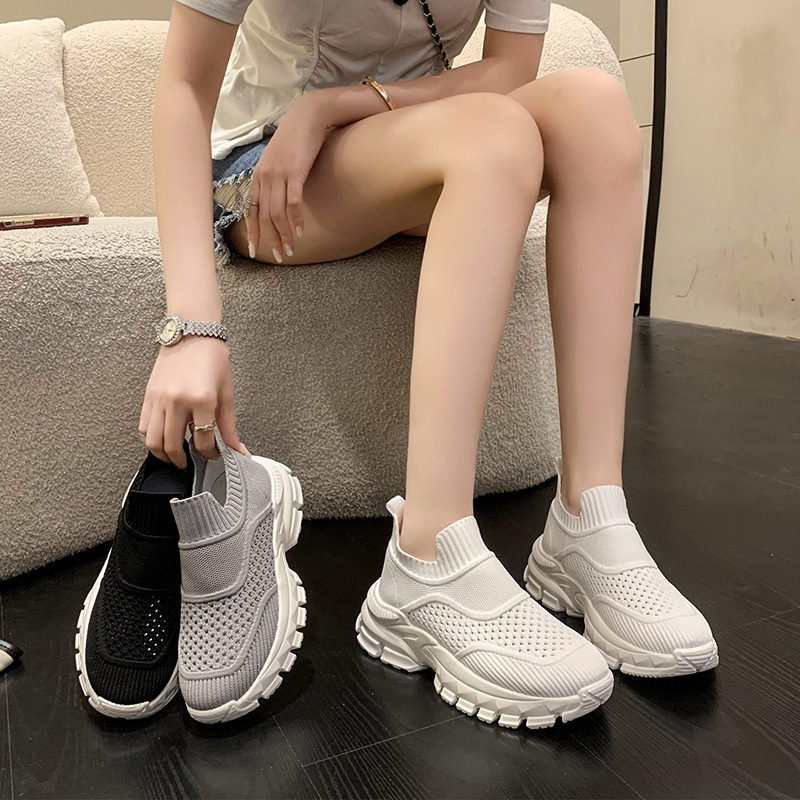 Feiwei 스포츠 신발 여성 여름 새로운 메쉬 통기성 경량 두꺼운 단독 슬립 온 캐주얼 운동화 여성 조수